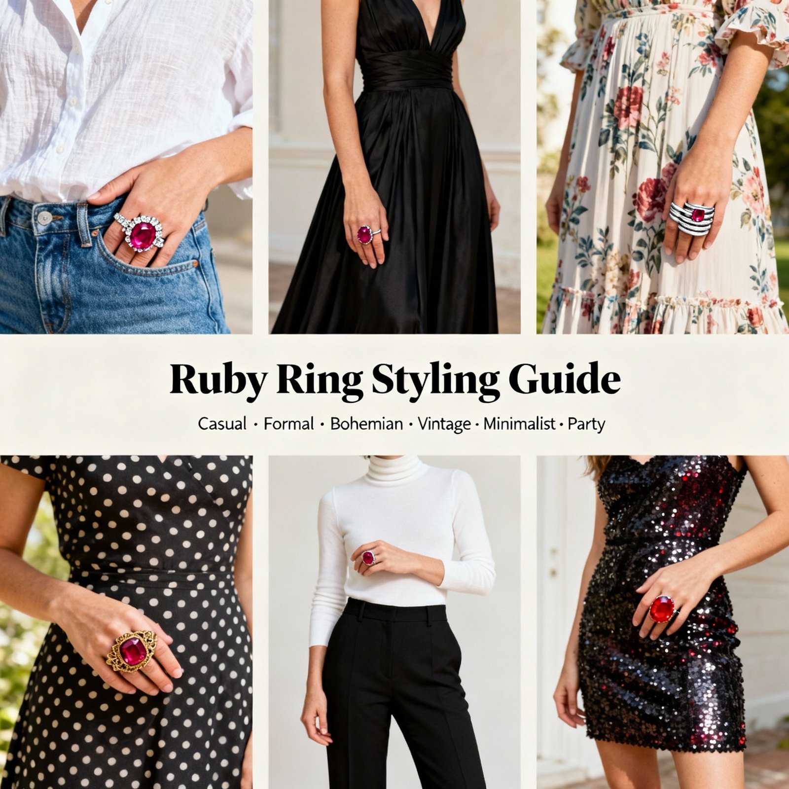 Your ruby ring can transition from casual to elegant with a few smart outfit choices. Here’s how to style it for every event: