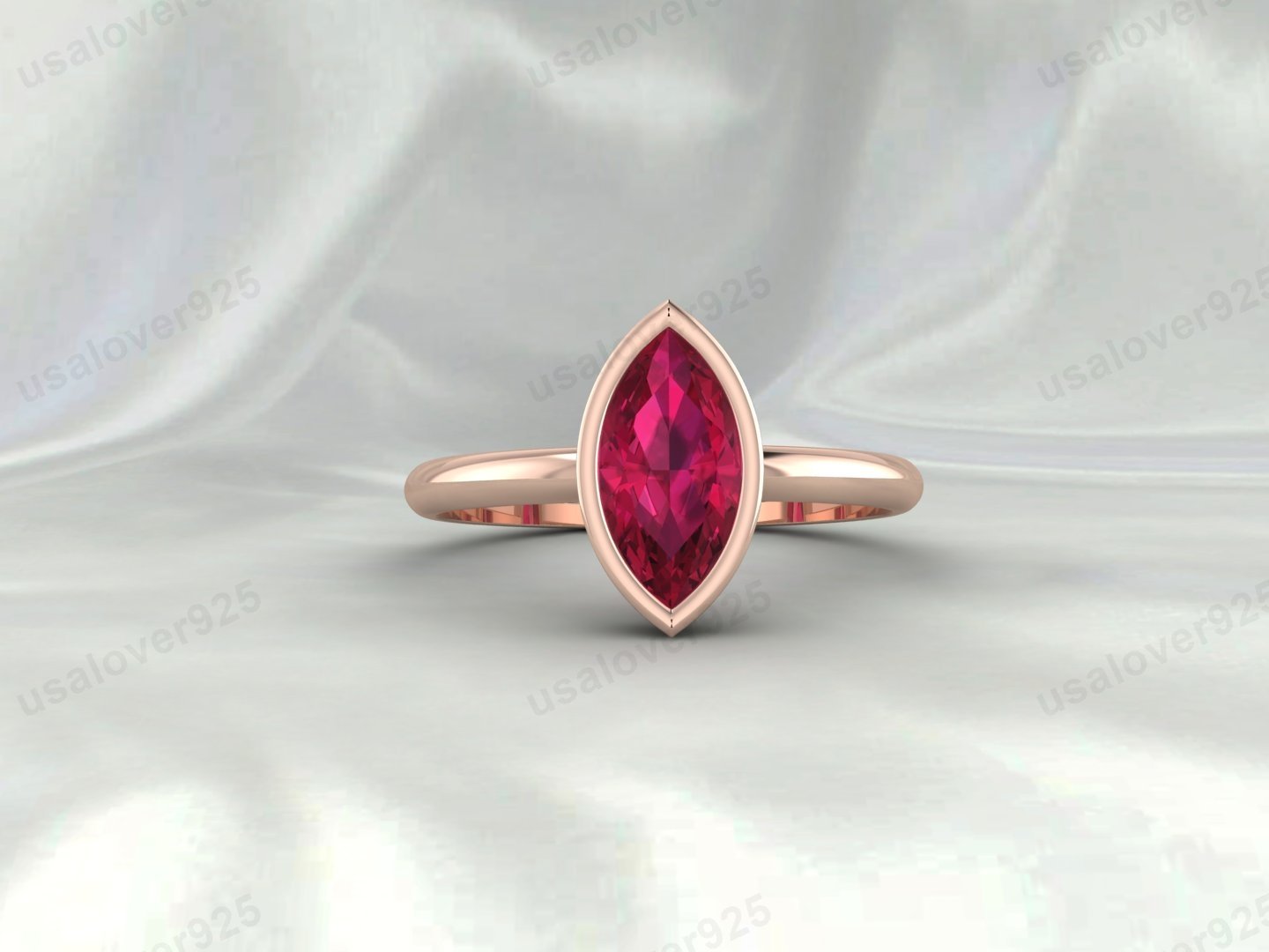 Ruby Marquise Stone Women Ring, 925 Sterling Silver Jewelry