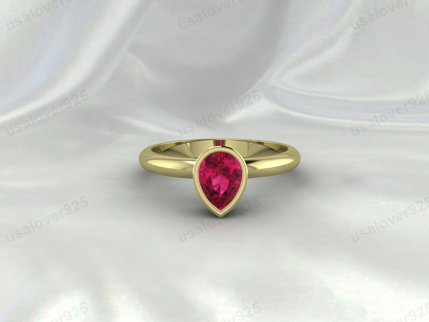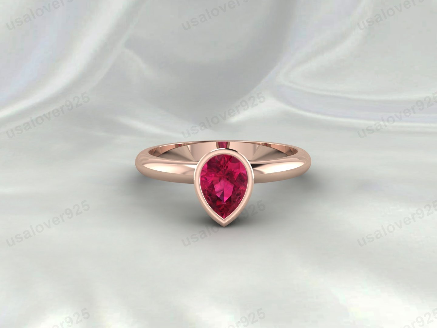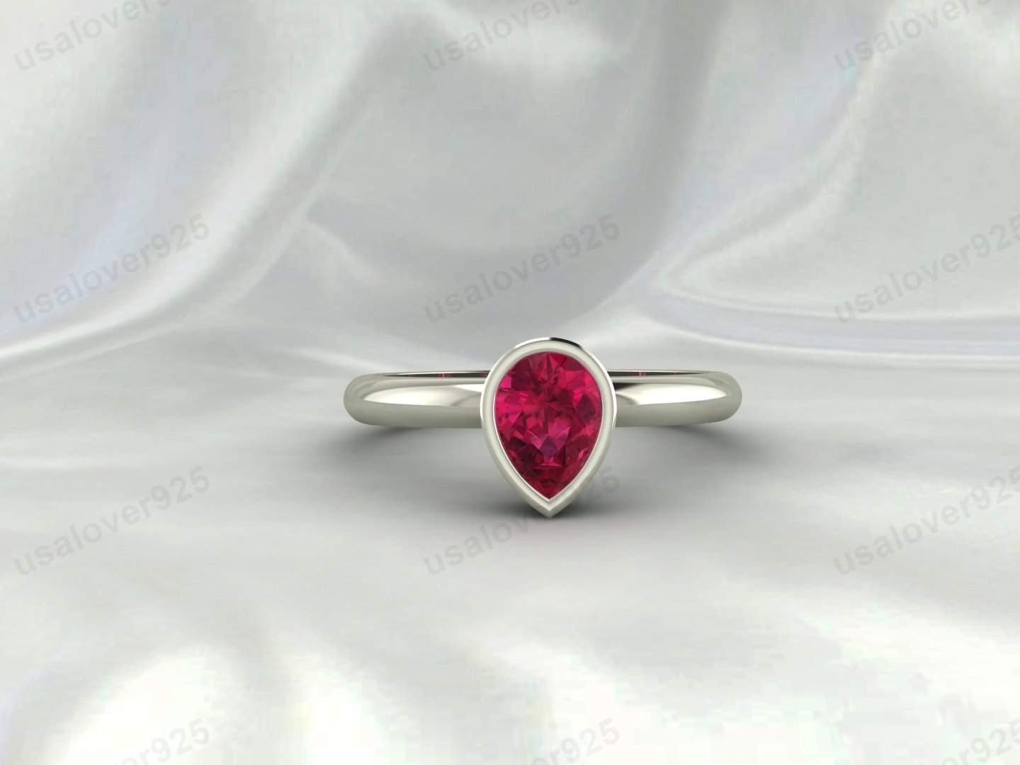Ruby Pear Stone Women Ring, 925 Sterling Silver Jewelry