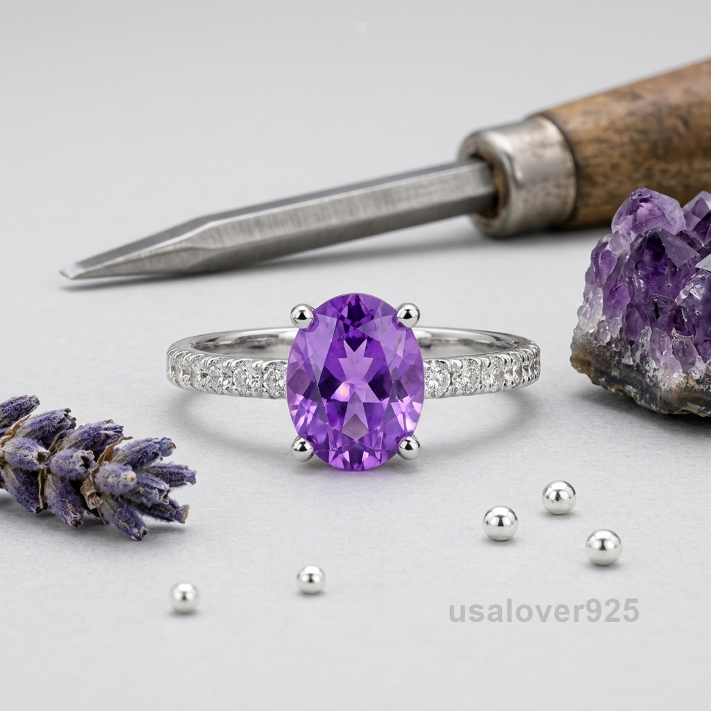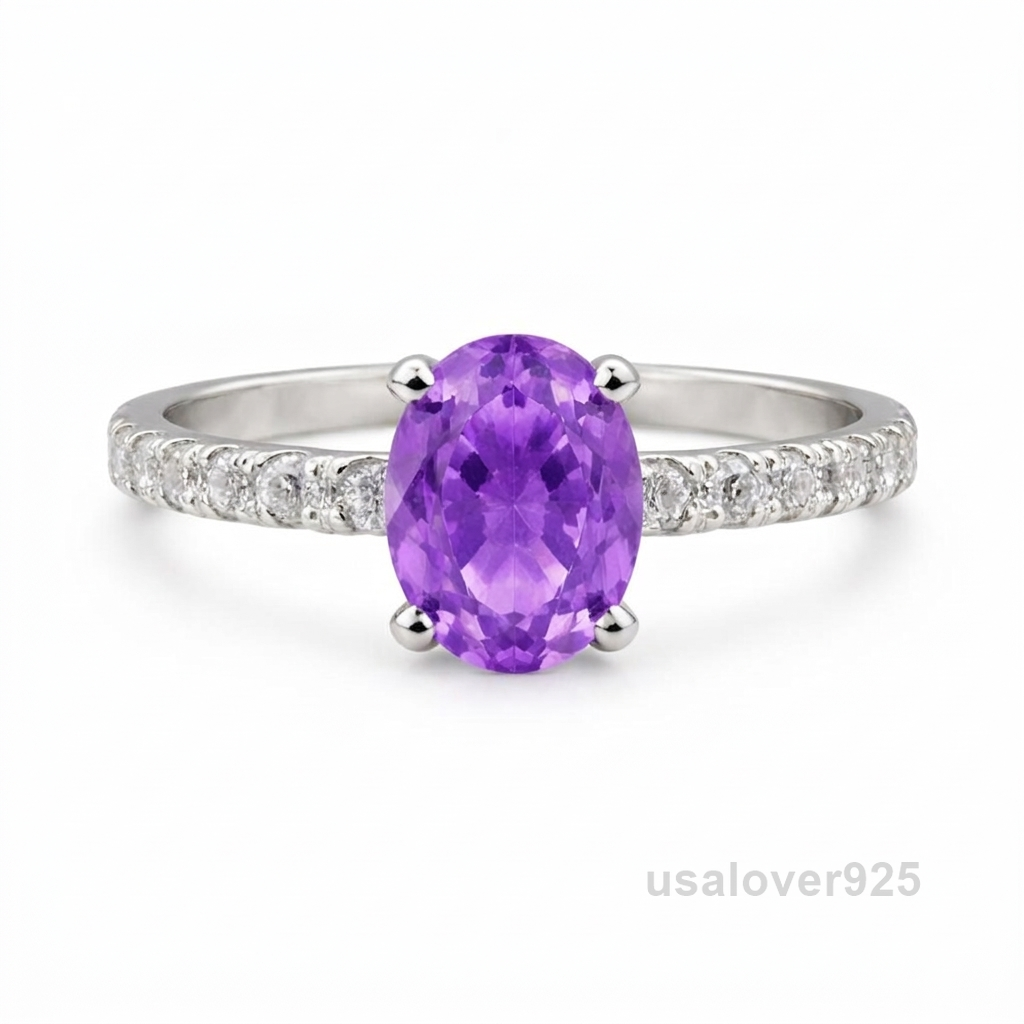 Adorn your hand with the majestic beauty of this Amethyst and CZ Solitaire Ring. Meticulously crafted in high-polish 925 Sterling Silver, this ring features a captivating center-cut Amethyst accented by shimmering Cubic Zirconia for added radiance. Whether you are celebrating a February birthday, looking for a romantic promise ring, or seeking a vibrant statement piece, this ring offers a perfect blend of spiritual serenity and timeless luxury.