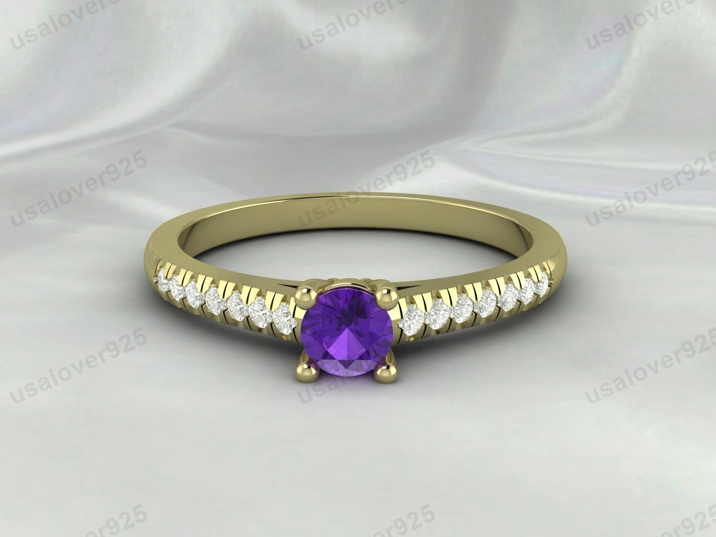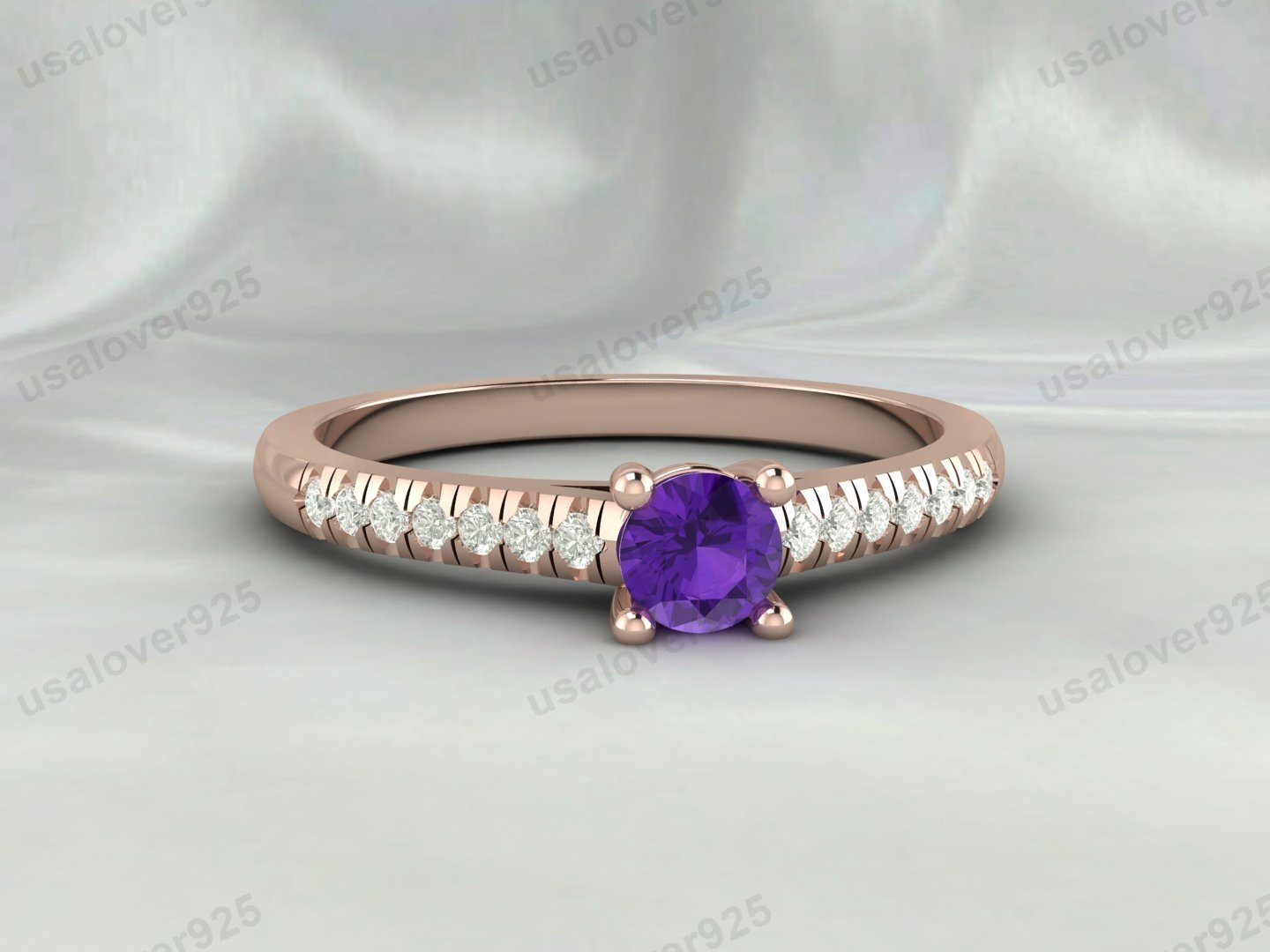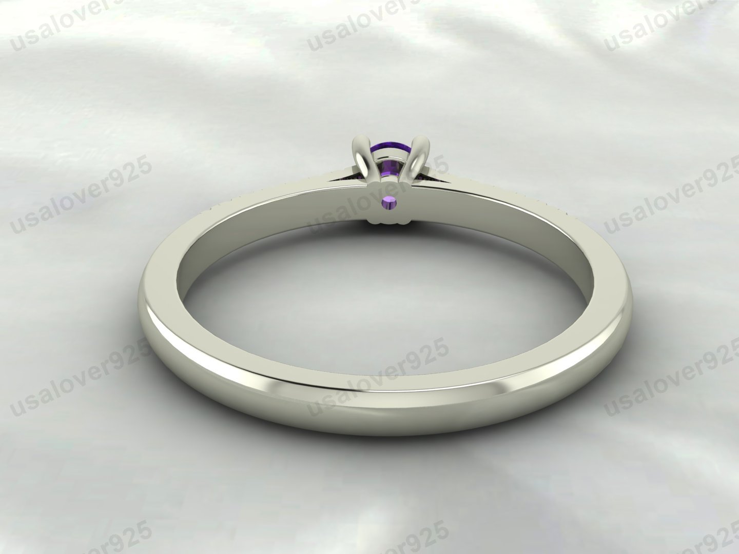 Amethyst & CZ Diamond Gemstone Solitaire Women Ring – 925 Sterling Silver Jewelry