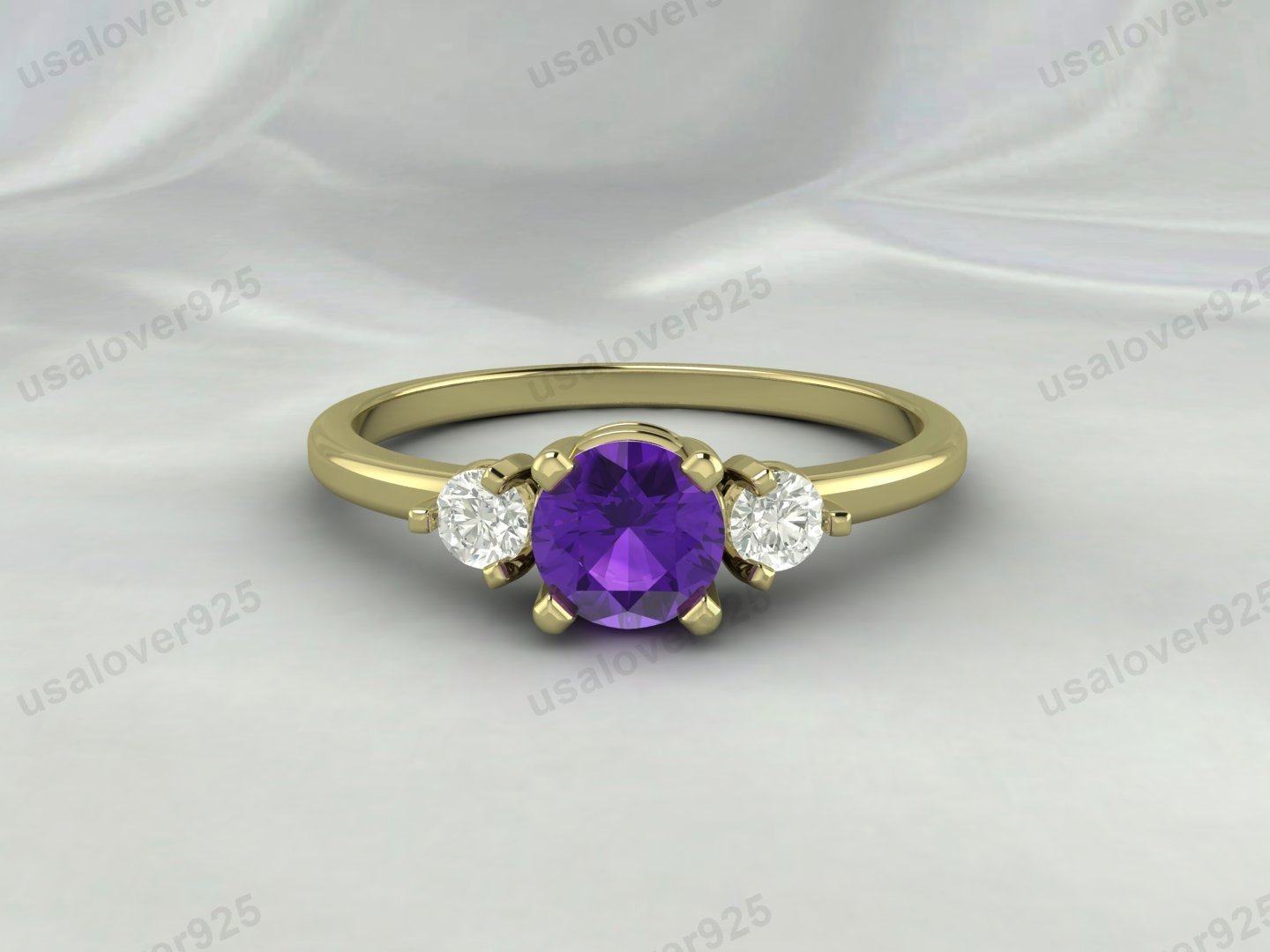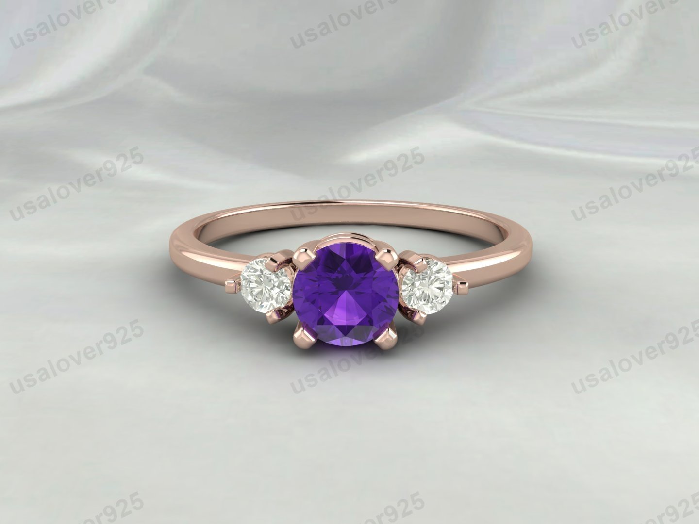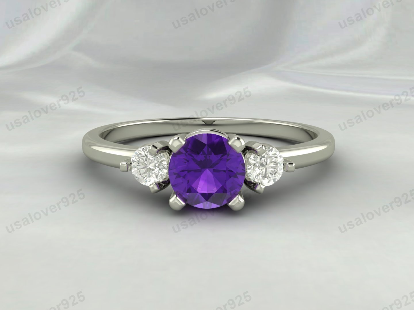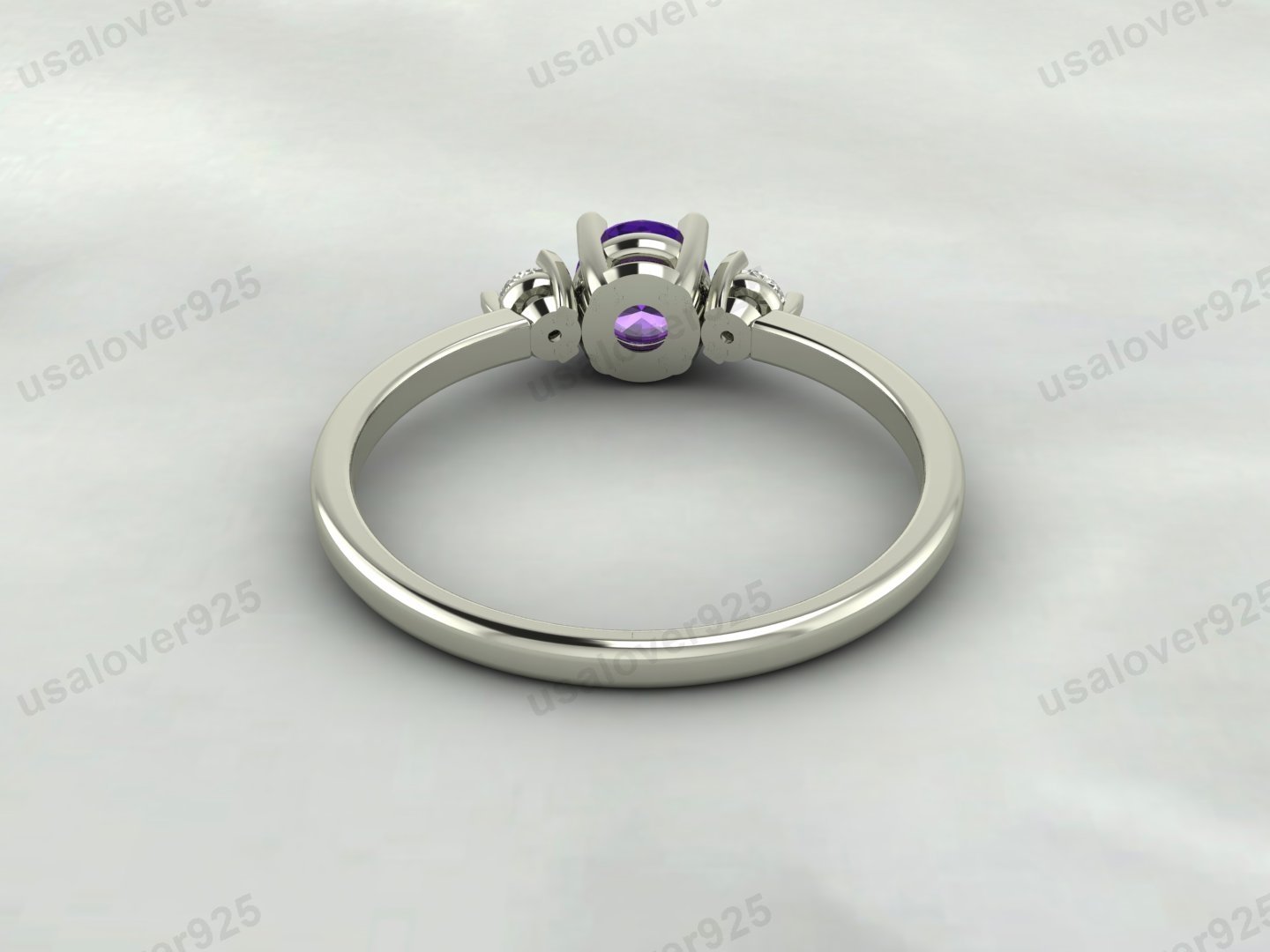 Amethyst & CZ Diamond Gemstone Solitaire Women Ring – 925 Sterling Silver Jewelry