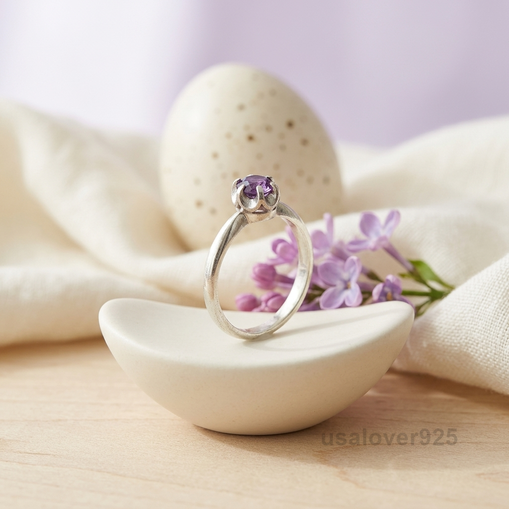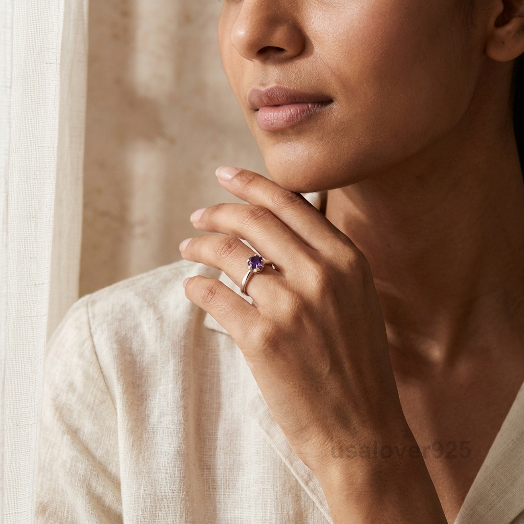Embrace timeless sophistication with this Amethyst Gemstone Solitaire Ring. Meticulously handcrafted in 925 Solid Sterling Silver, this ring features a stunning, brilliant-cut purple Amethyst held in a classic secure setting. Known as the stone of peace and protection, its rich royal tones catch the light beautifully, making it an ideal February birthstone gift, a vibrant promise ring, or a minimalist statement piece for your daily collection. A high-quality, handcrafted treasure designed to add a touch of majestic elegance to any ensemble.