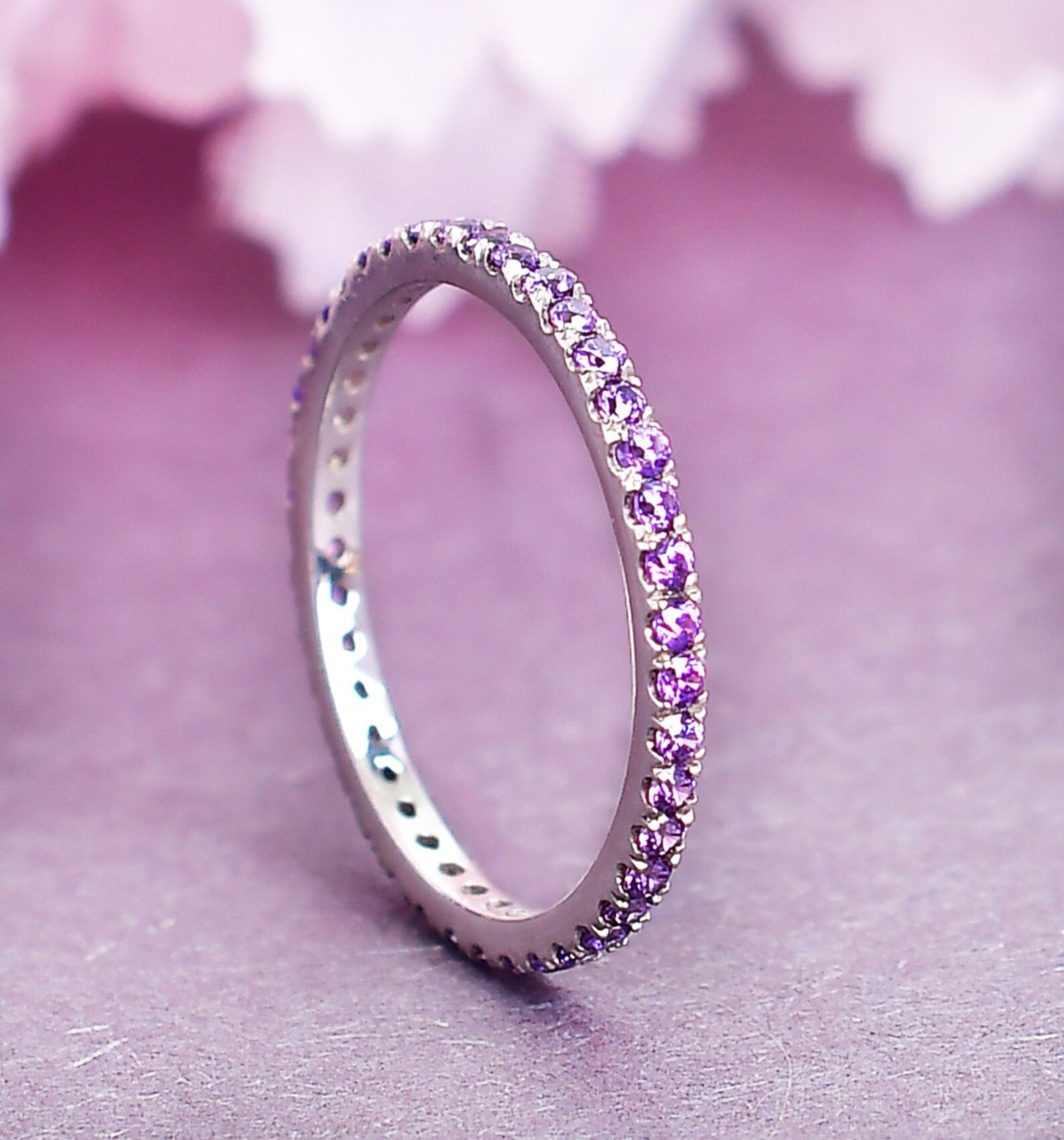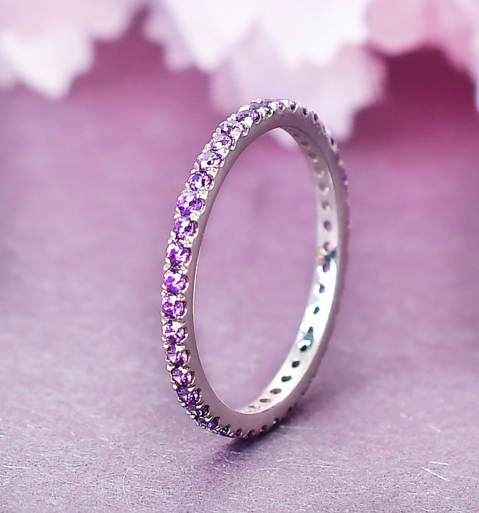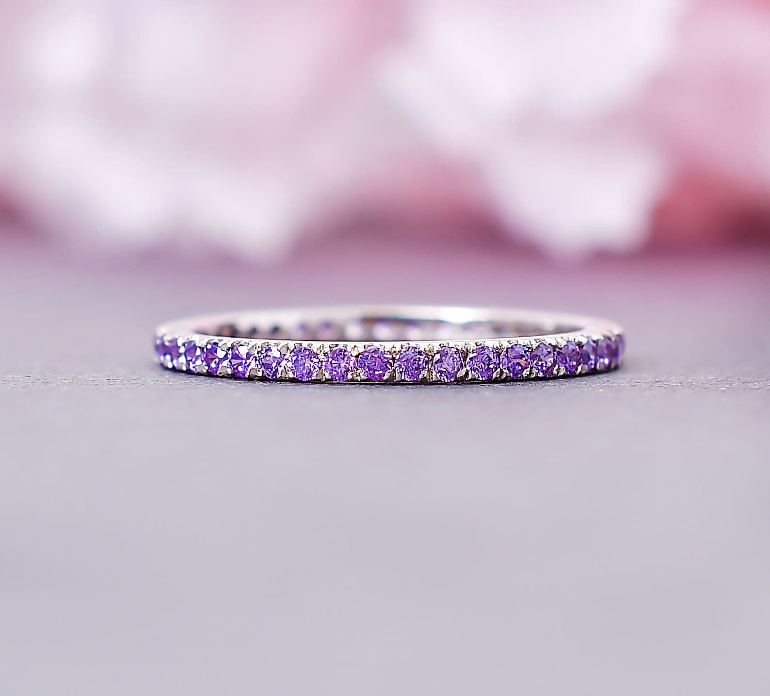 Amethyst Micro Pave Eternity Band – Delicate Full Eternity Stacking Ring, 925 Sterling Silver Jewelry