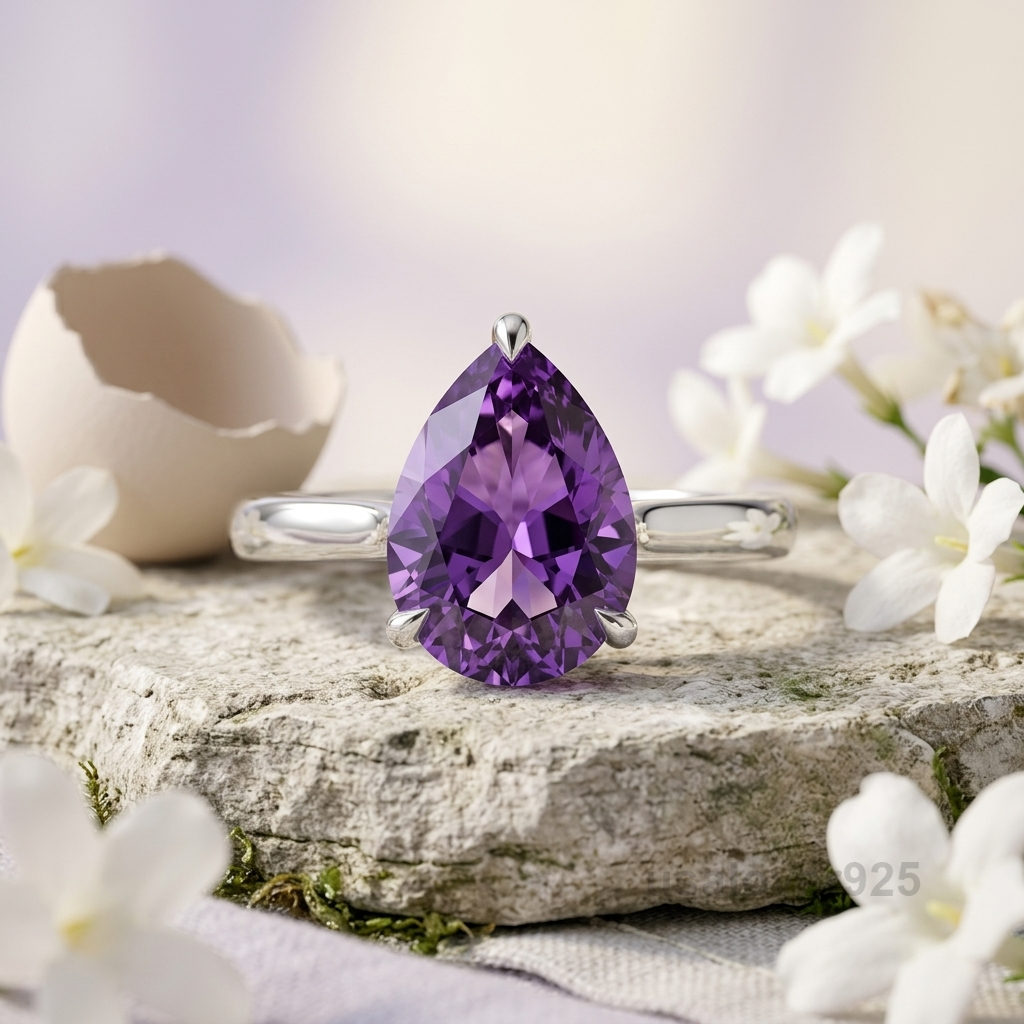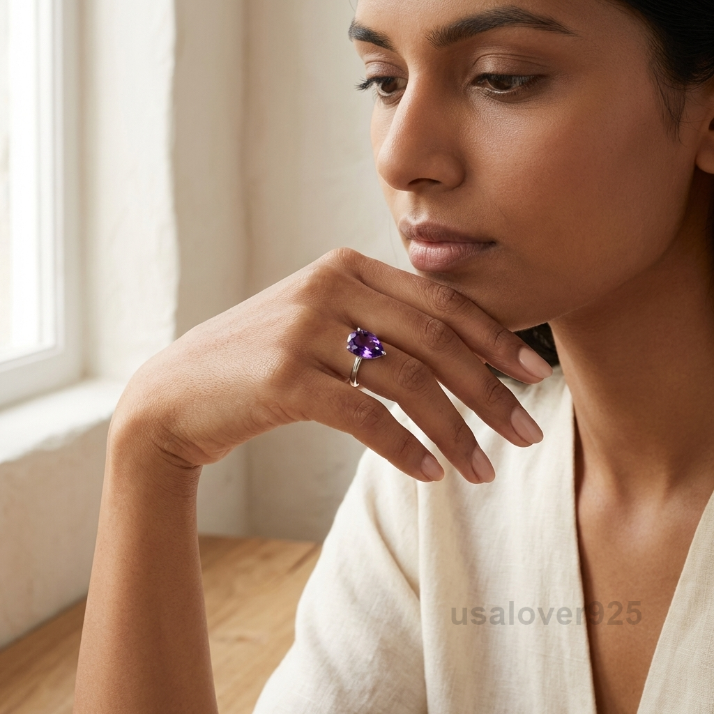 Grace your hand with the sophisticated beauty of this Amethyst Pear Stone Ring. Hand-finished in premium 925 Sterling Silver, this ring features a stunning teardrop-shaped amethyst that symbolizes peace and clarity. The elegant, elongated silhouette of the pear cut creates a flattering look on any finger, making it a perfect February birthstone gift, a romantic promise ring, or a vibrant statement piece for your daily jewelry rotation.