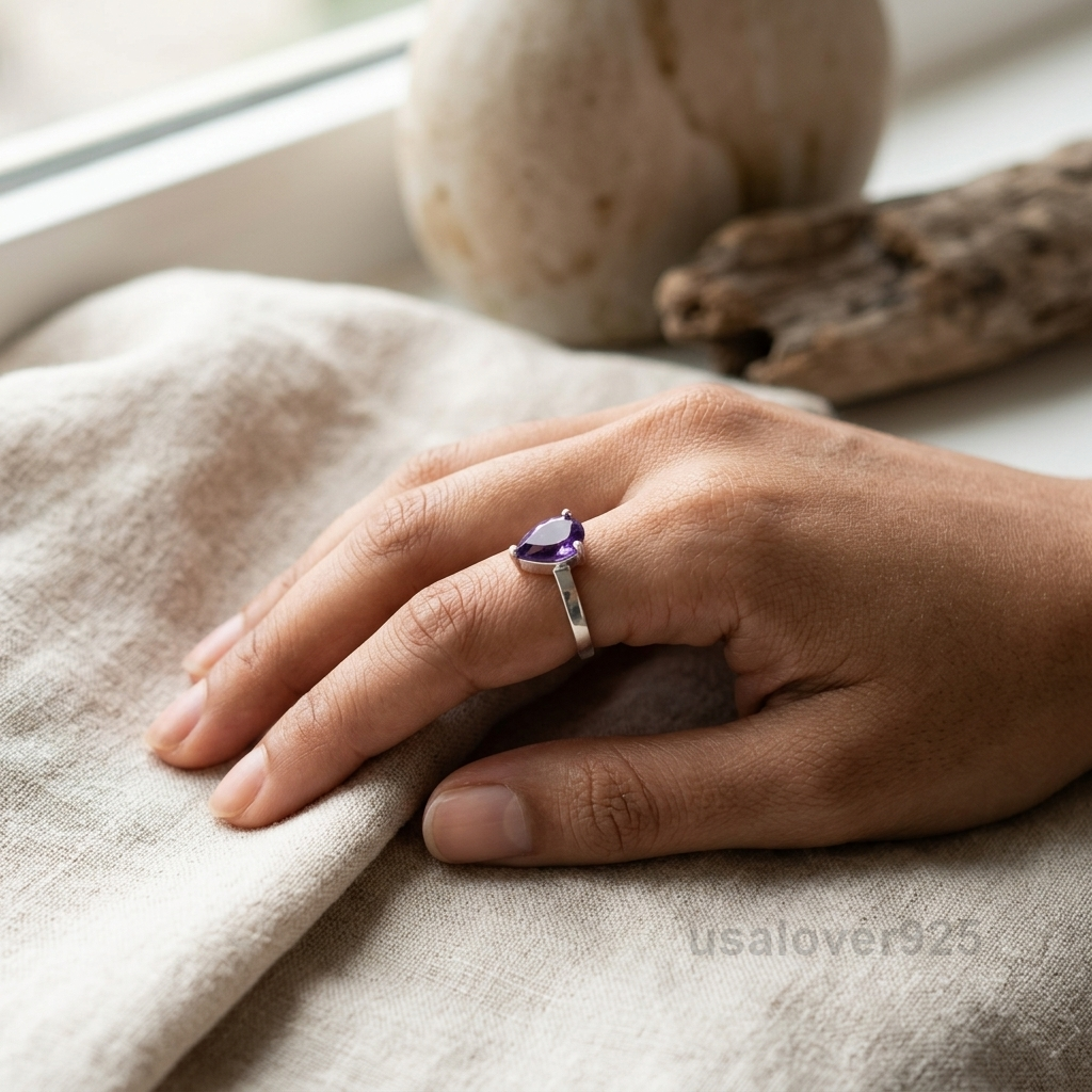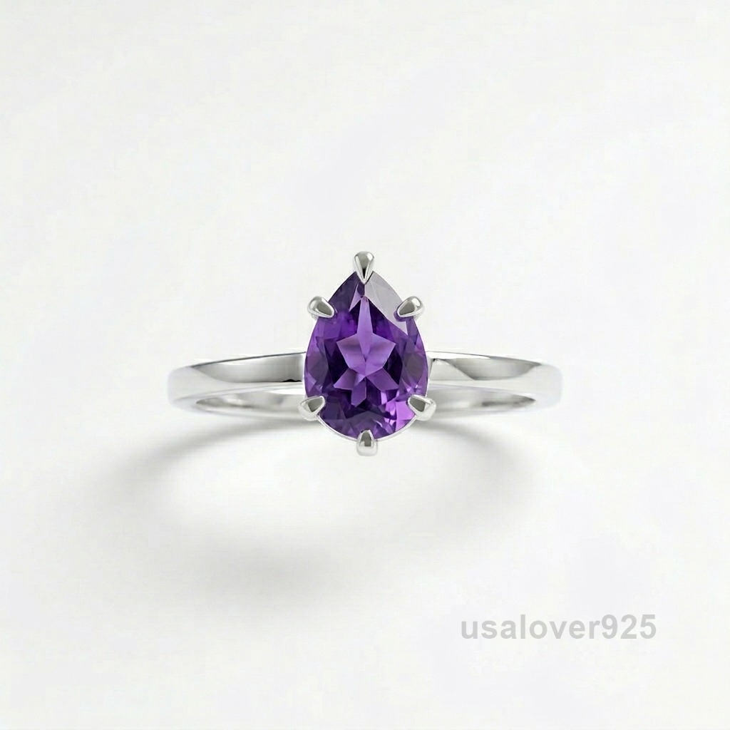 Experience the sophisticated charm of this Amethyst Pear Stone Ring. Meticulously handcrafted in high-polish 925 Sterling Silver, this ring features a stunning teardrop-cut Amethyst that captures a rich, royal glow. The unique pear silhouette offers a modern yet timeless look that elongates the hand, making it an ideal February birthstone gift, a romantic promise ring, or a vibrant statement piece for your daily jewelry collection.