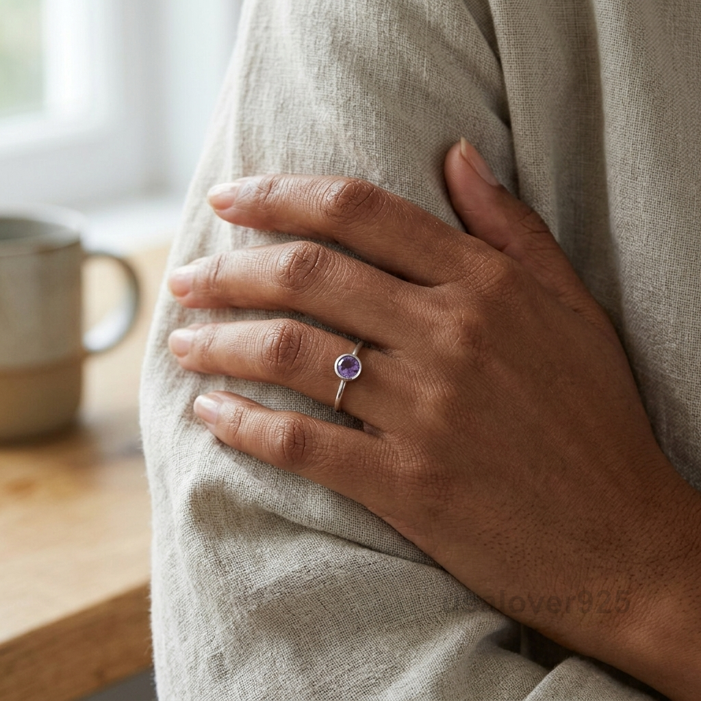Adorn your hand with the majestic glow of this Amethyst Round Purple Stone Ring. Meticulously handcrafted by skilled artisans in high-polish 925 Sterling Silver, this ring features a brilliant round-cut Amethyst that radiates a rich, velvety purple. Its timeless solitaire setting allows the gemstone to take center stage, making it an ideal February birthstone gift, a romantic promise ring, or a vibrant centerpiece for your daily jewelry collection. A stunning symbol of peace, clarity, and handcrafted elegance.