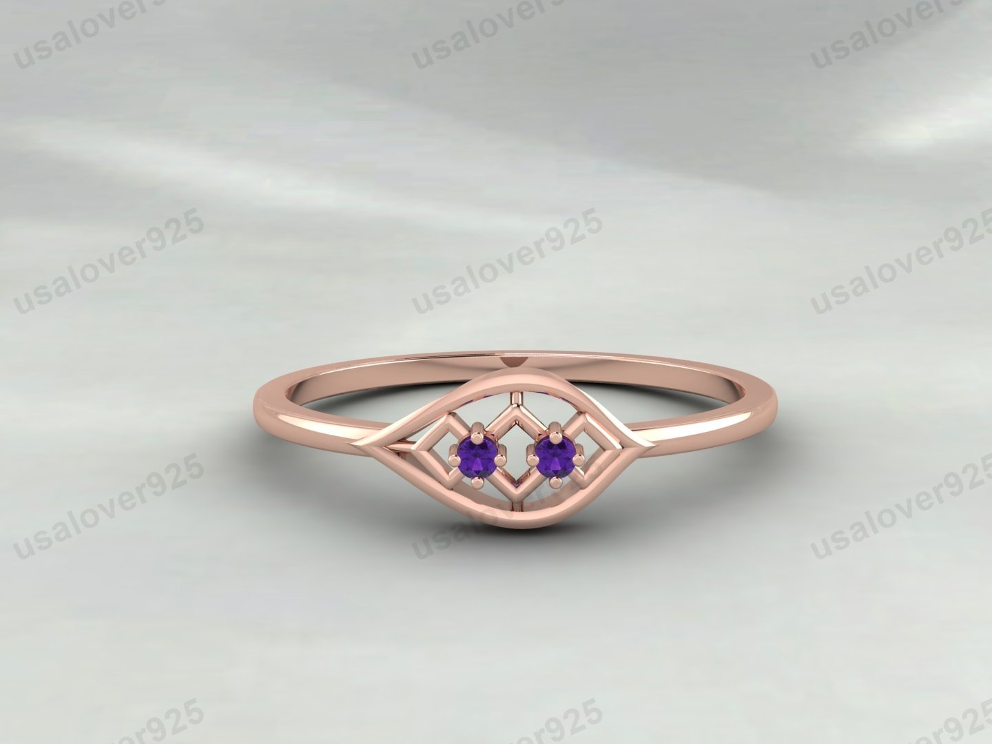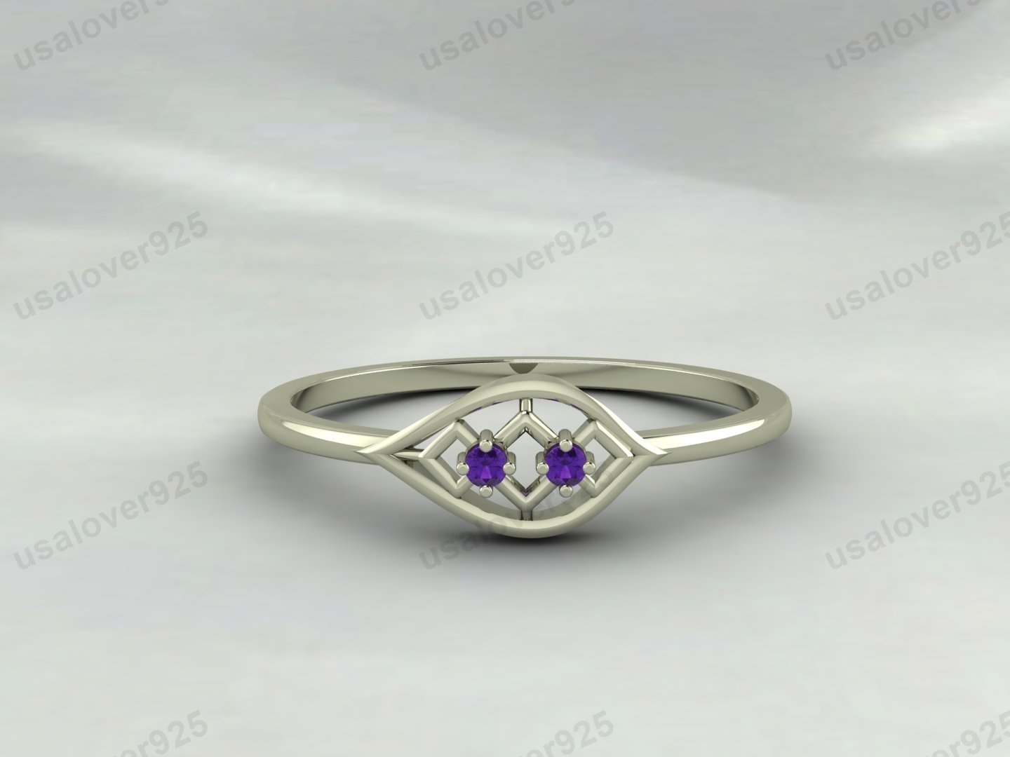 Amethyst Two Gemstone Women Band – 925 Sterling Silver Ring Jewelry