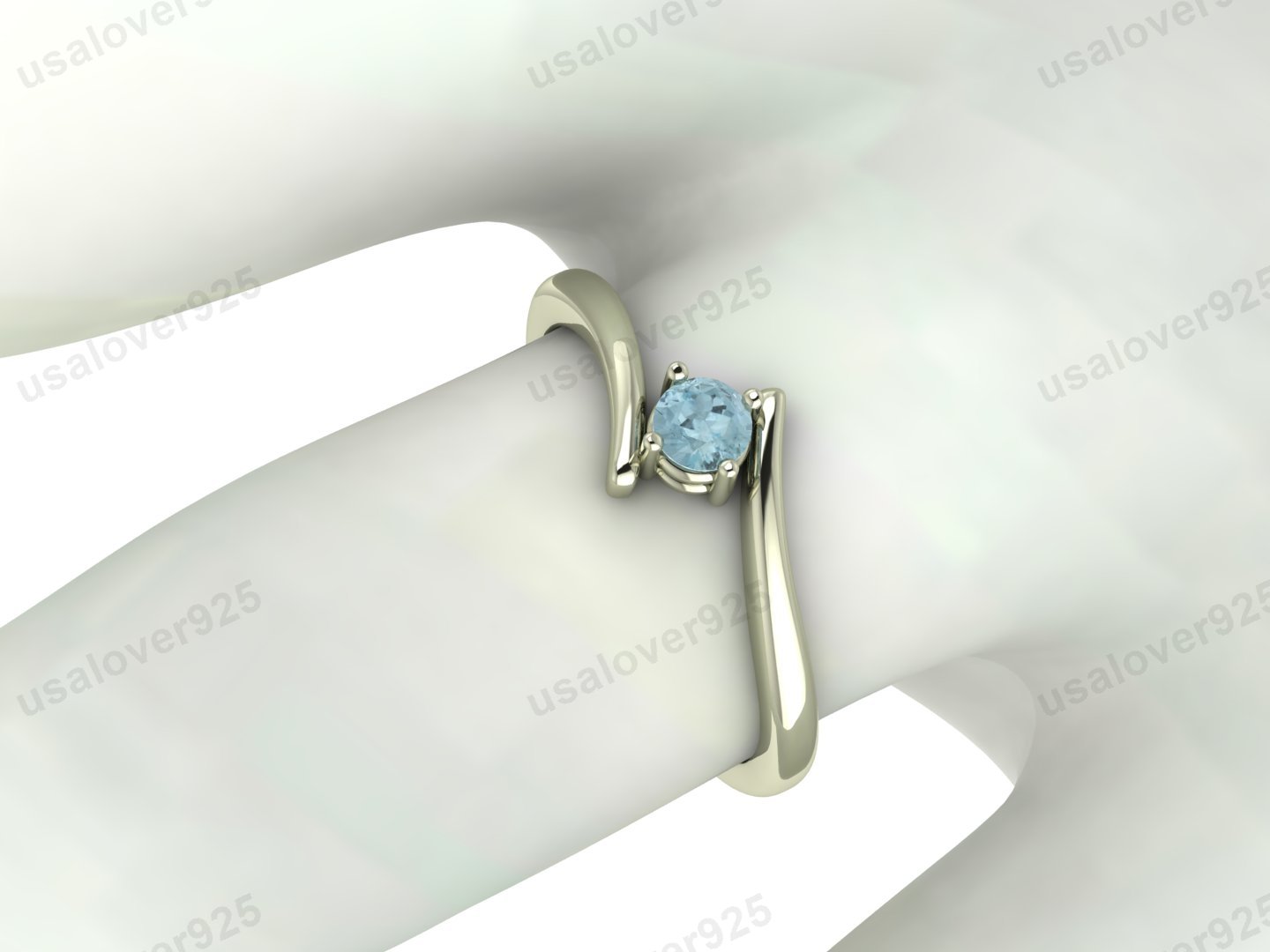 Aquamarine Gemstone Solitaire Women Ring – 925 Sterling Silver Ring Jewelry
