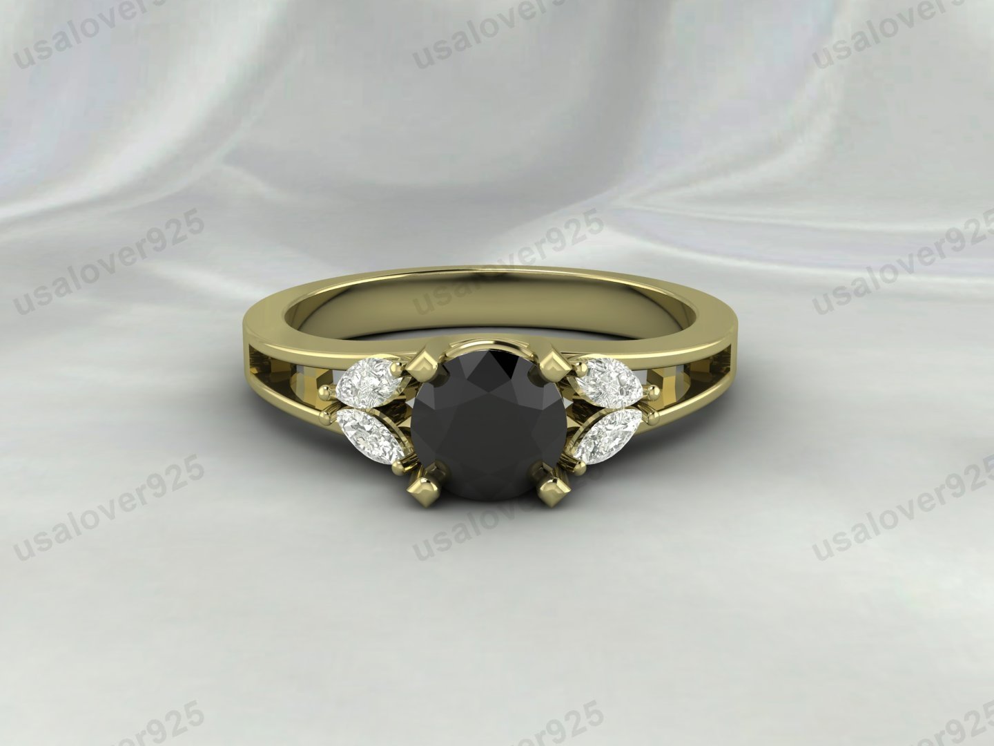 Black Onyx & CZ Diamond Gemstone Solitaire Women Ring – 925 Sterling Silver Jewelry