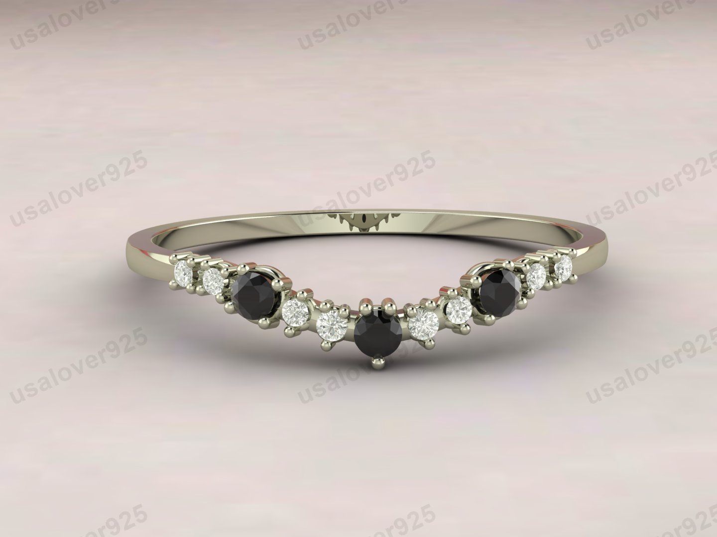 Black Onyx & CZ Diamond Stone Eternity Women Carved Band – 925 Sterling Silver Ring Jewelry