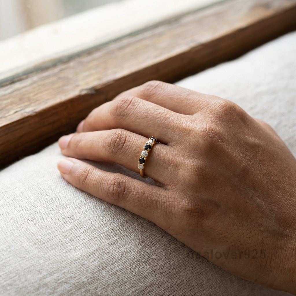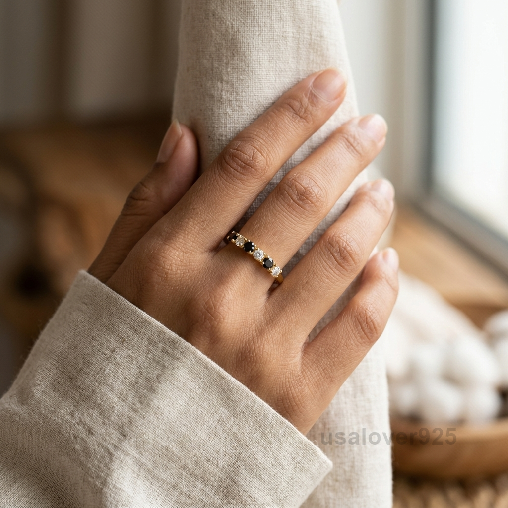 Make a powerful style statement with this Black Onyx and CZ Eternity Band. Meticulously crafted in high-polish 925 Sterling Silver, this ring features a continuous, shimmering circle of alternating midnight-black Onyx and brilliant-cut Cubic Zirconia. Designed to offer a bold, modern twist on a classic silhouette, it serves as a stunning protection stone gift, a unique alternative wedding band, or a high-contrast stacking piece that adds a touch of mystery to any jewelry collection.