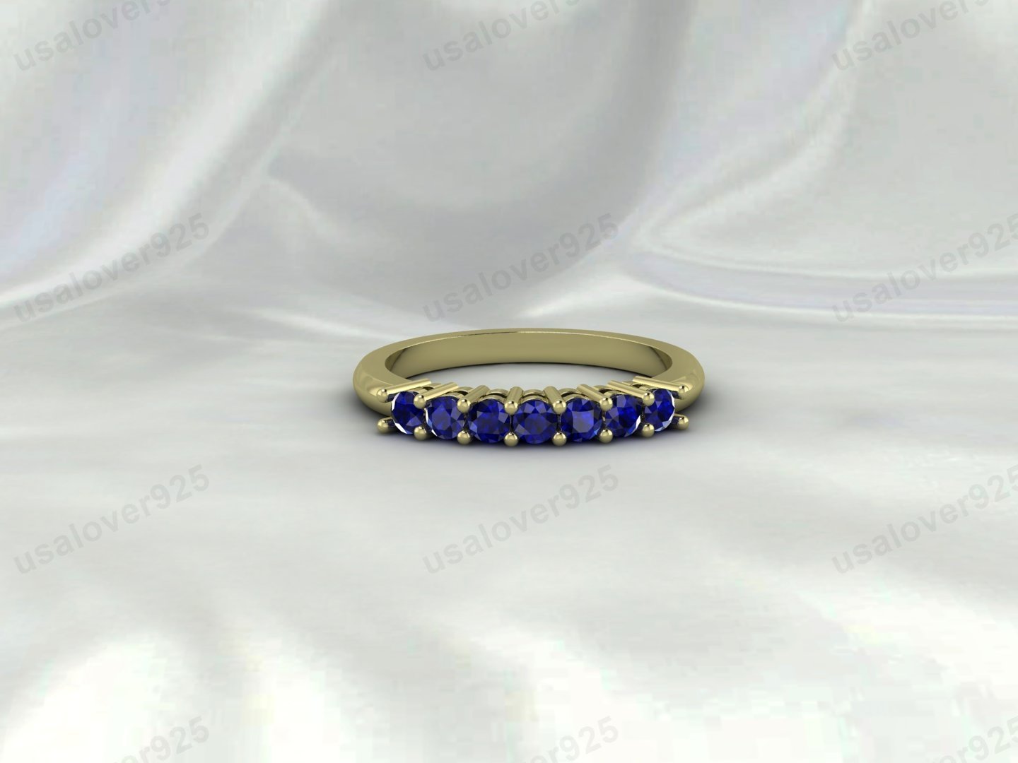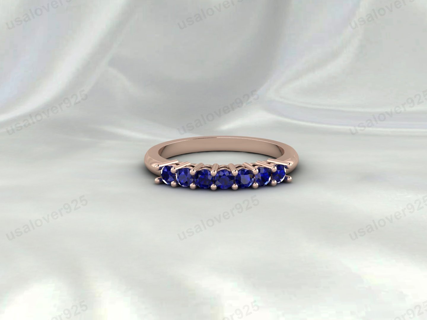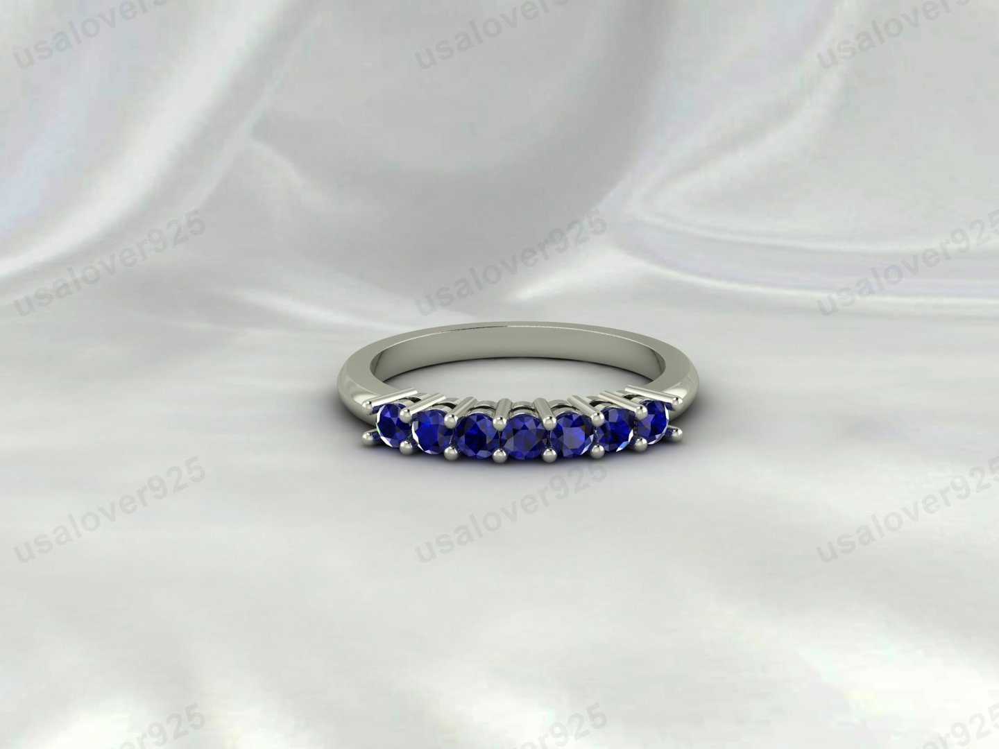 Blue Sapphire Eternity Band, 925 Sterling Silver Wedding Ring, September Birthstone Jewelry Gift