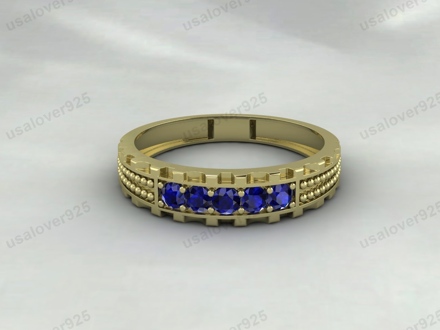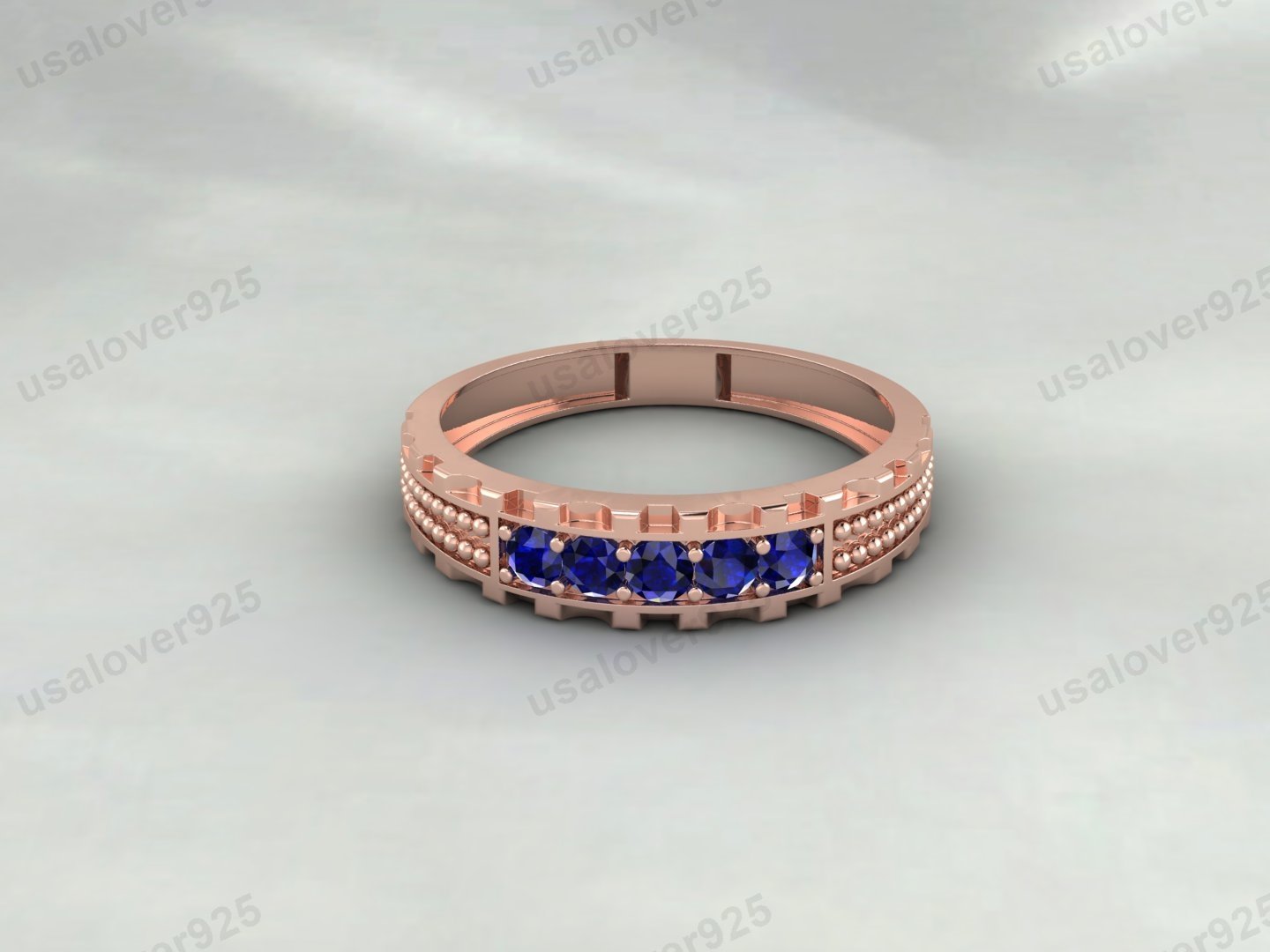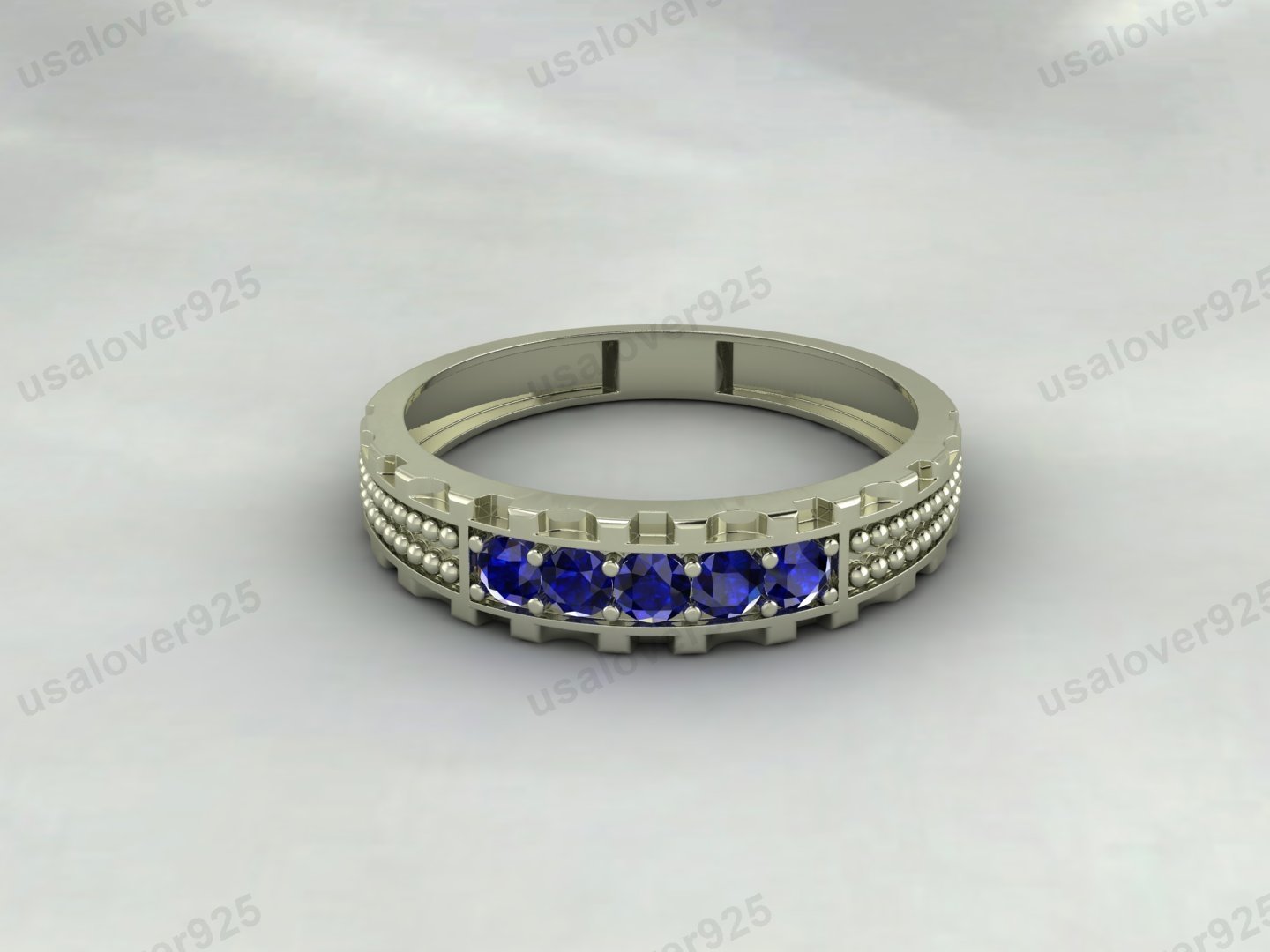 Blue Sapphire Gemstone Half Eternity Women Band – 925 Sterling Silver Ring Jewelry