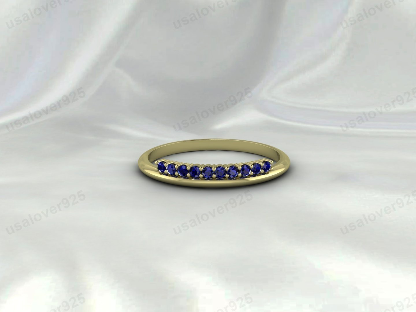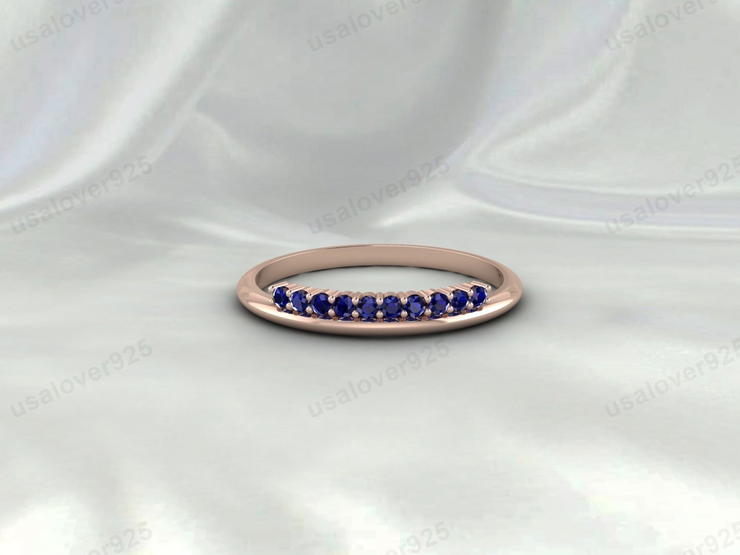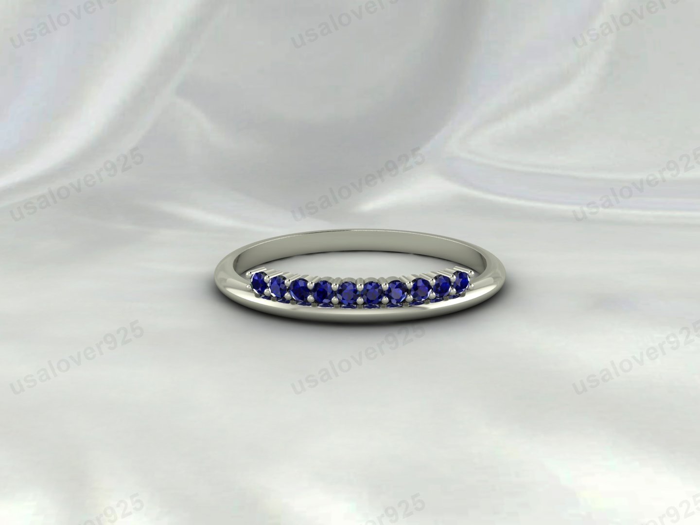 Blue Sapphire Half-Eternity Ring, 925 Sterling Silver Stackable Women’s Band