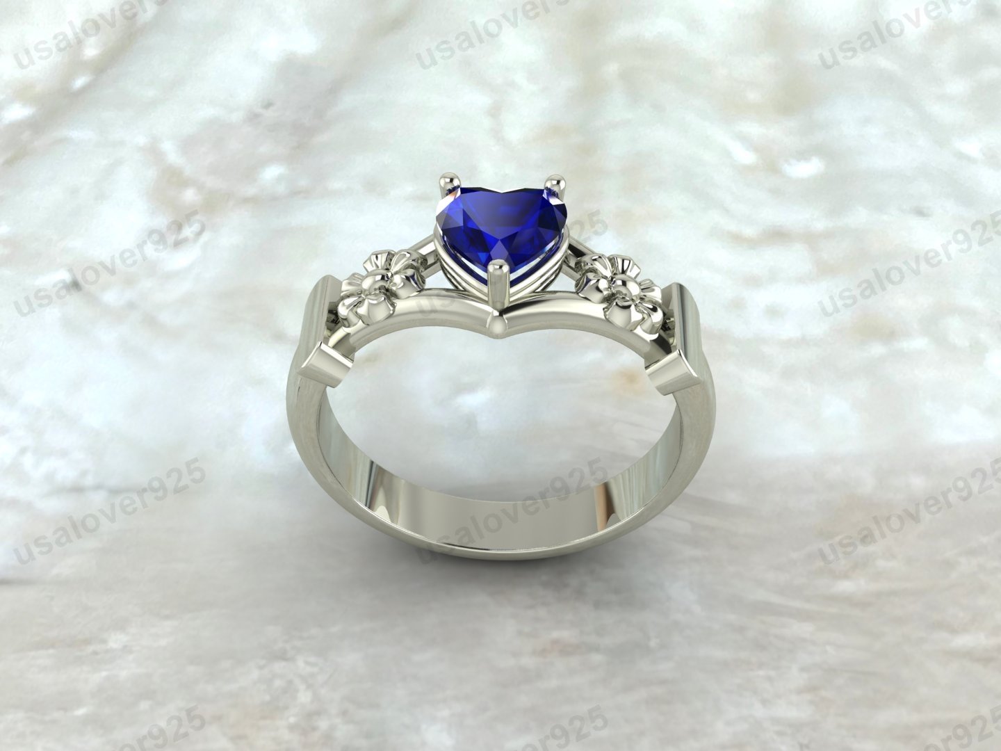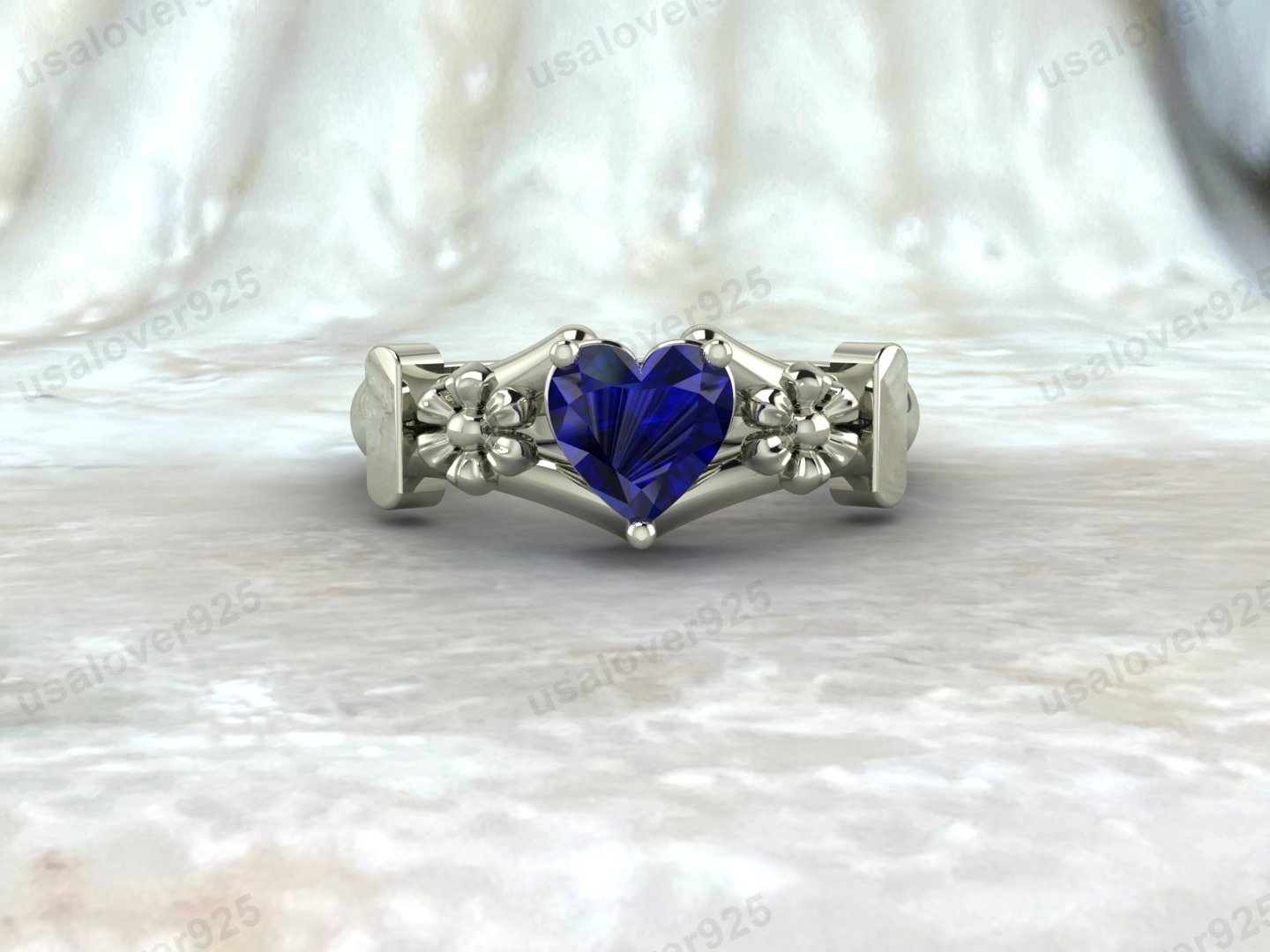 Blue Sapphire Heart Shape Gemstone Women Ring – 925 Sterling Silver Jewelry