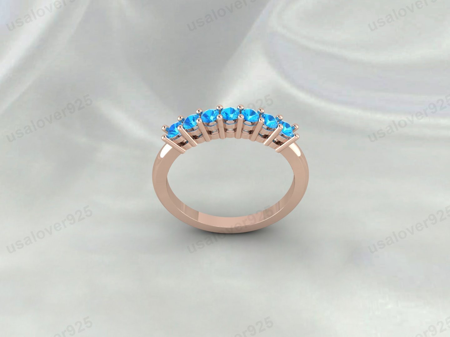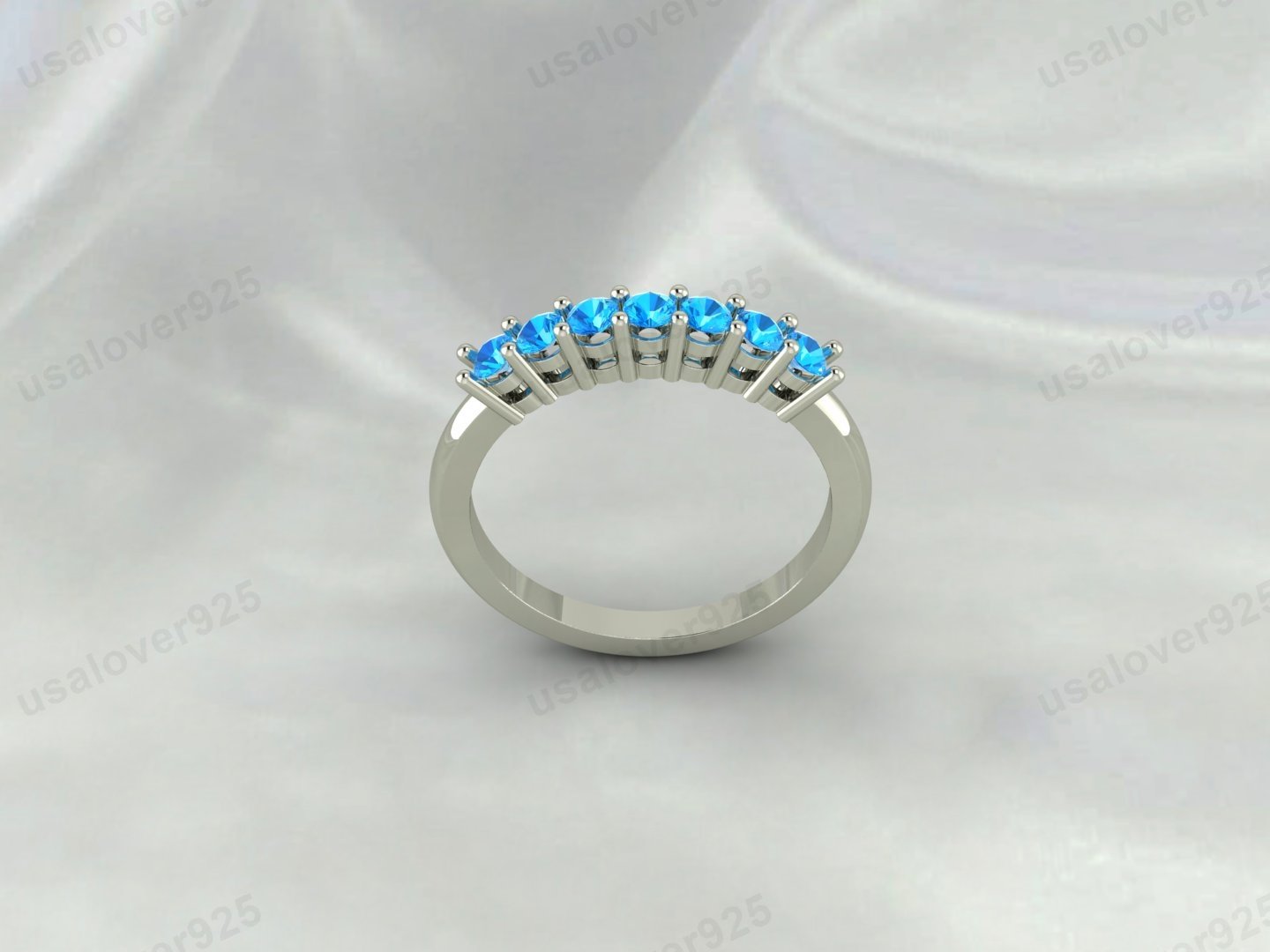Blue Topaz Full Eternity Band | 925 Sterling Silver Stacking Ring