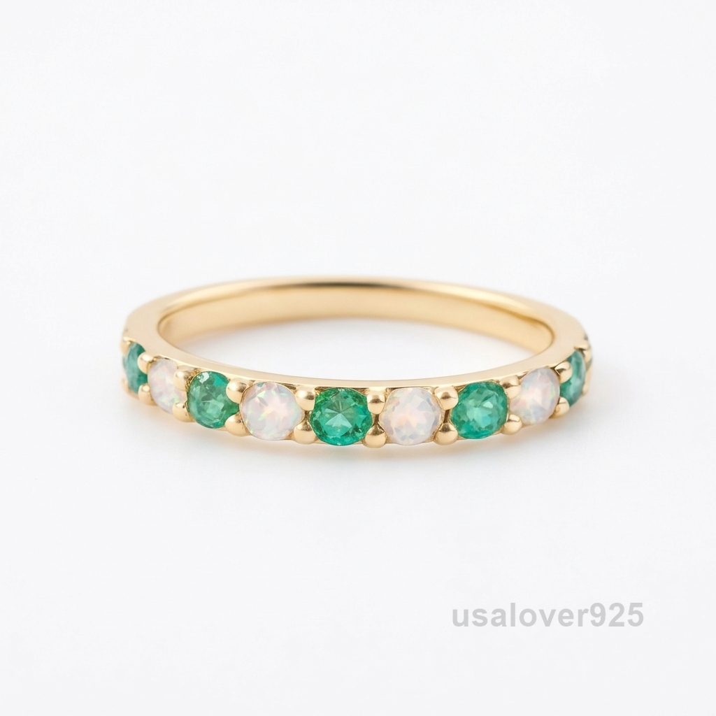 Surround your finger in vibrant luxury with this Emerald and CZ Half Eternity Band. Meticulously crafted in polished 925 Sterling Silver, this ring features a continuous, shimmering circle of alternating lush green emerald-toned stones and brilliant-cut Cubic Zirconia. Designed to catch the light from every angle, it serves as a stunning May birthstone gift, a sophisticated colorful wedding band, or a high-contrast stacking piece that adds a touch of vintage elegance to any jewelry collection.