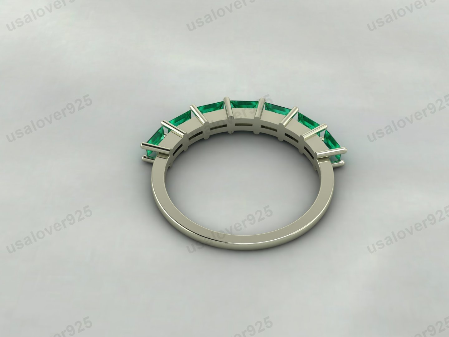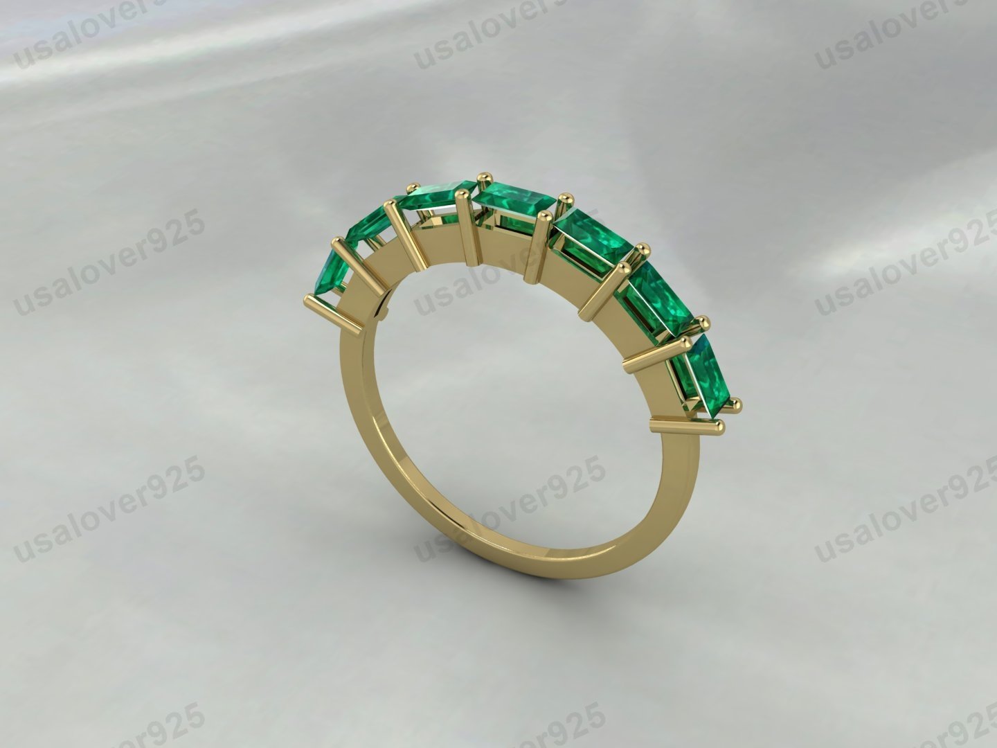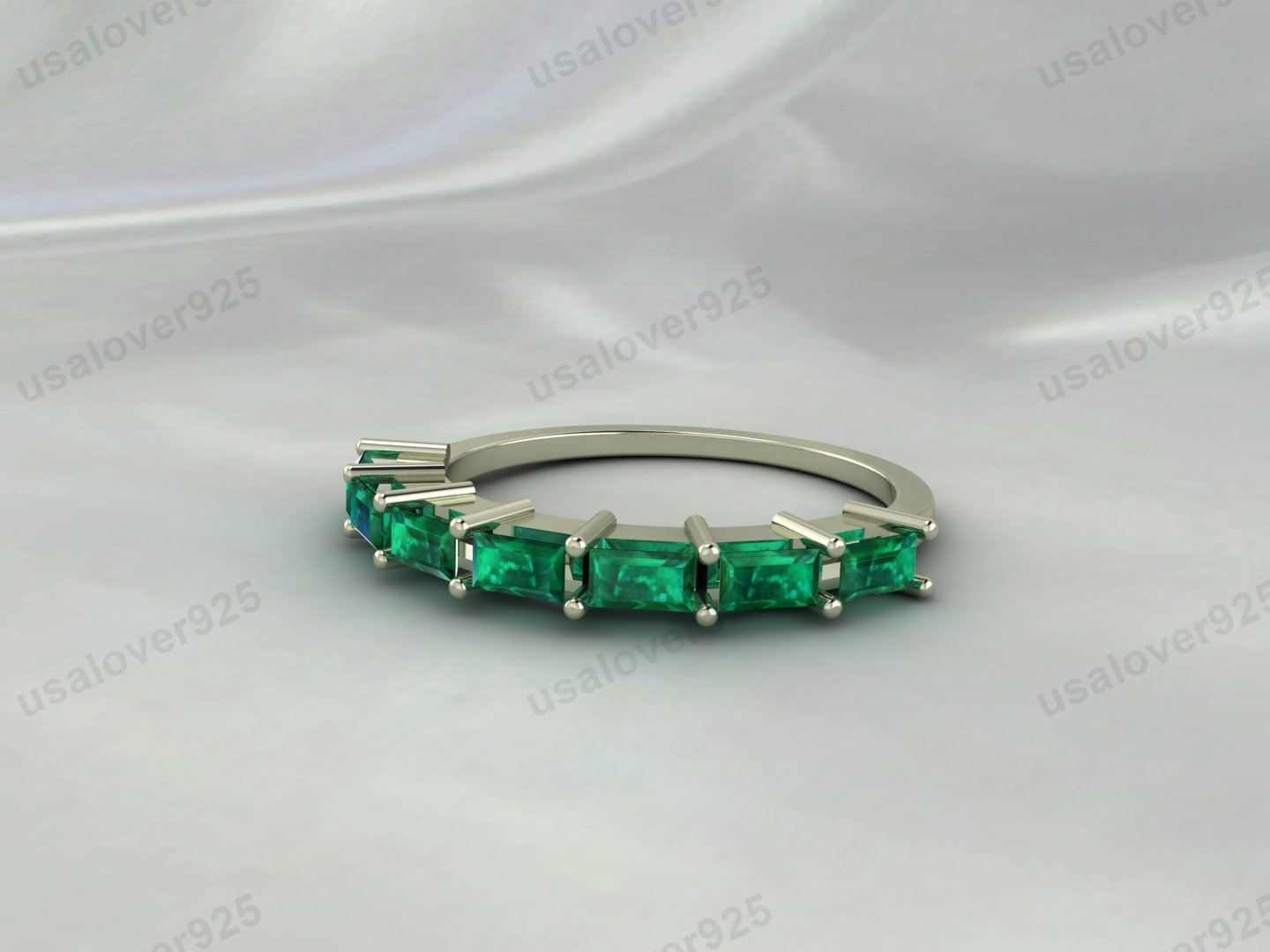 Emerald Baguette Gemstone Women Band – 925 Sterling Silver Ring Jewelry