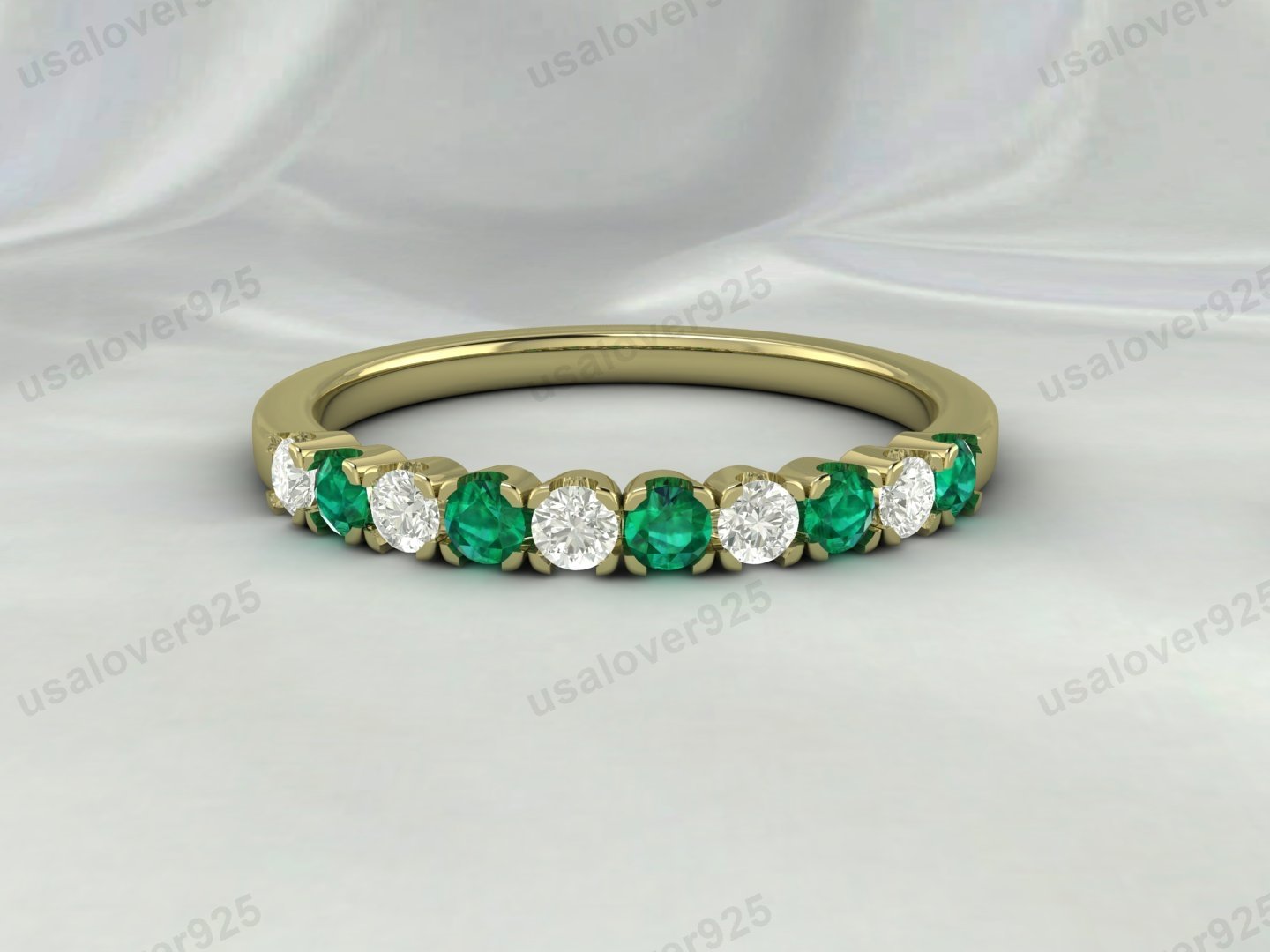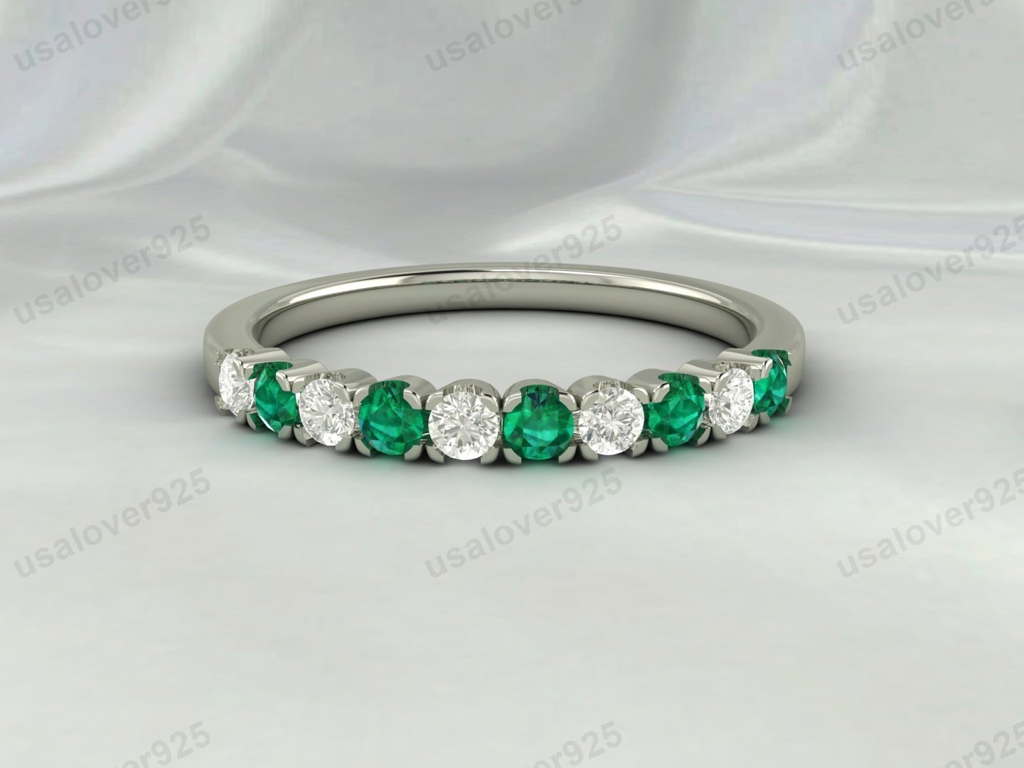 Emerald & CZ Diamond Stone Eternity Band for Women – 925 Sterling Silver Ring Jewelry