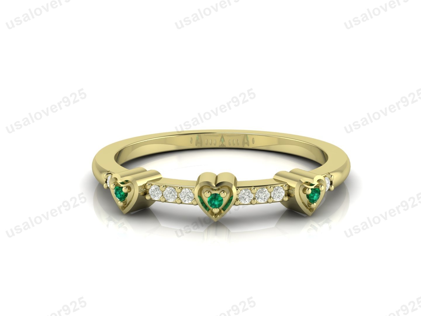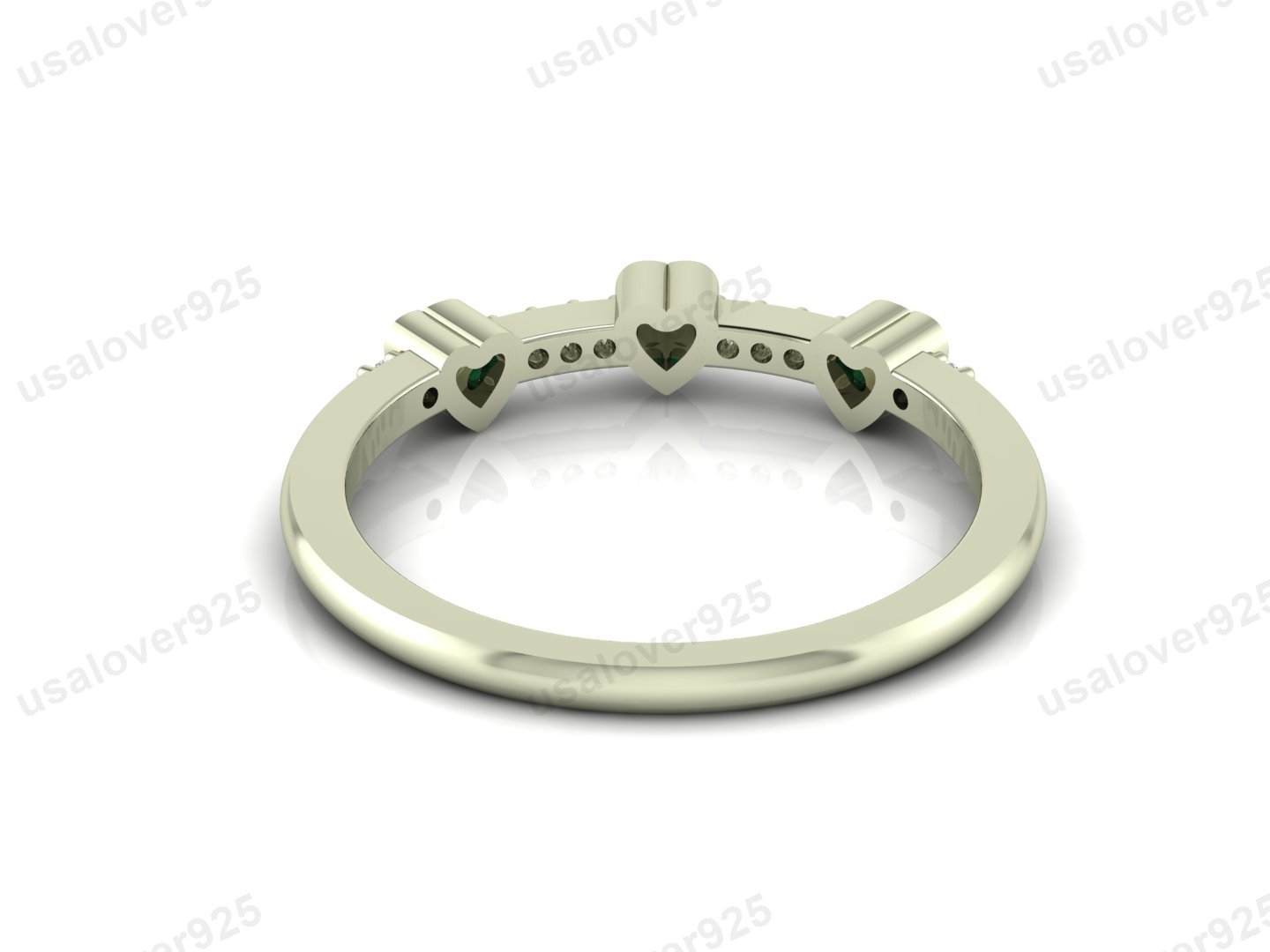 Emerald & CZ Diamond Stone Half Eternity Heart Design Women Band – 925 Sterling Silver Ring Jewelry