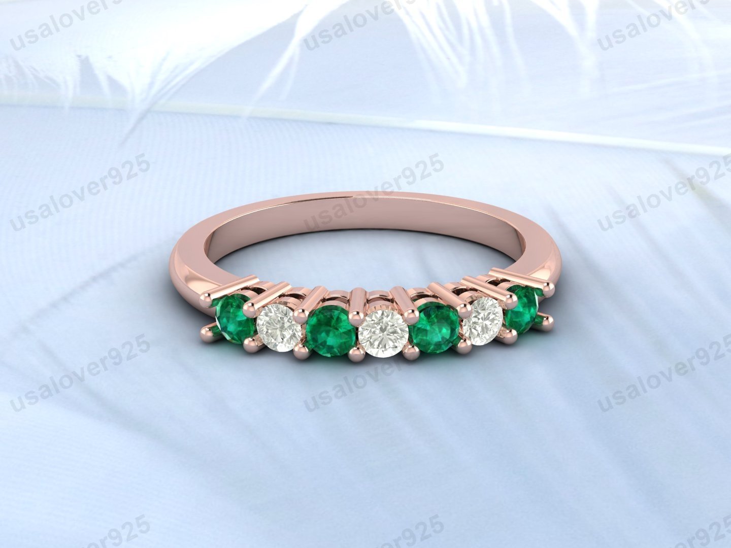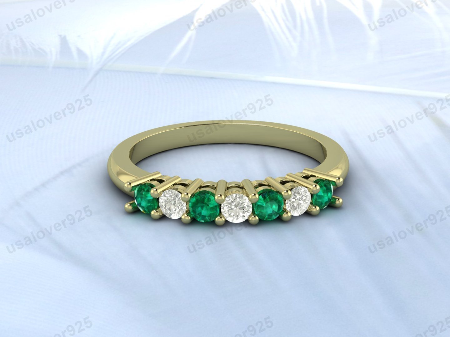Emerald & CZ Diamond Stone Half Eternity Women Band – 925 Sterling Silver Ring Jewelry