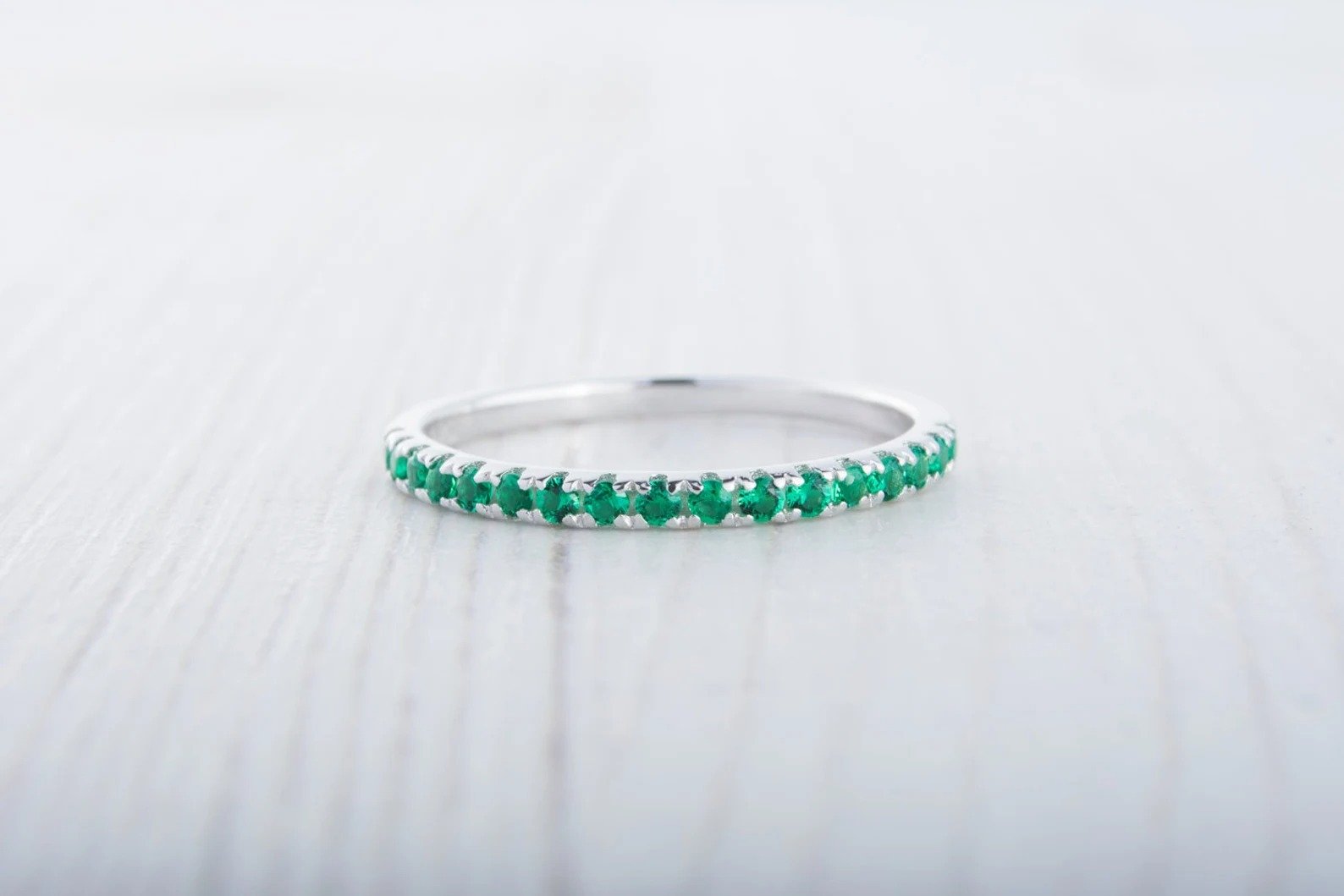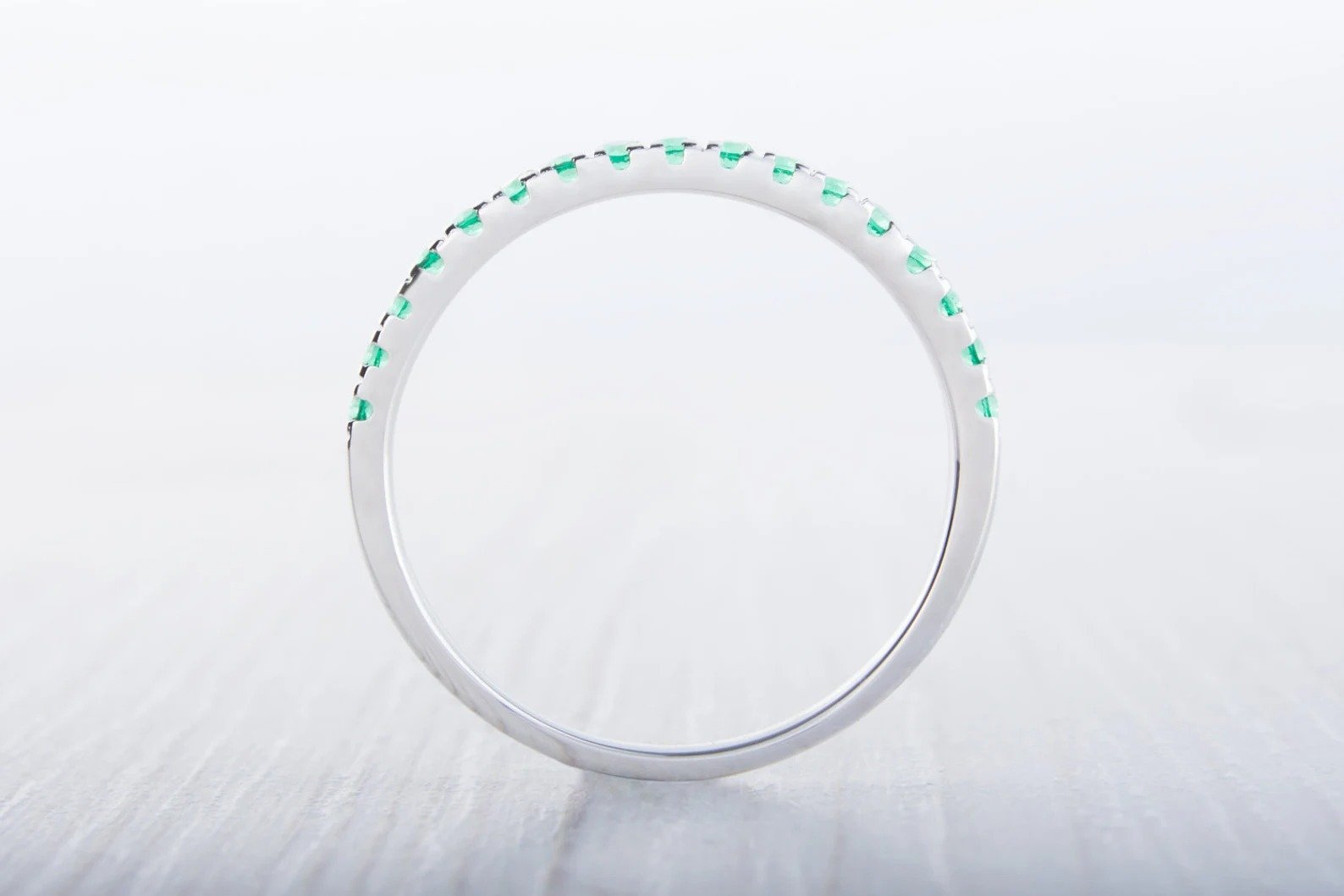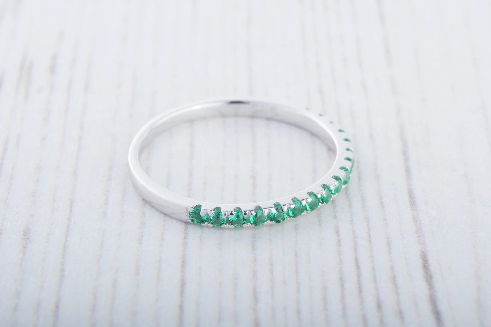 Emerald Gemstone Half Eternity Women Band – 925 Sterling Silver Ring Jewelry