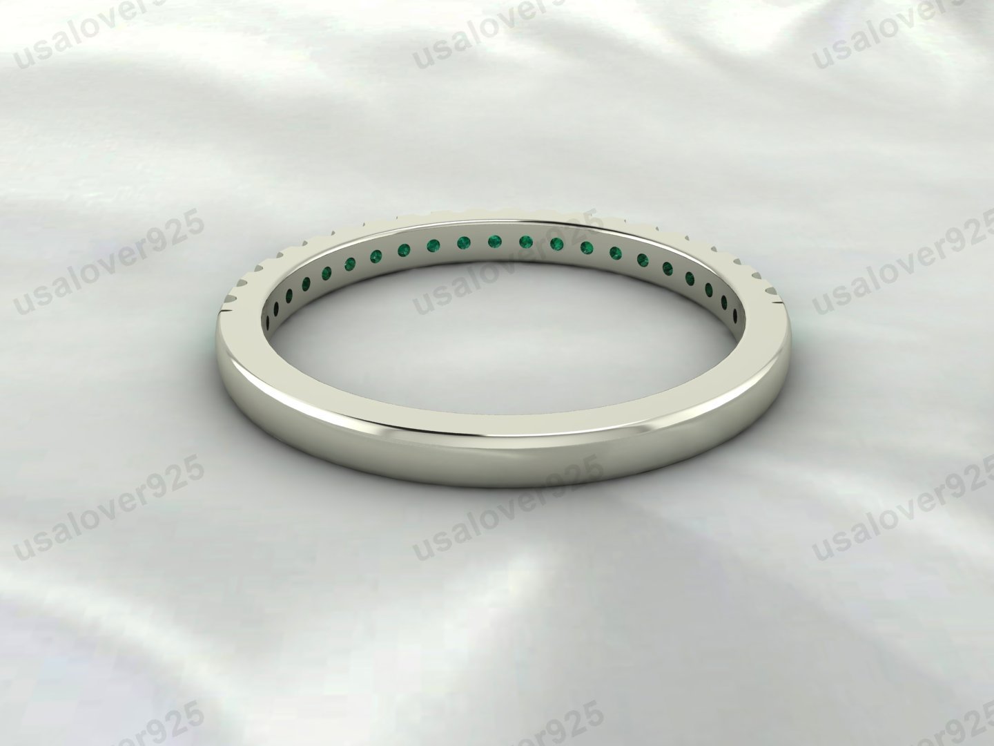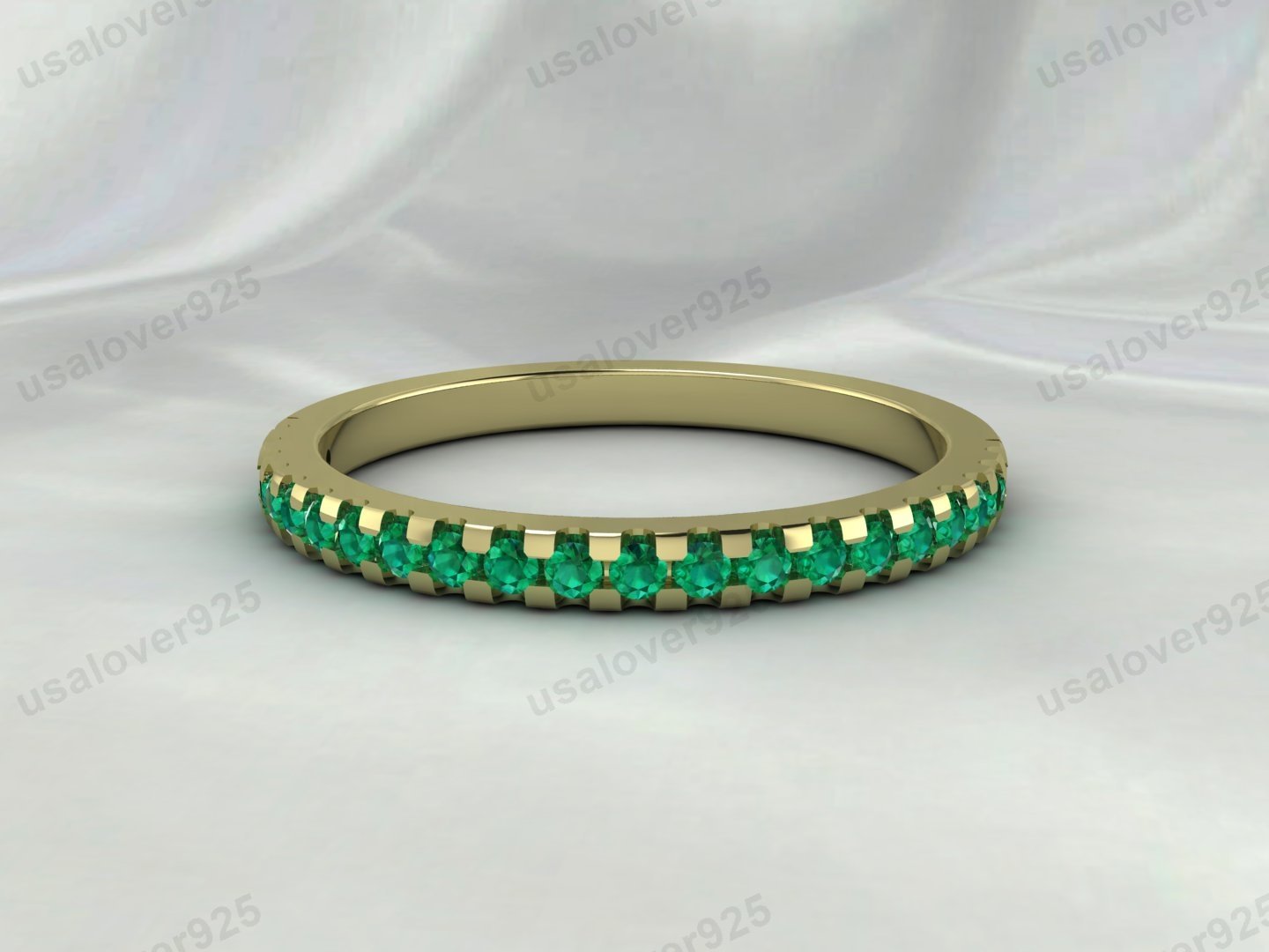 Emerald Gemstone Half Eternity Women Band – 925 Sterling Silver Ring Jewelry