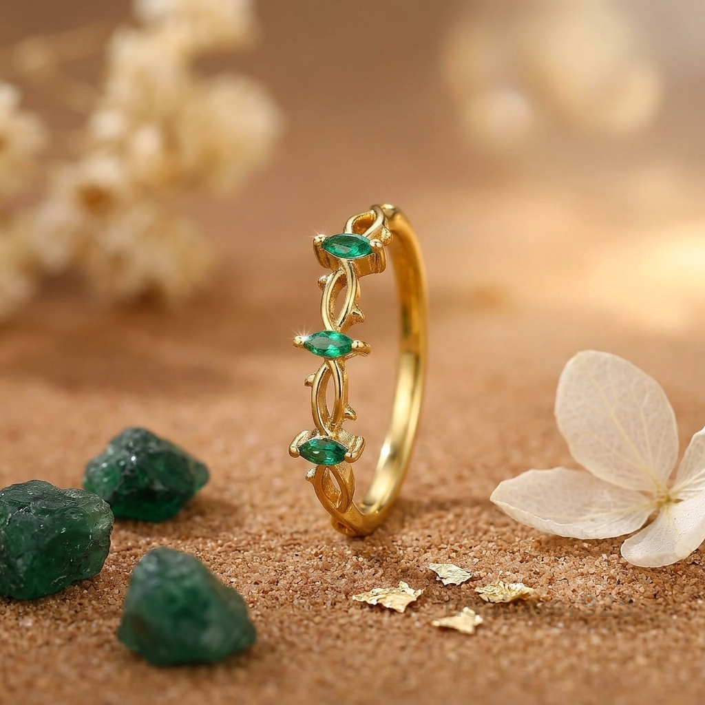 Illuminate your collection with the majestic charm of this Emerald Marquise Half Eternity Band. Meticulously handcrafted in 925 Solid Sterling Silver, this ring features a stunning row of brilliant-cut, marquise-shaped green Emeralds. The unique “navette” silhouette of the stones creates an elongated, elegant look that catches the light from every angle. Designed for both luxury and daily comfort, this piece serves as a vibrant May birthstone gift, a unique anniversary ring, or a sophisticated stacking piece that adds a touch of royal greenery to your jewelry ensemble.