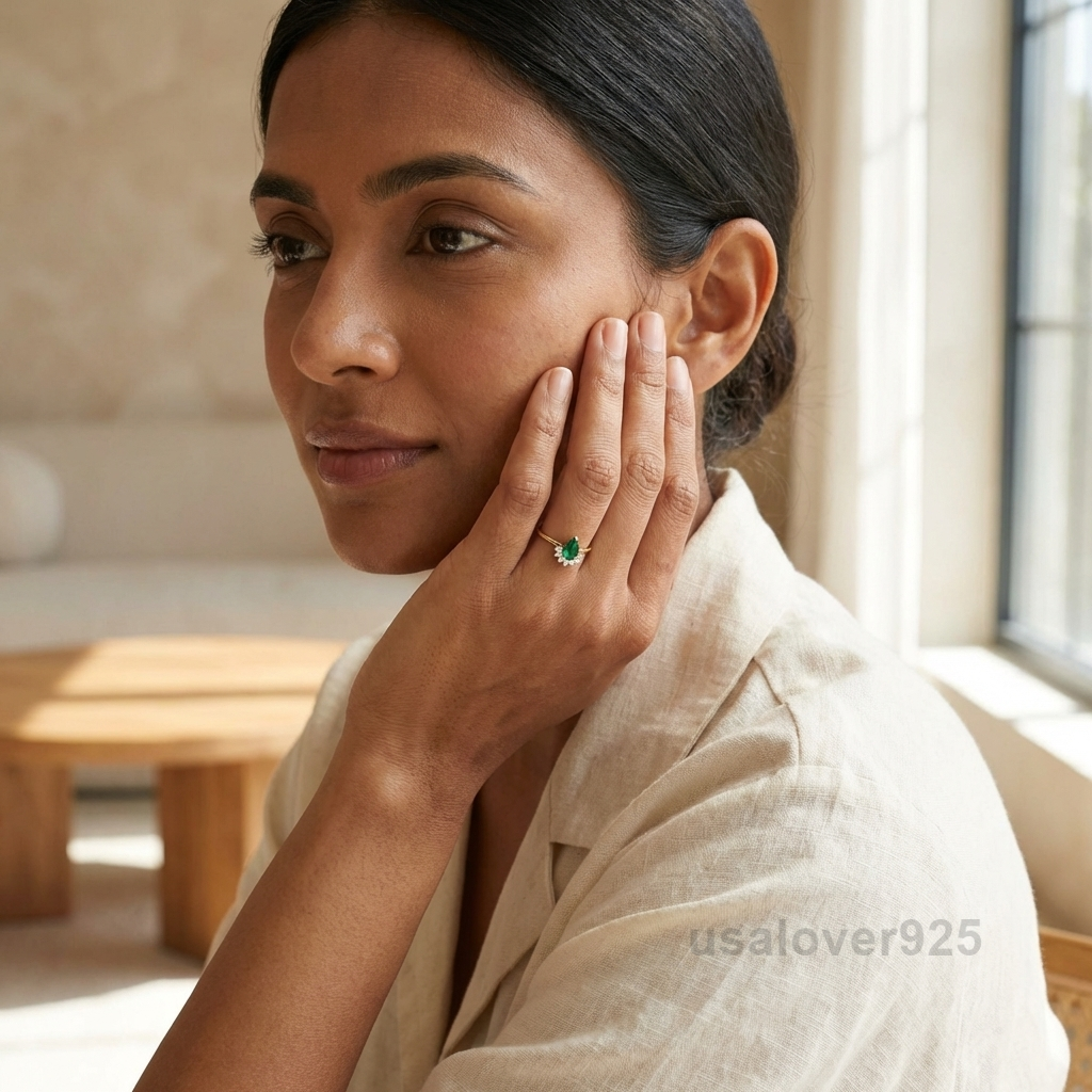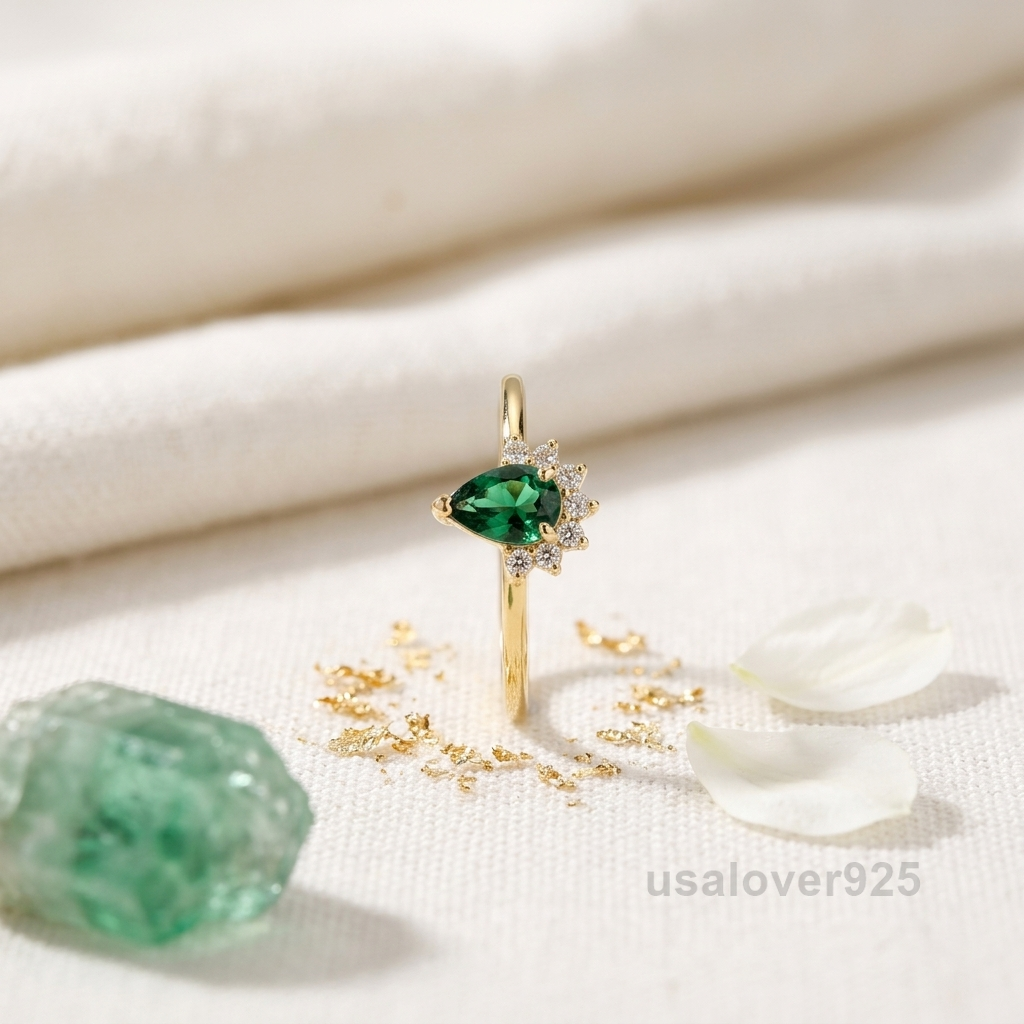 Embrace the beauty of nature’s most regal gemstone with this Emerald Pear Stone Solitaire Ring. Meticulously handcrafted in 925 Solid Sterling Silver, this ring features a stunning, brilliant-cut teardrop Emerald-toned stone held in a classic secure setting. The elegant pear shape is designed to elongate the finger, making it a sophisticated May birthstone gift, a vibrant promise ring, or a unique statement piece for your jewelry collection. Designed for both durability and timeless grace, this high-quality treasure adds a touch of royal charm to any ensemble.