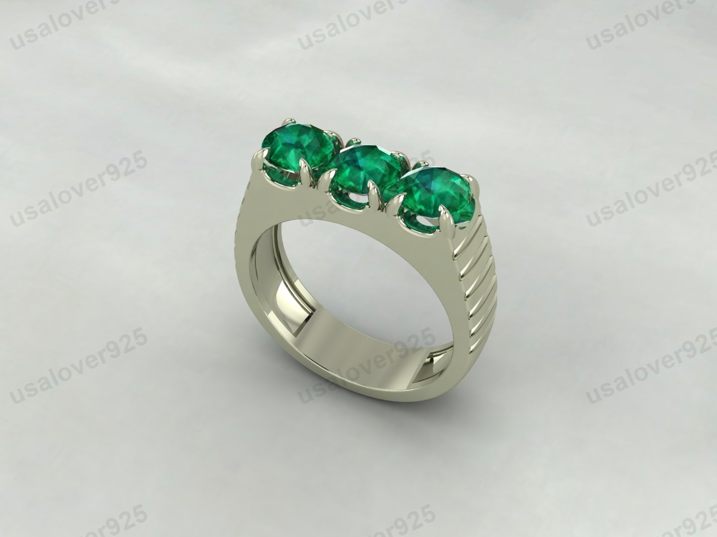 Emerald Round Gemstone Men’s Signet Ring, 925 Sterling Silver Jewelry