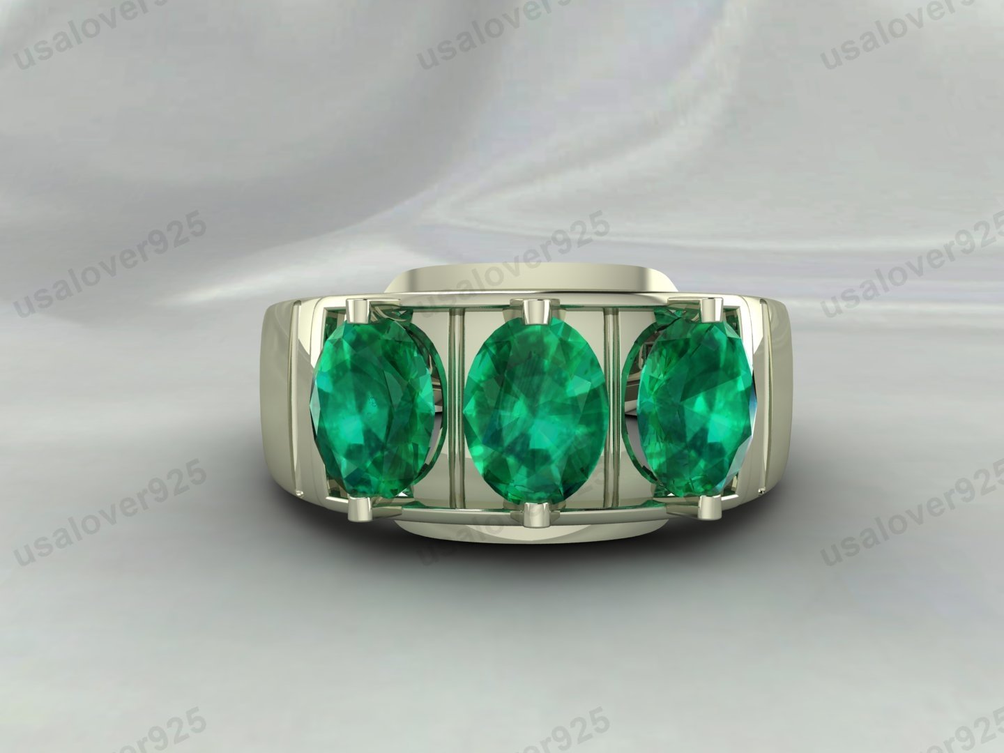 Emerald Oval Gemstone Men’s Signet Ring, 925 Sterling Silver Jewelry