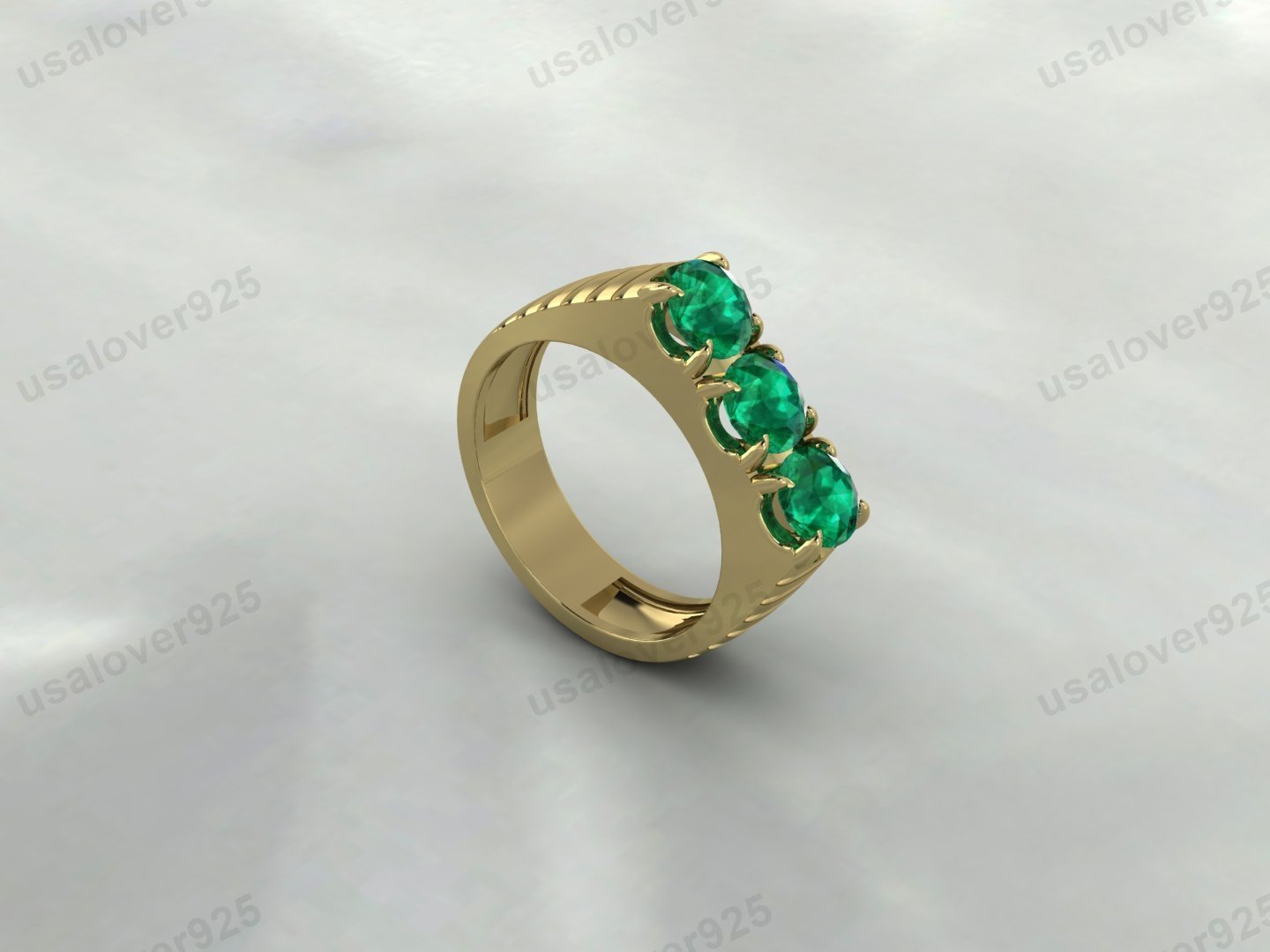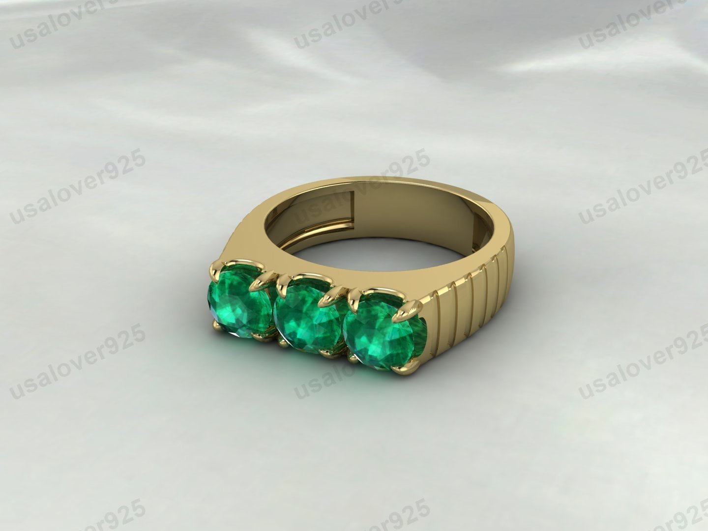 Emerald Round Gemstone Men’s Signet Ring, High Quality Yellow Brass Jewelry