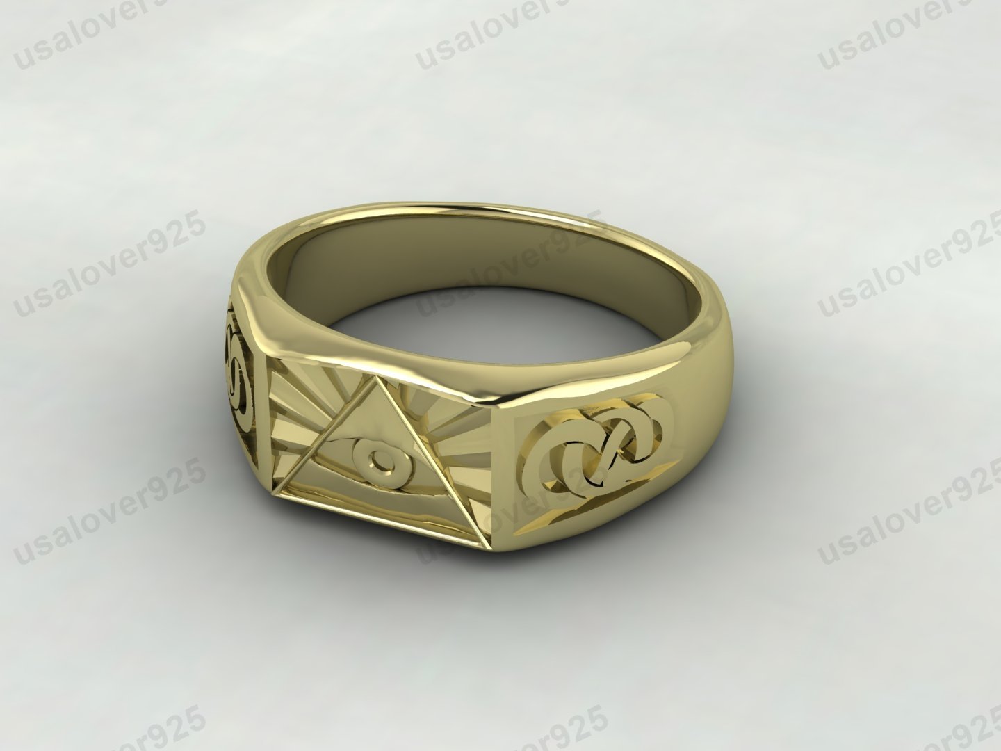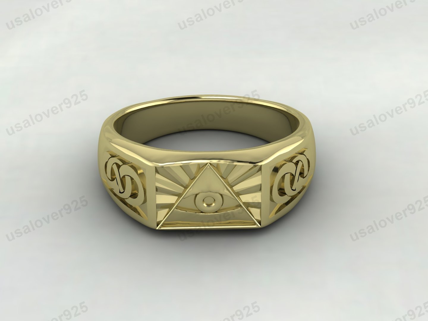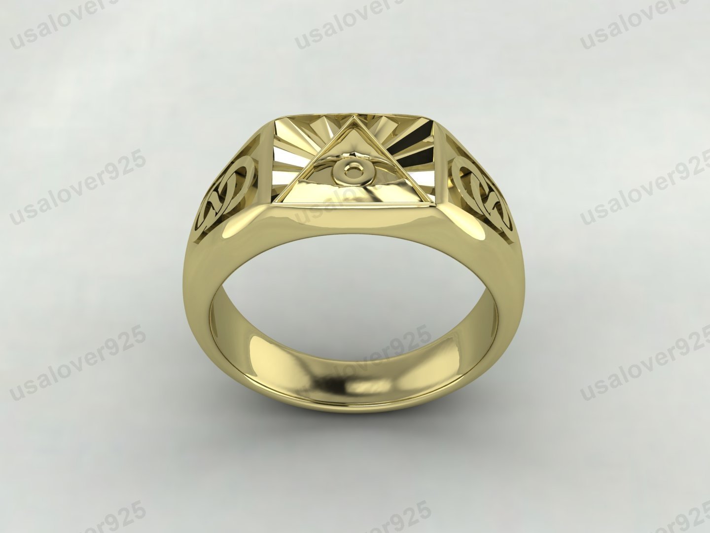 Eye Of Providence Illuminati Triangle Signet Men’s Ring – High Quality Yellow Brass Jewelry