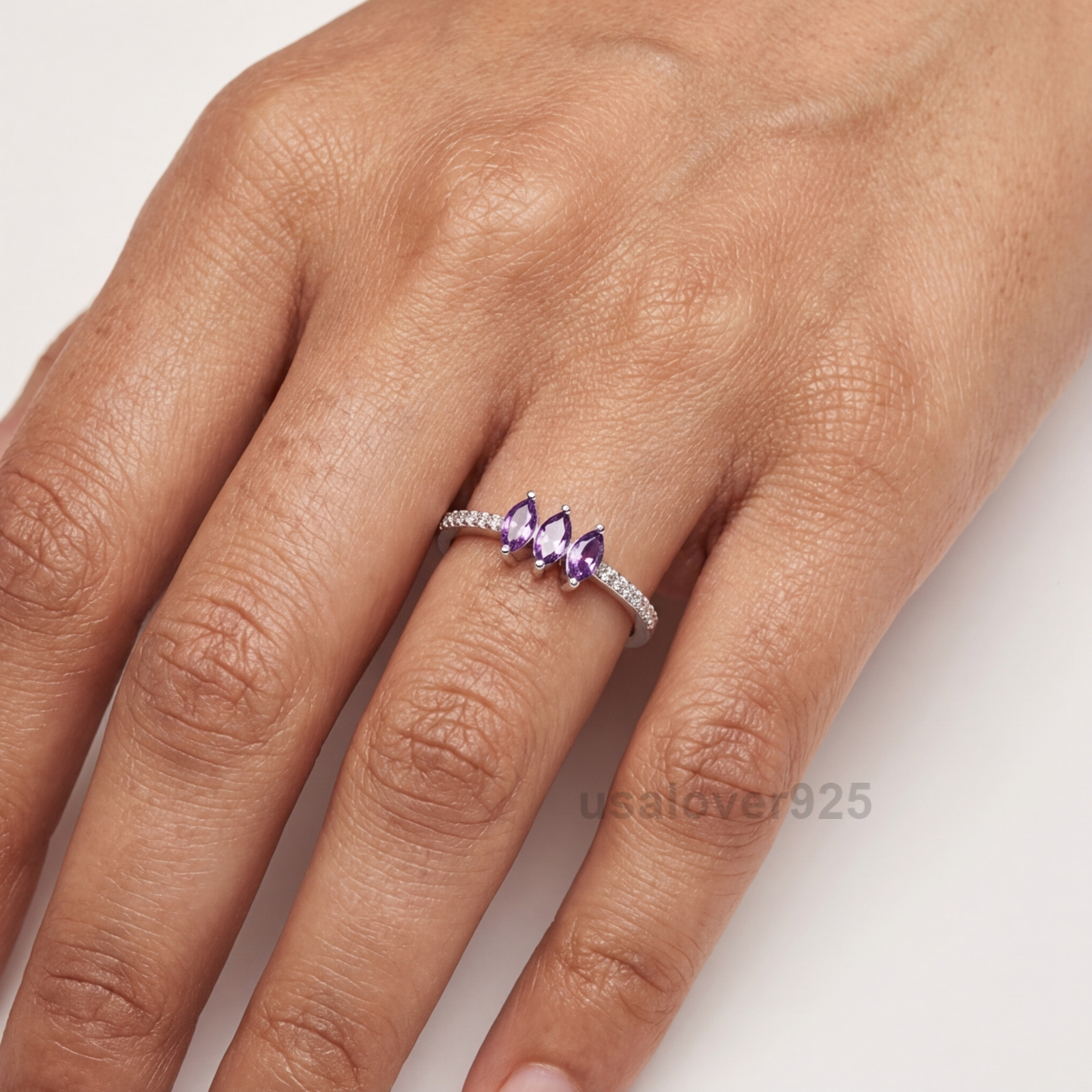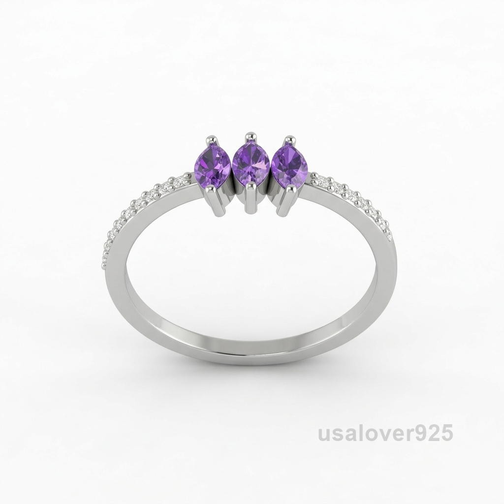 Make a majestic style statement with this Marquise Amethyst and CZ Eternity Band. Meticulously handcrafted in 925 Solid Sterling Silver, this ring features a continuous circle of alternating marquise-cut purple Amethyst and brilliant Cubic Zirconia. The unique “navette” shape of the stones allows them to catch light from every angle, creating a sophisticated and finger-flattering silhouette. Ideal as a vibrant February birthstone gift, a unique alternative wedding band, or a high-contrast stacking piece for your luxury jewelry collection.