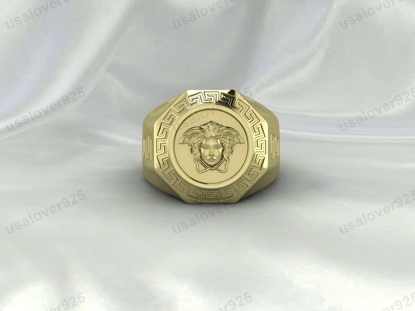 MEDUSA Head Face Signet Unisex Ring – High Quality Yellow Brass Jewelry