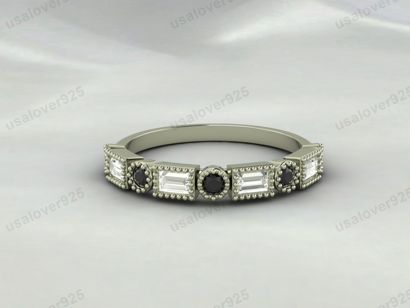 Onyx & CZ Diamond Stone Half Eternity Women Band – 925 Sterling Silver Ring Jewelry