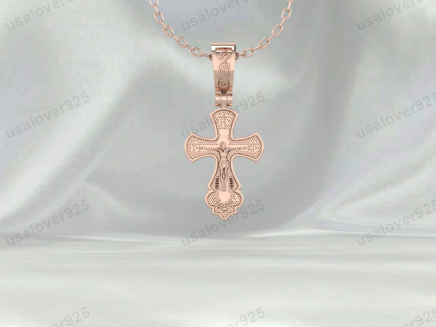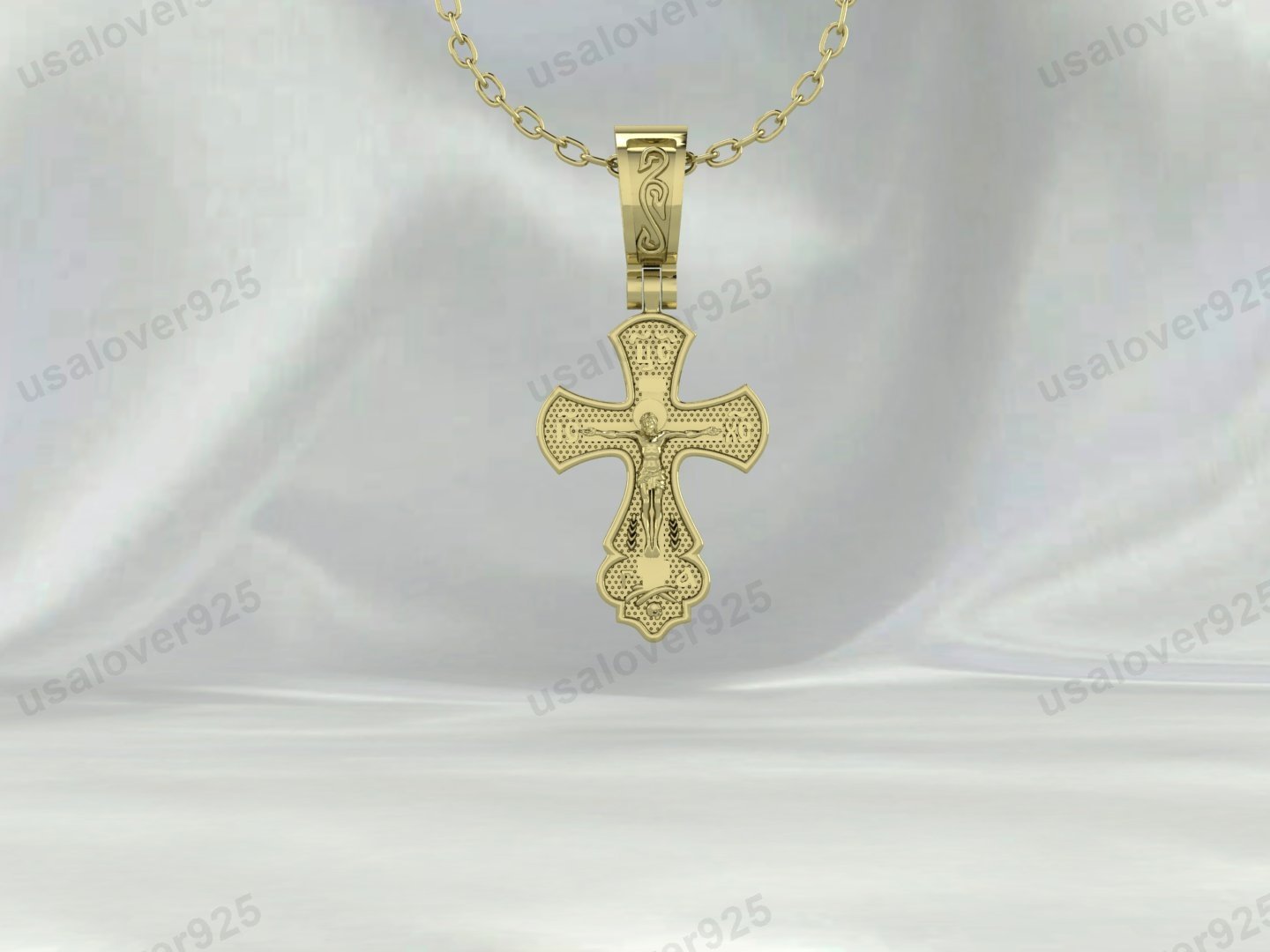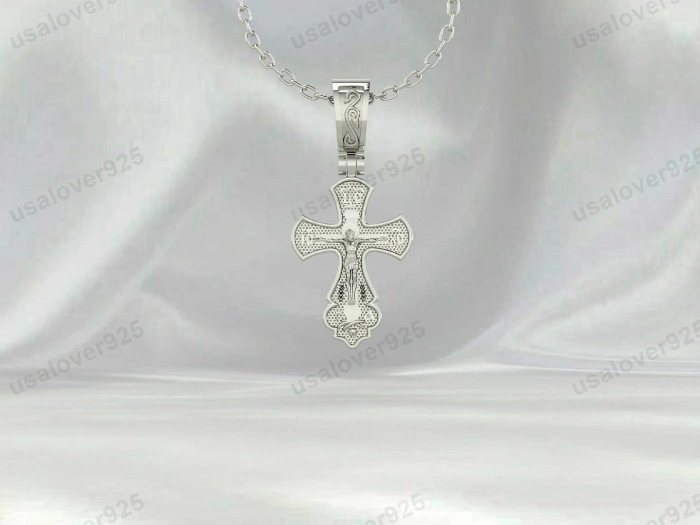 Orthodox Eastern Christianity Cross Unisex Pendant, 925 Sterling Silver Necklace Jewelry