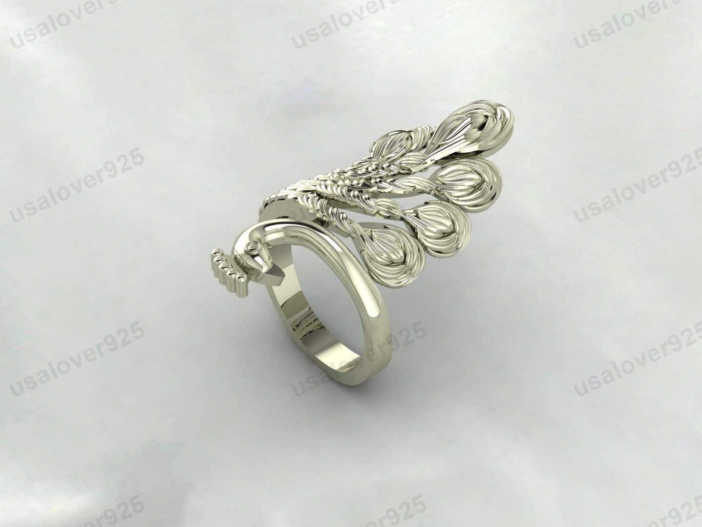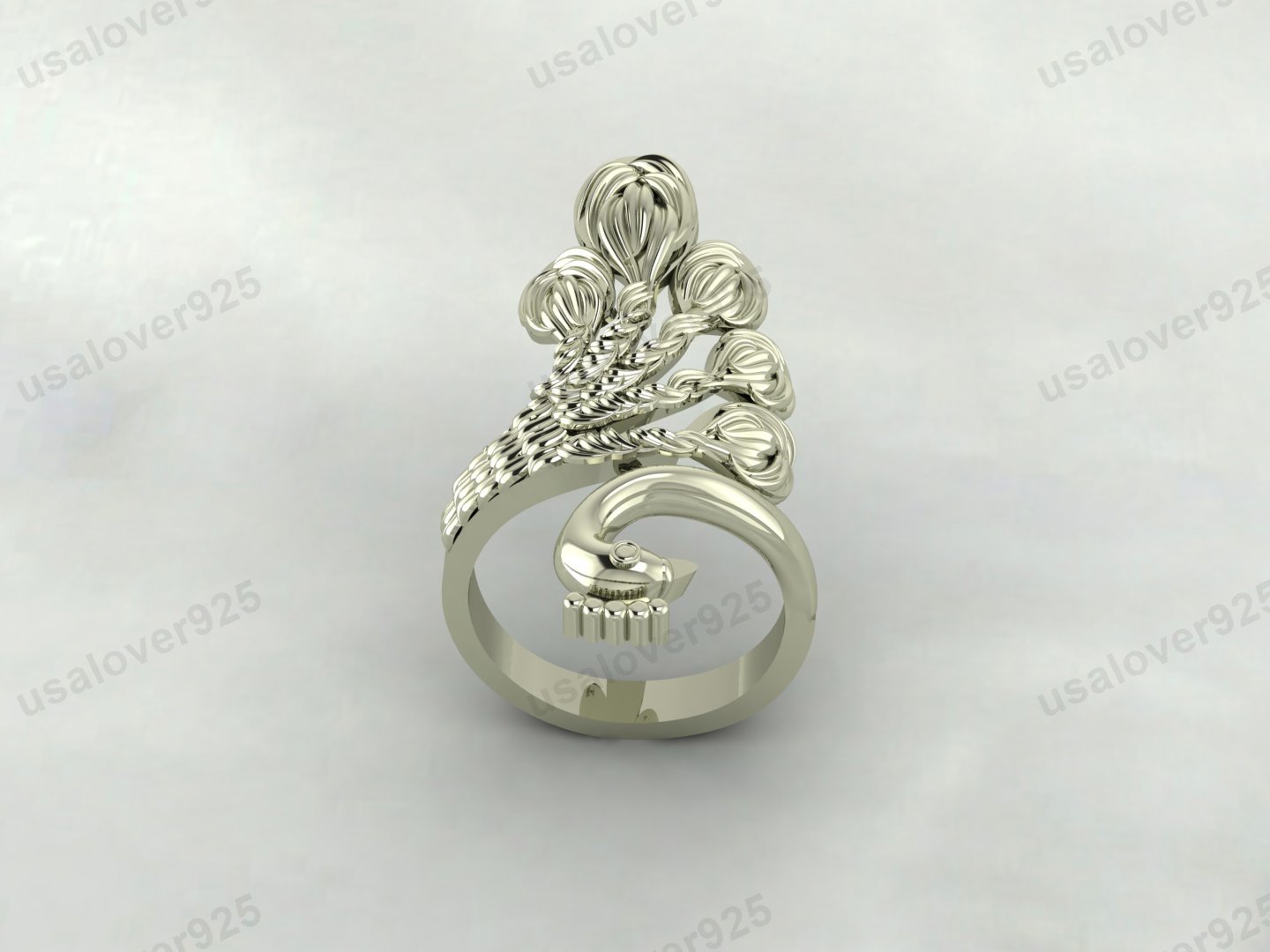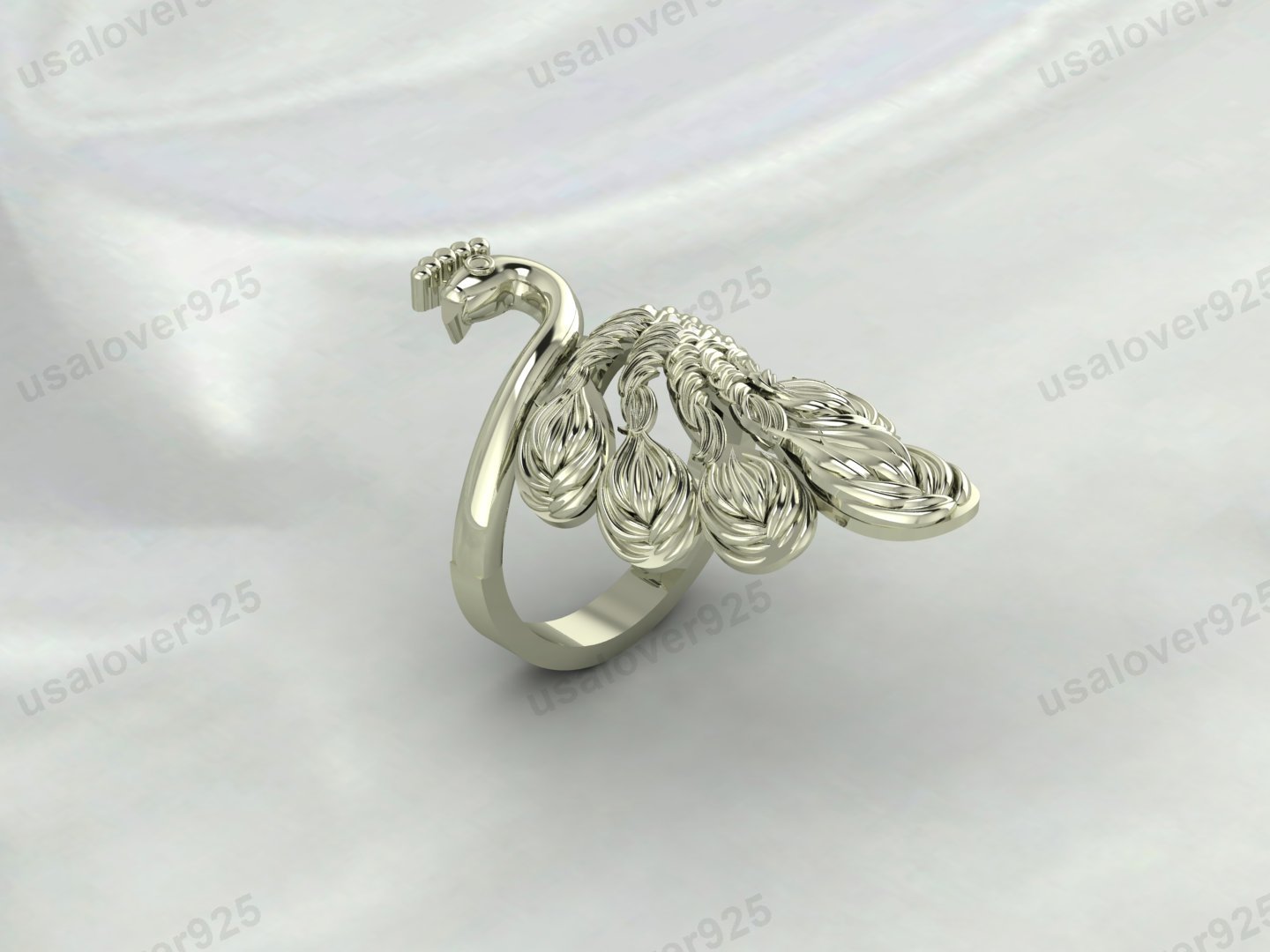 Peacock Bird Unique Design Trendy Women Ring, 925 Sterling Silver Jewelry