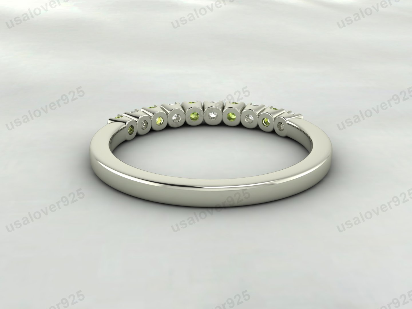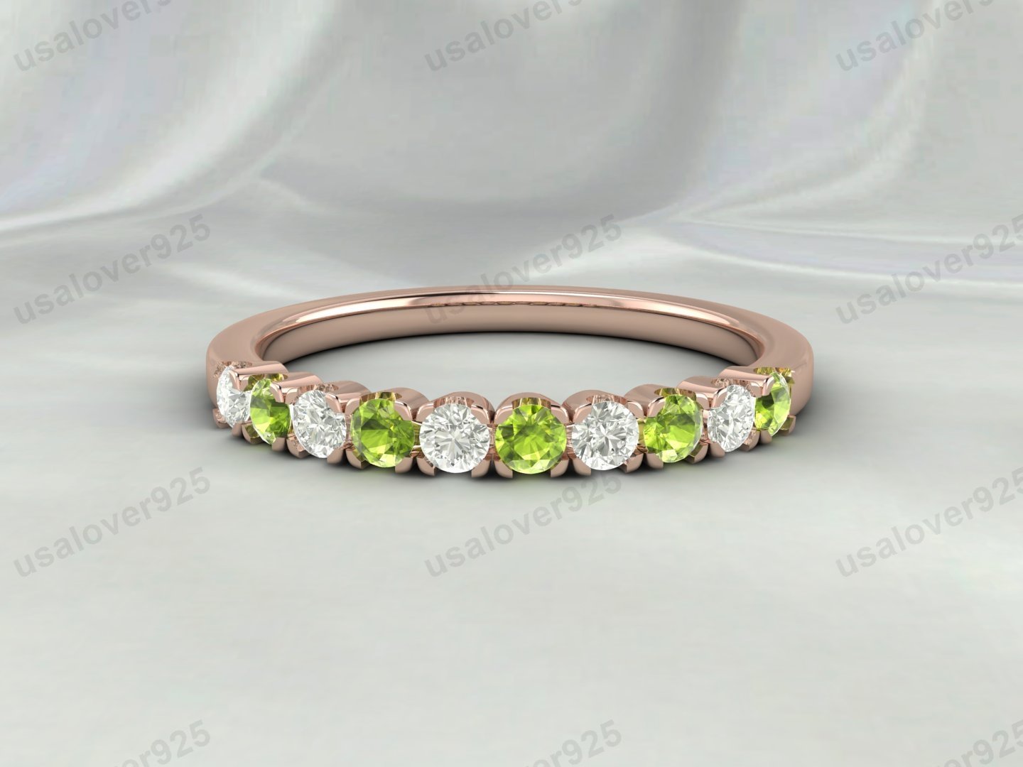 Peridot & CZ Diamond Stone Eternity Band for Women – 925 Sterling Silver Ring Jewelry