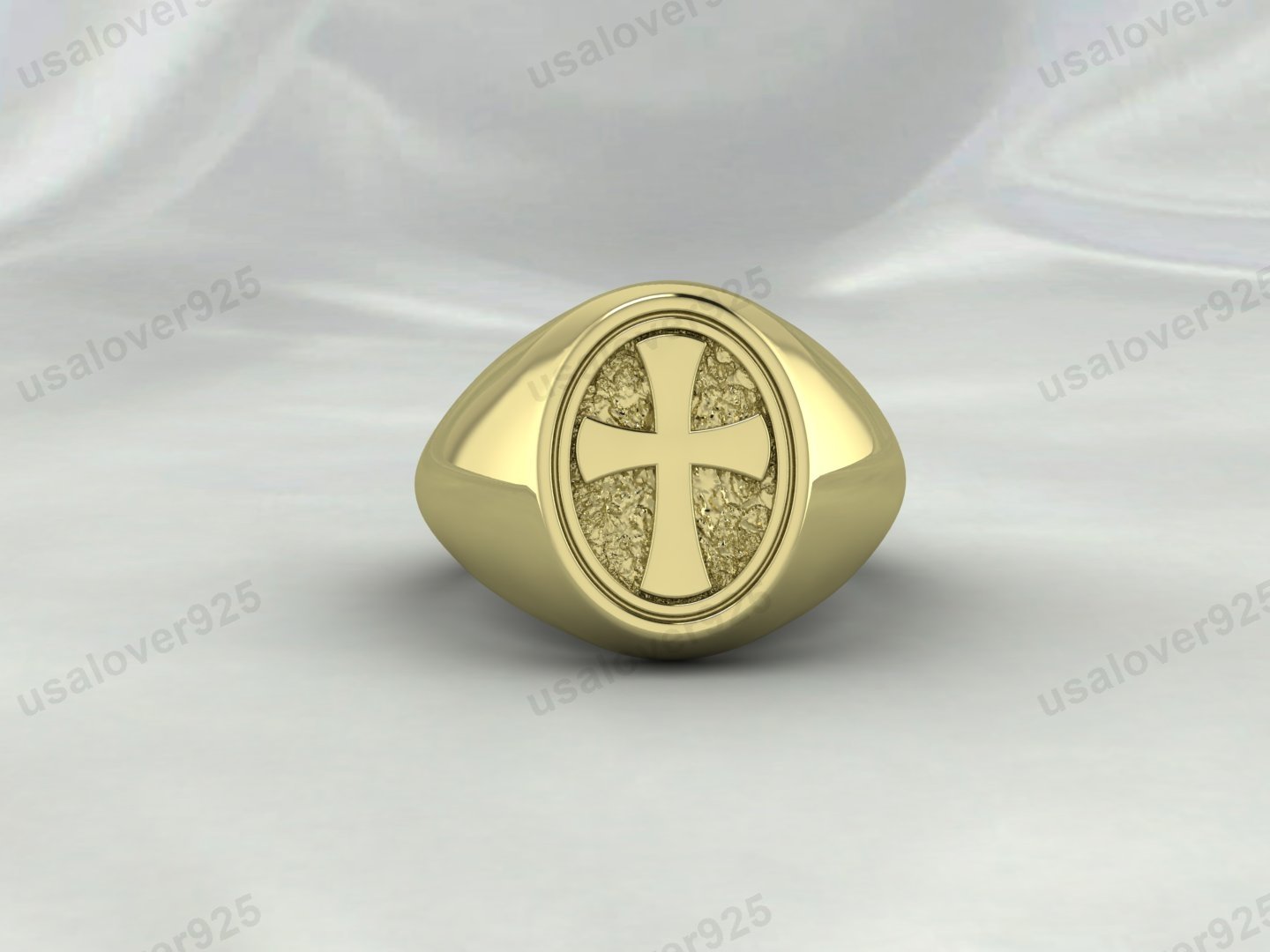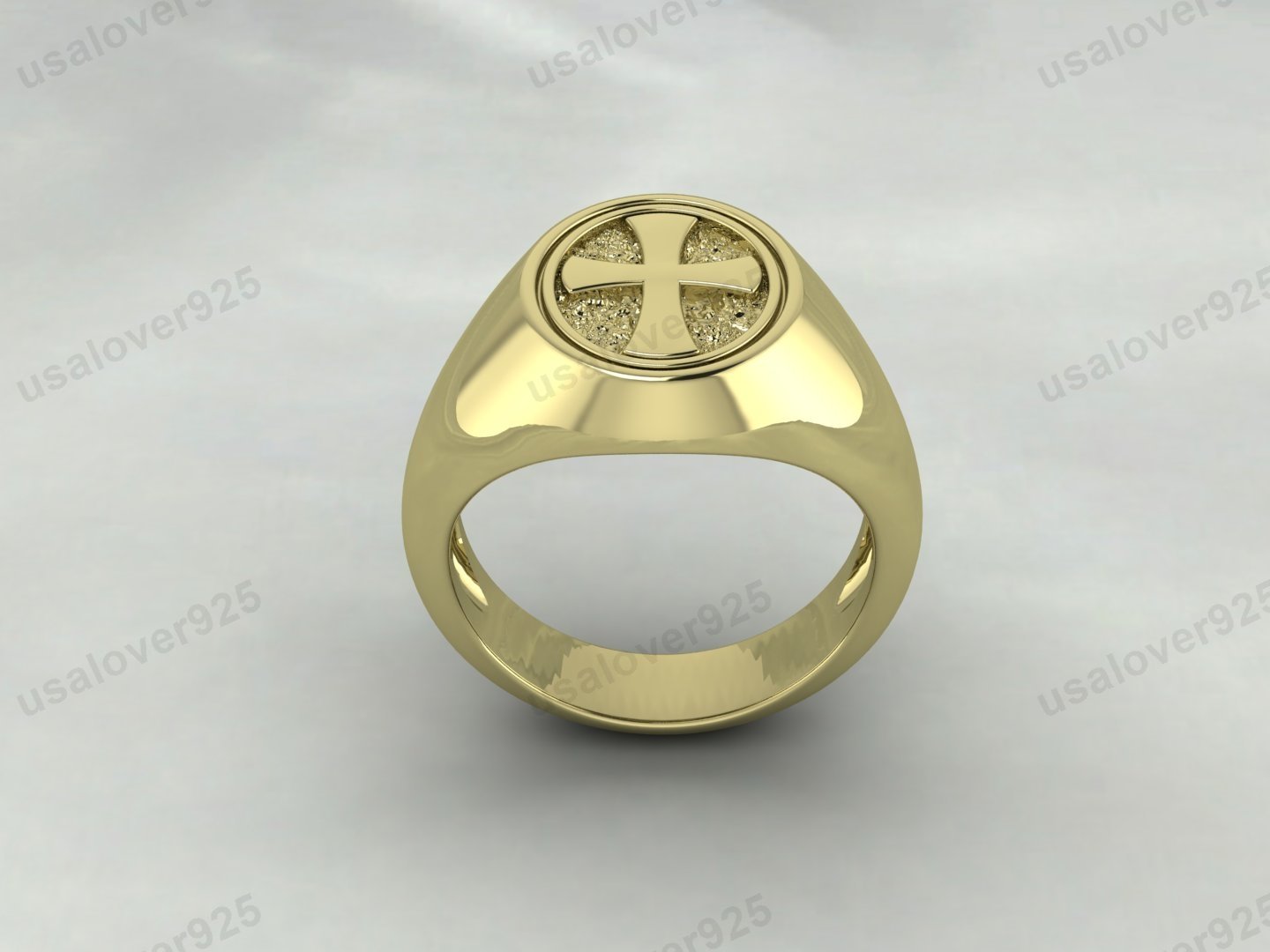 Pope Cross Design Signet Unisex Ring – High Quality Yellow Brass Jewelry