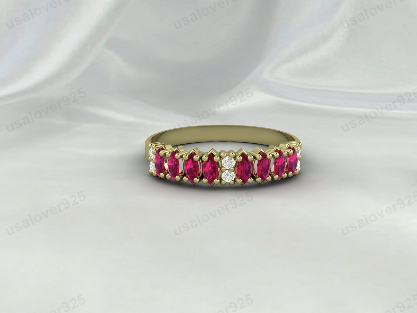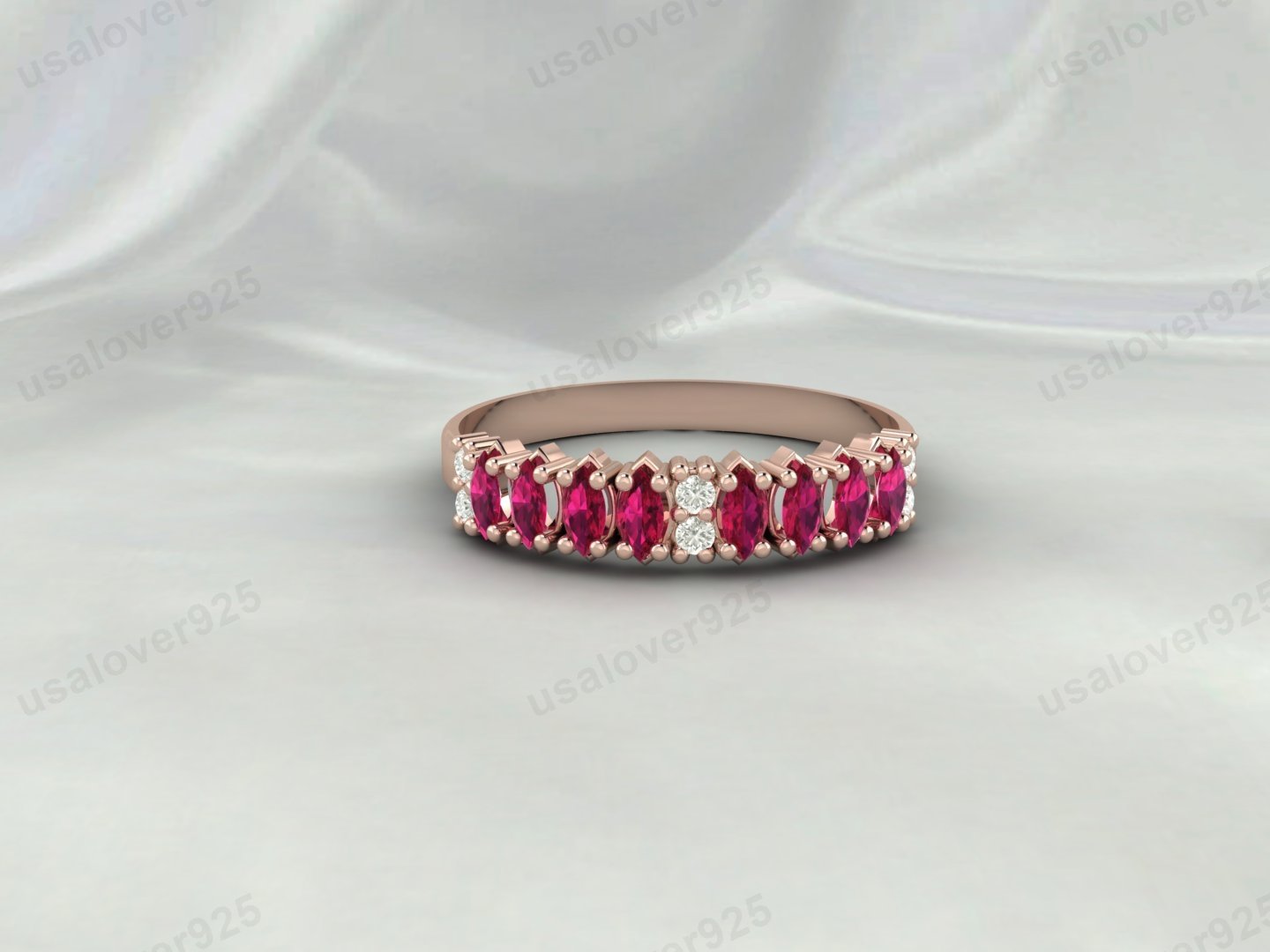 Ruby Engagement Ring, 925 Sterling Silver Half Eternity Band