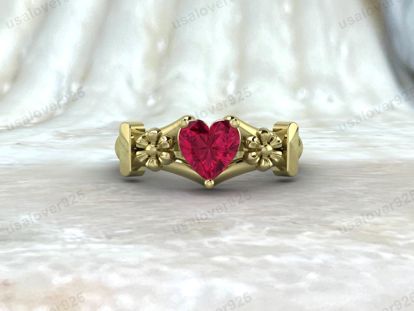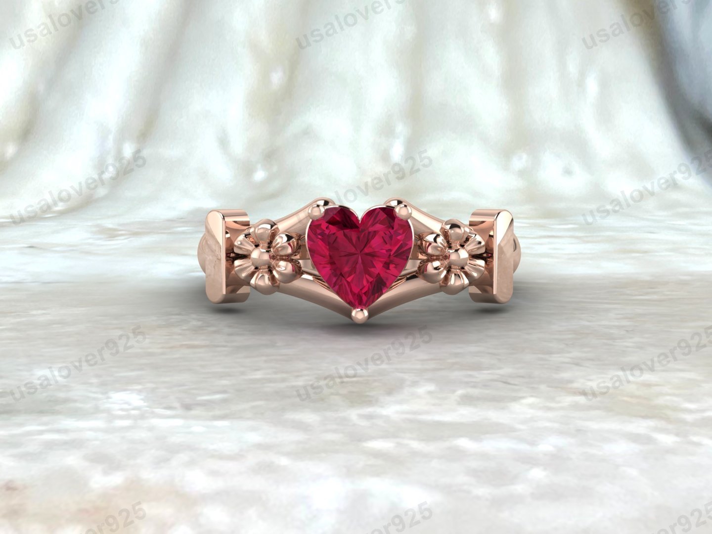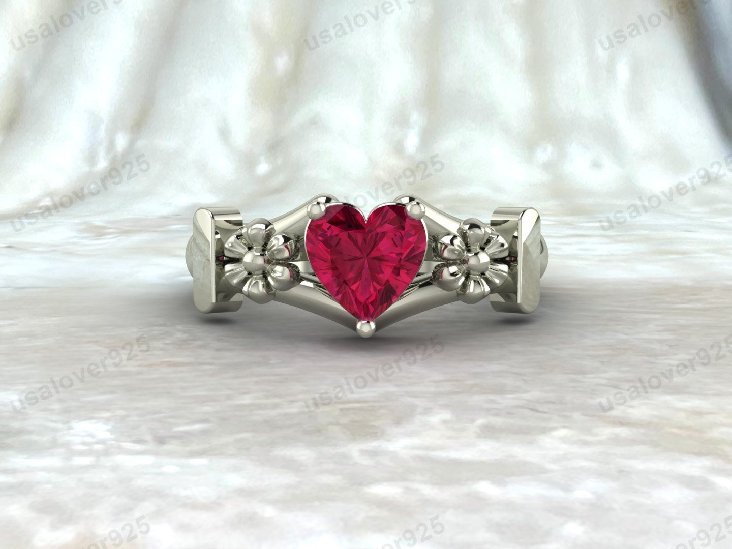 Ruby Heart Shape Gemstone Women Ring – 925 Sterling Silver Jewelry