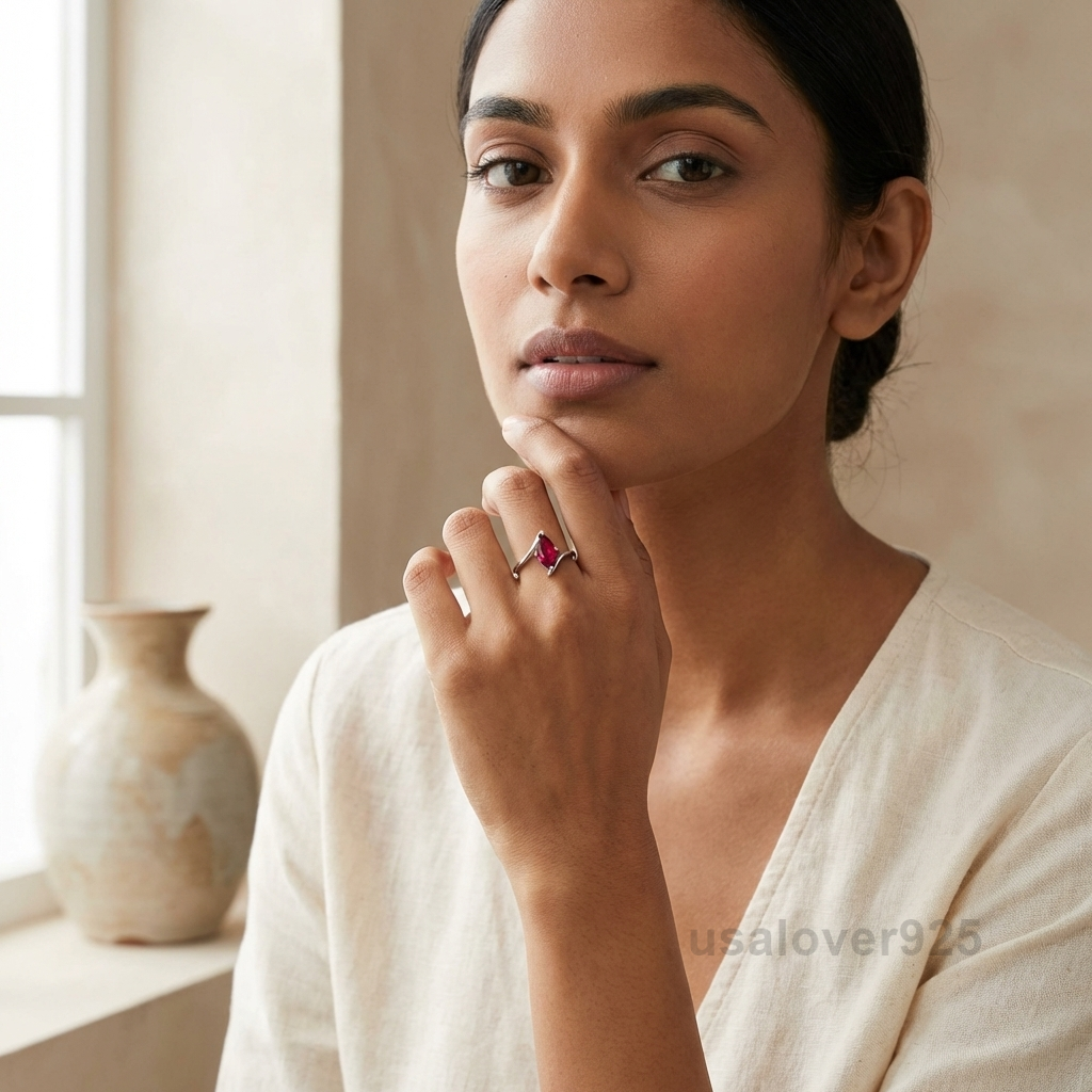 Make a passionate statement with this exquisite Ruby Marquise Stone Ring. Hand-set in high-quality 925 Sterling Silver, the distinctive eye-shaped marquise cut enhances the rich, crimson glow of the ruby, creating an appearance of elongated elegance on the finger. Whether worn as a vibrant July birthstone gift, a unique alternative engagement ring, or a bold addition to a sophisticated ring stack, this piece radiates timeless luxury and vintage charm.
