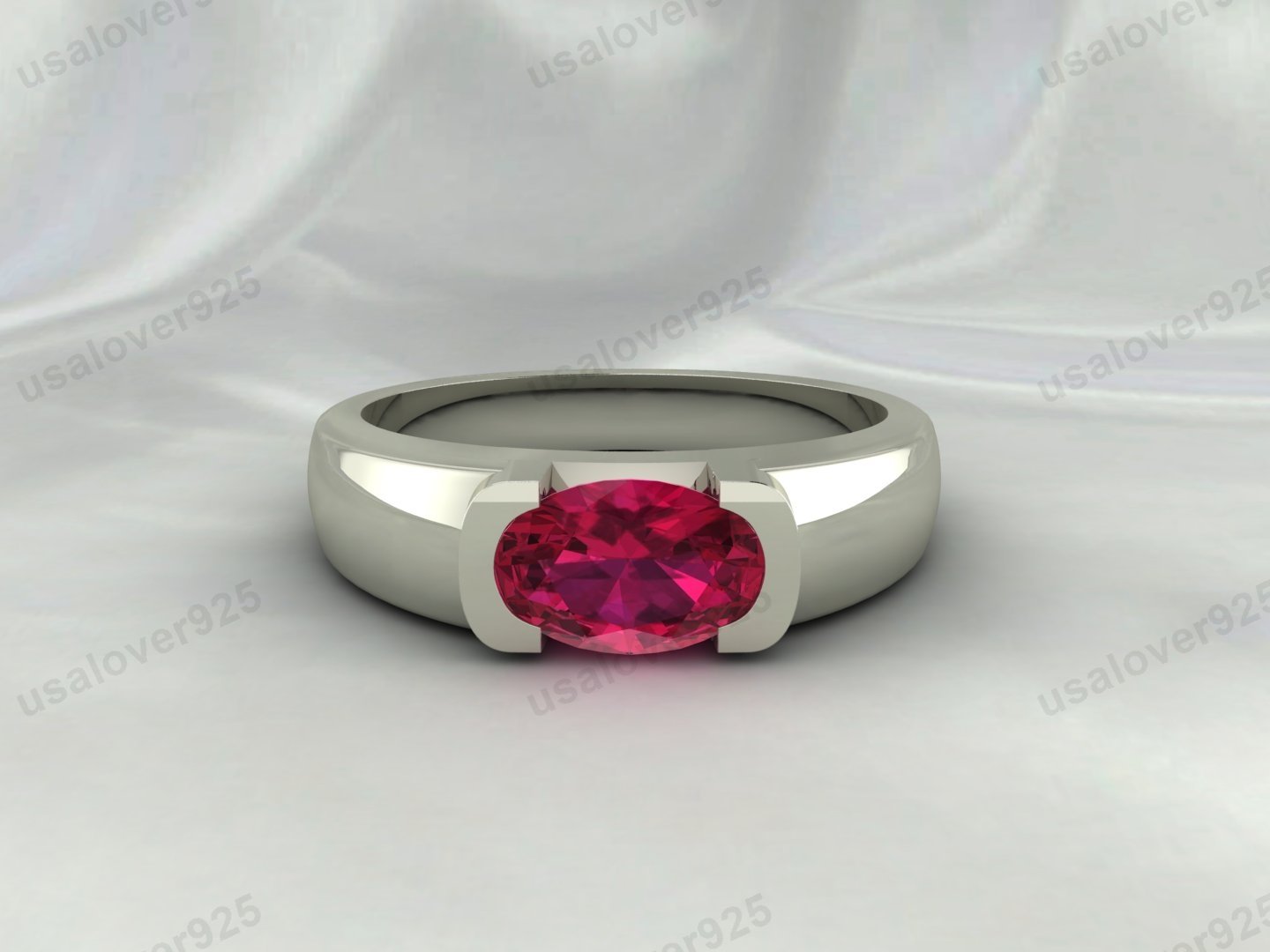 Ruby Oval Stone Solitaire Unisex Ring – 925 Sterling Silver Jewelry