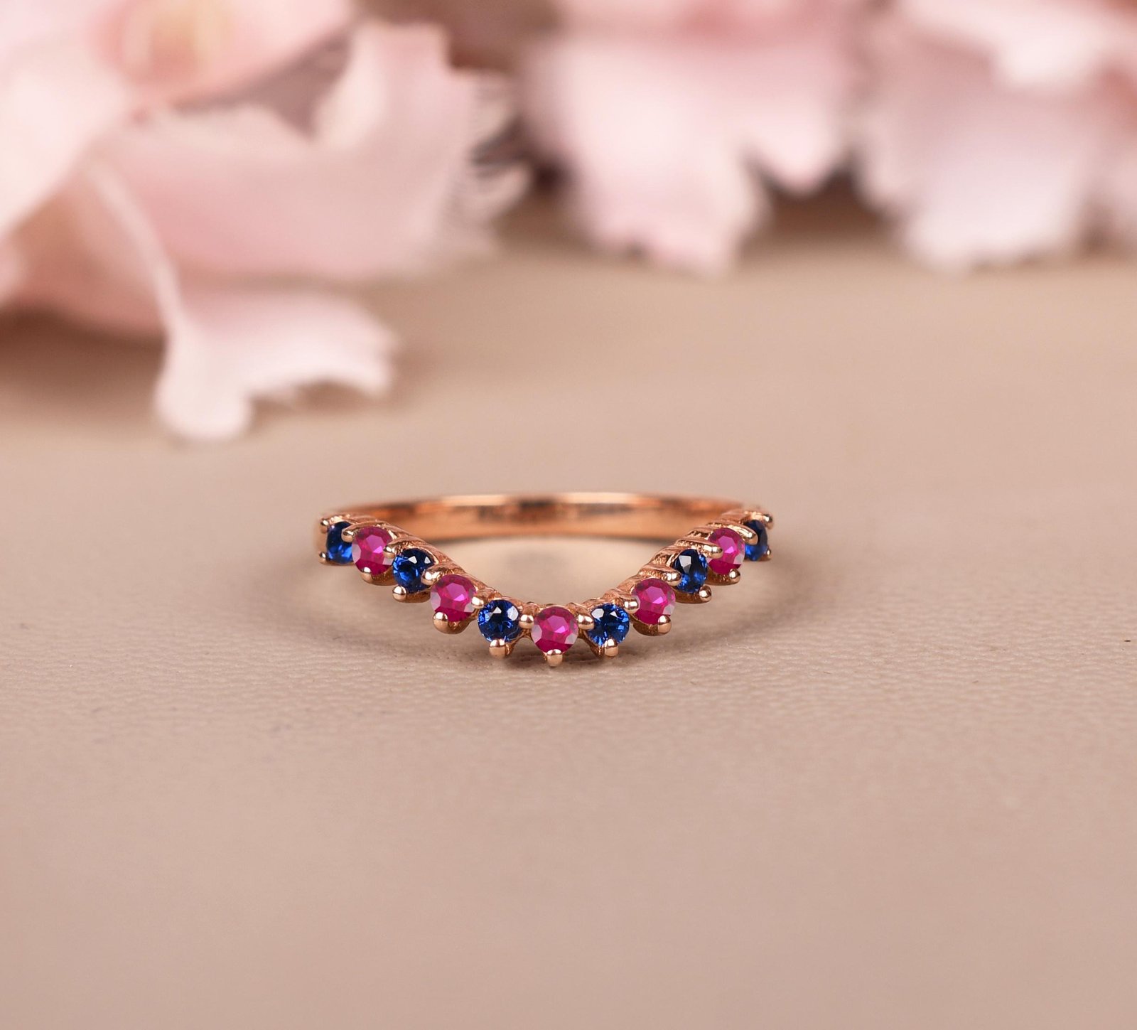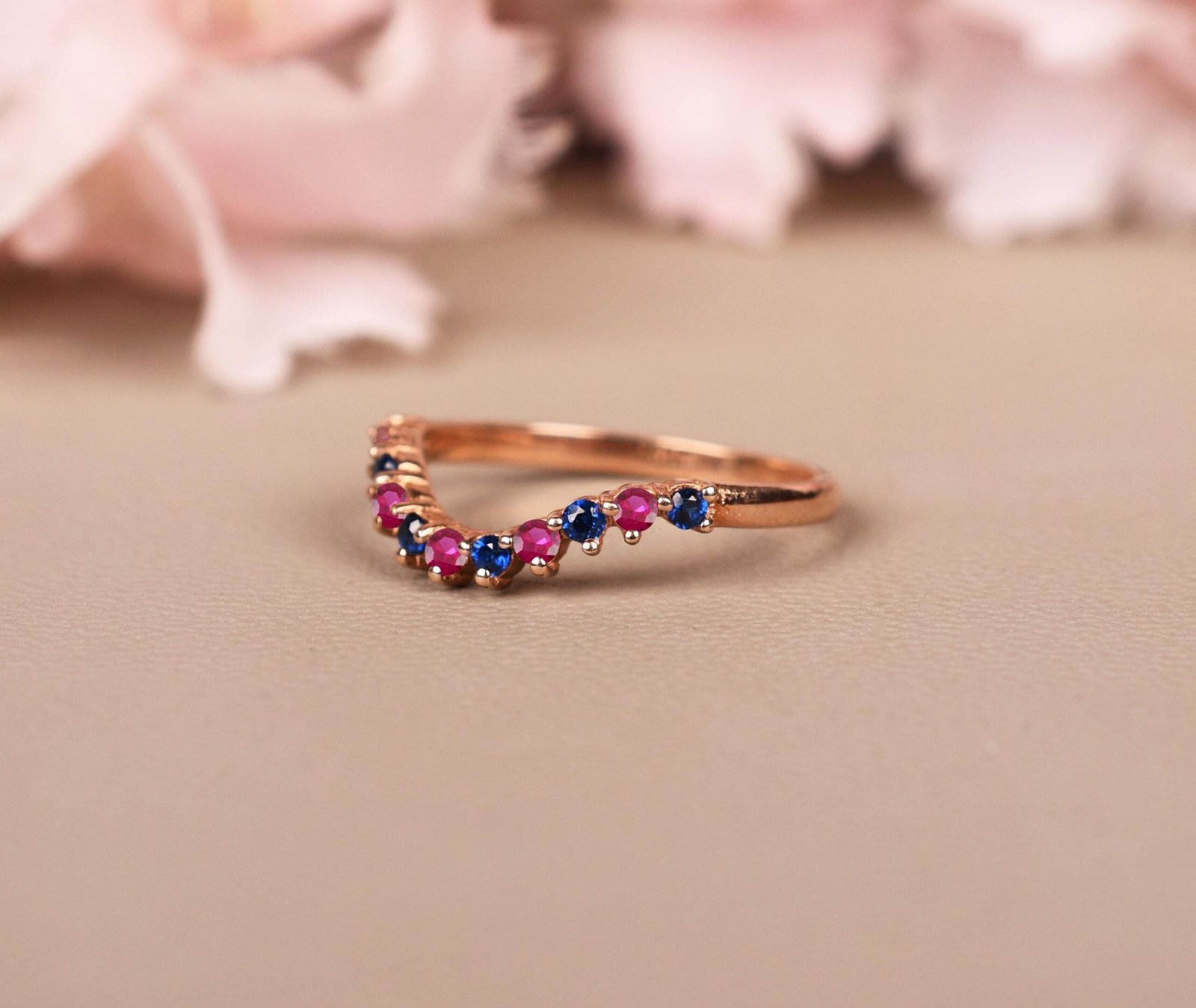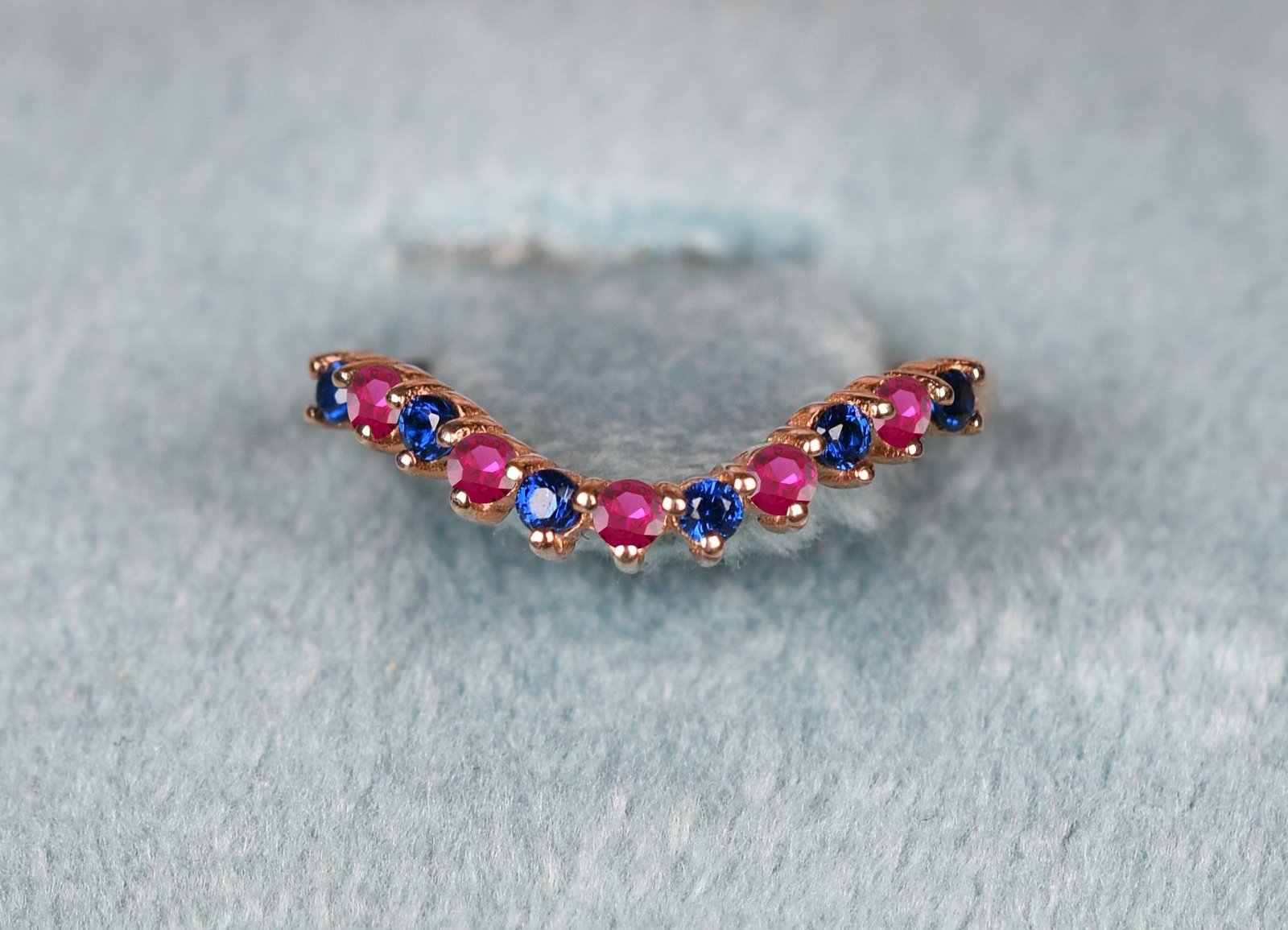 Celebrate timeless romance with this Ruby with Sapphire Band – Elegant Curved Wedding Ring, thoughtfully crafted to mark cherished milestones. Featuring a graceful curve adorned with alternating rich red rubies and deep blue sapphires, this striking design symbolizes passion, loyalty, and enduring love—perfect as an anniversary jewelry gift or a unique wedding band for those who treasure vibrant elegance.