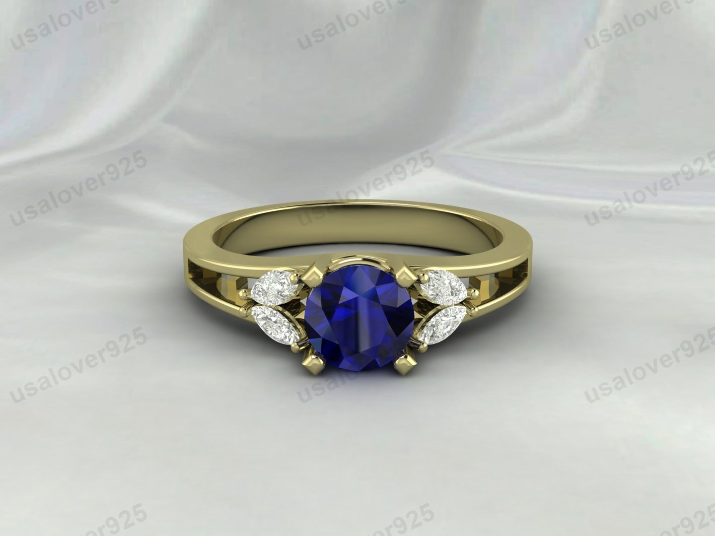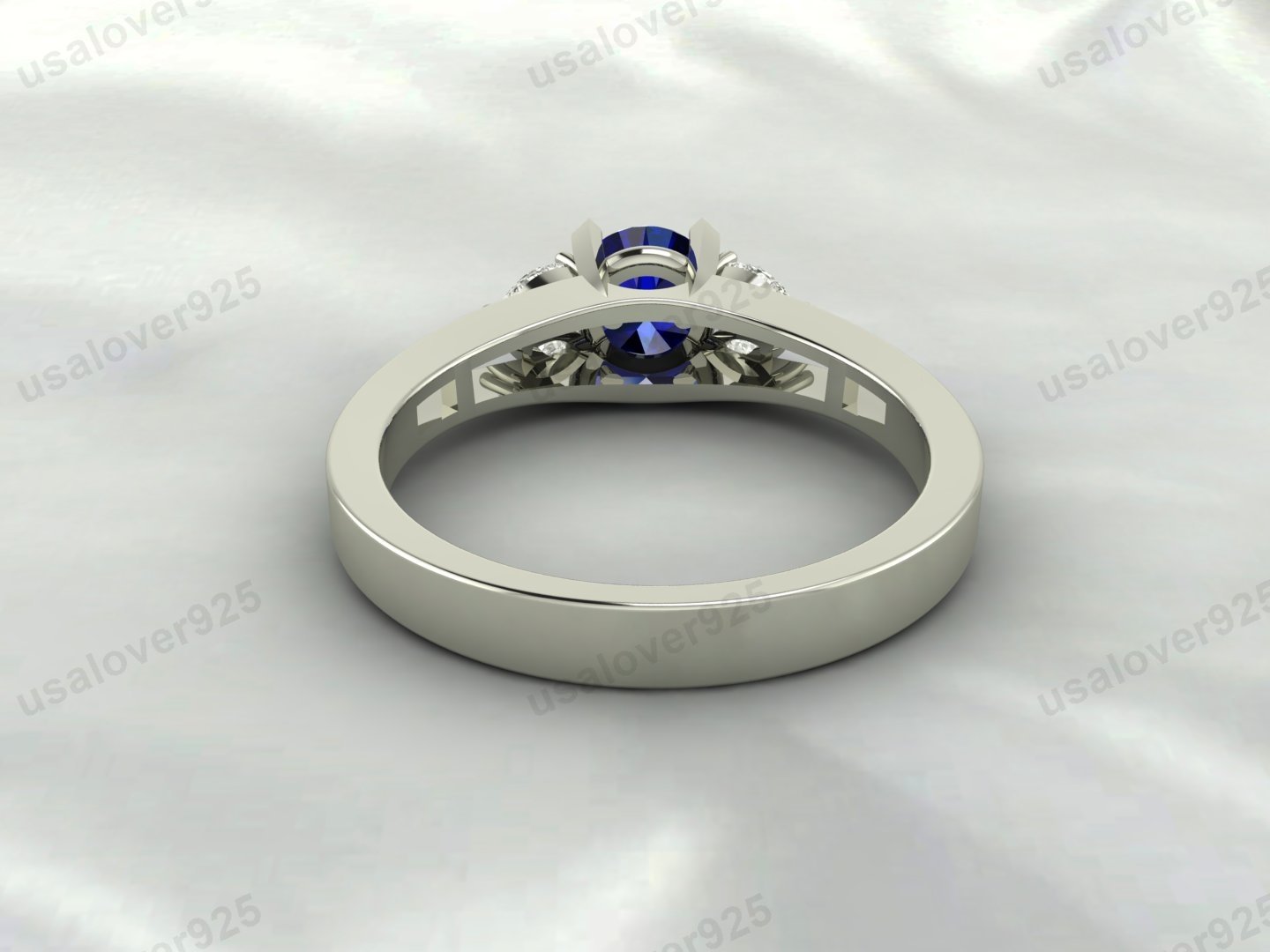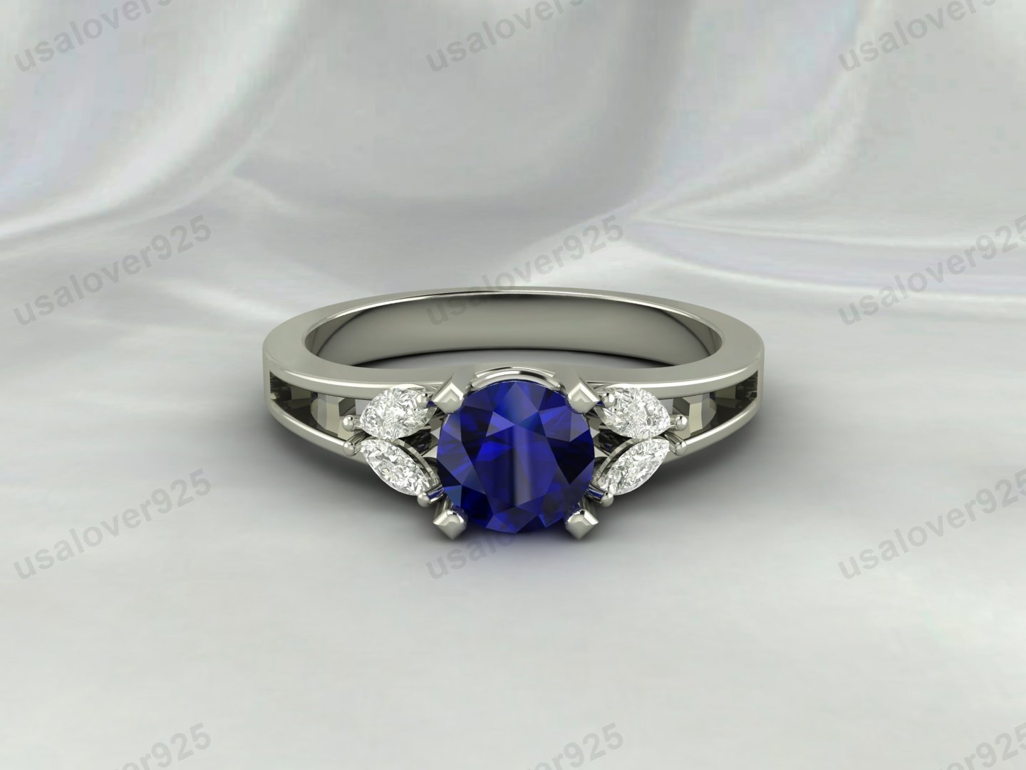 Sapphire & CZ Diamond Gemstone Solitaire Women Ring – 925 Sterling Silver Jewelry
