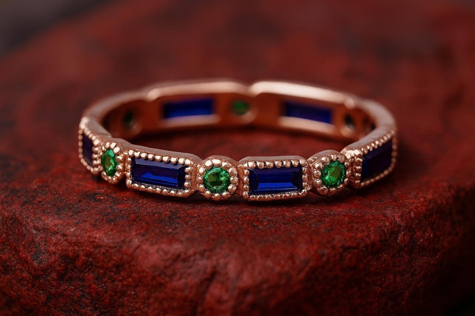 Sapphire & Emerald Gemstone Full Eternity Women Anniversary Band – 925 Sterling Silver Ring Jewelry