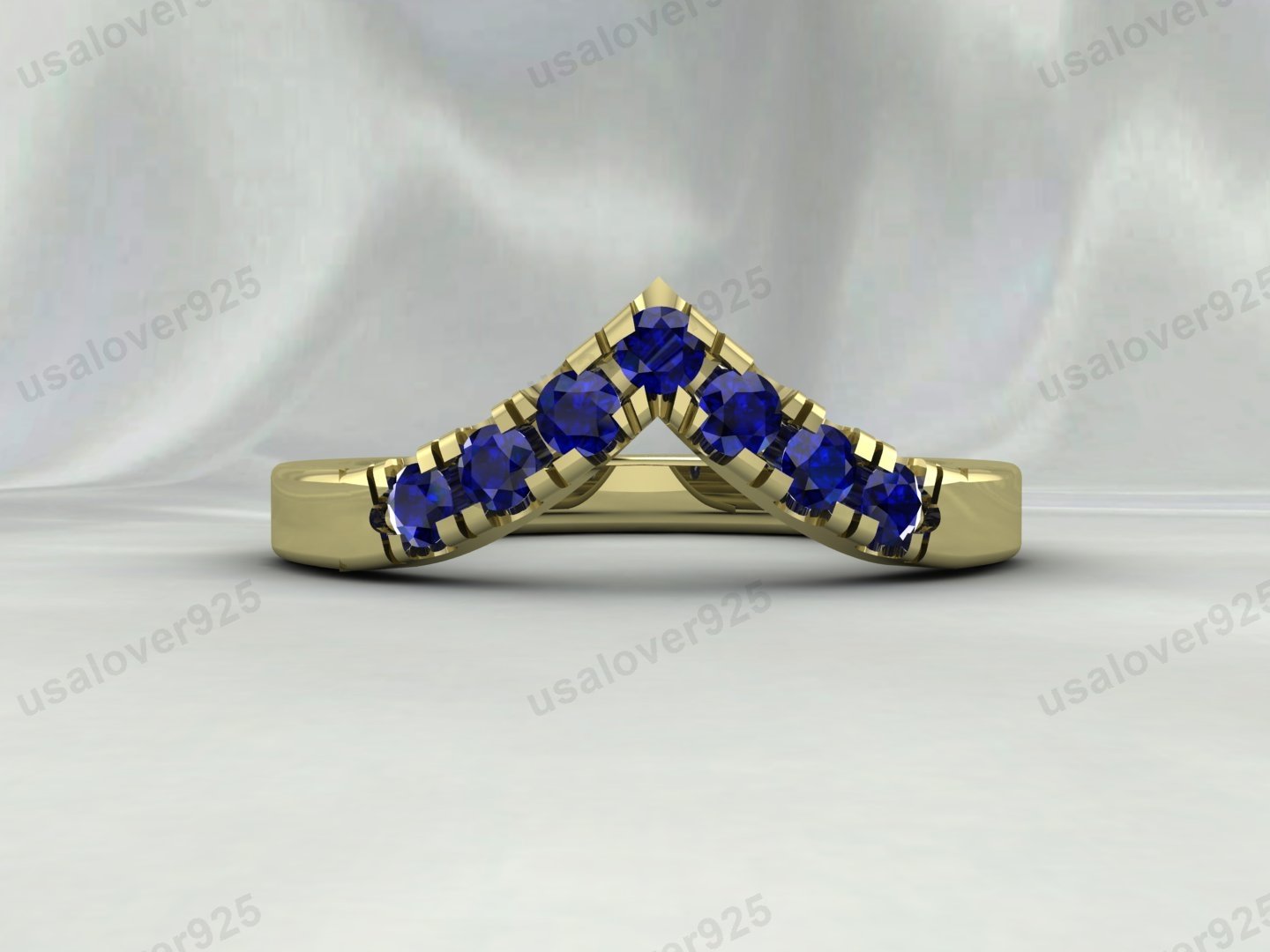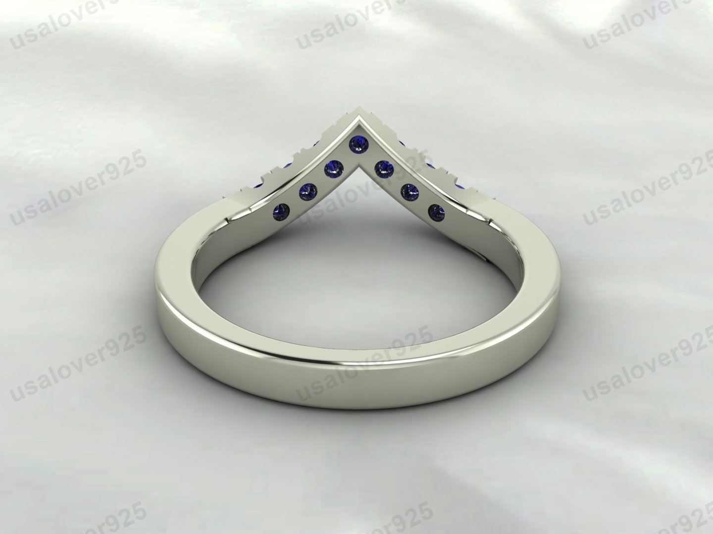 Sapphire Gemstone V Shape Curved Eternity Band for Women – 925 Sterling Silver Ring Jewelry