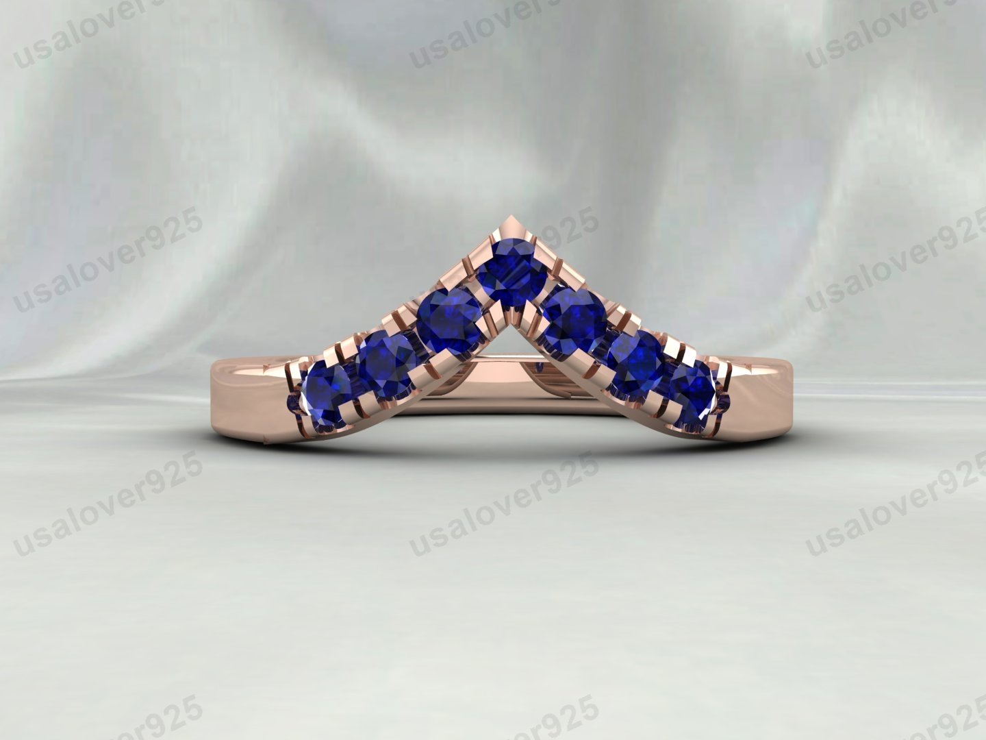 Make a bold statement with this V-shaped eternity ring. The graceful curve and brilliant line of genuine sapphire stones create a captivating piece. Expertly crafted from lustrous 925 sterling silver, this ring is both eye-catching and versatile, perfect for stacking or wearing as a fashionable solo piece.